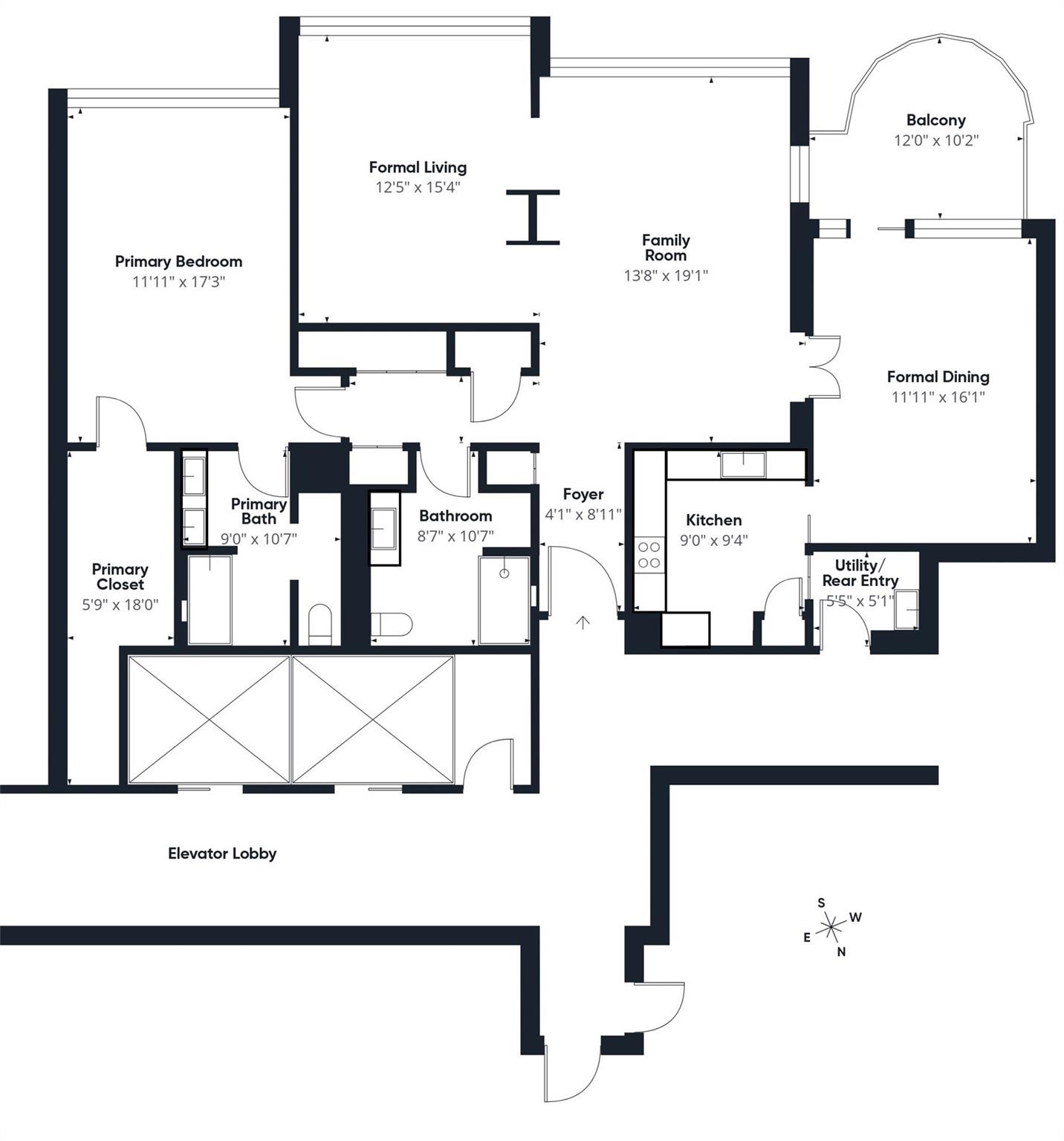First FloorLiving:13x15Family Room:14x19Dining:12x16Kitchen:9x9Primary Bedroom:12x17Primary Bath:9x11Bath:9x11Utility Room:5x6