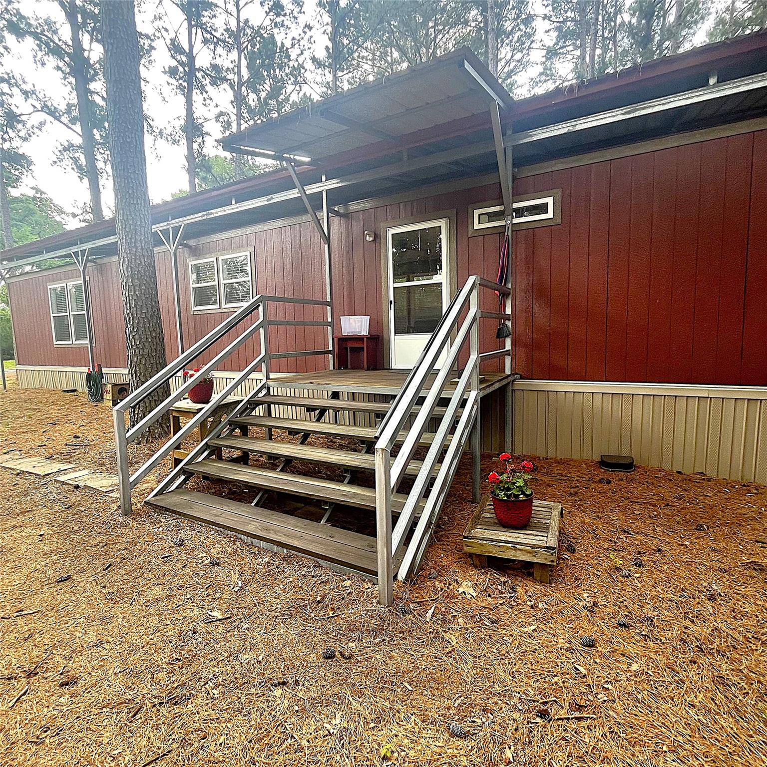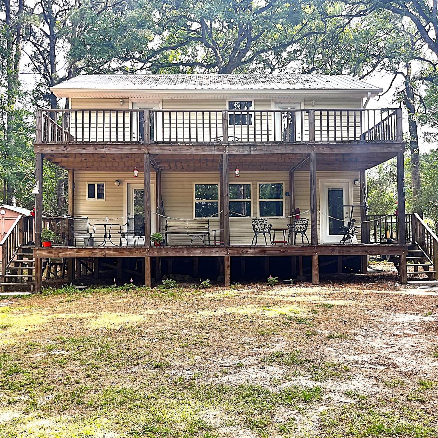 60 acres of fully wooded land await. This property offers a mix of pine and hardwood timber, creating the perfect setting for nature lovers, hunters, or anyone seeking a peaceful getaway. The land is fully fenced with barbed wire and features an ATV road that circles the entire boundary, providing easy access throughout the property. There are two well-maintained residences on site. The first is a spacious 2 bedroom, 2 bathroom mobile home offering an open concept floor plan perfect for relaxed living. The second home is a charming 2 bedroom, 2.5 bathroom residence. Upon entry, you’re welcomed into a generous living area that flows seamlessly into the dining room and kitchen, where you’ll find stainless steel appliances and warm wood finishes throughout. All bedrooms are located upstairs, with stunning views from both the upstairs balcony and the downstairs front porch. Additional amenities include multiple outbuildings, carports, and storage buildings.