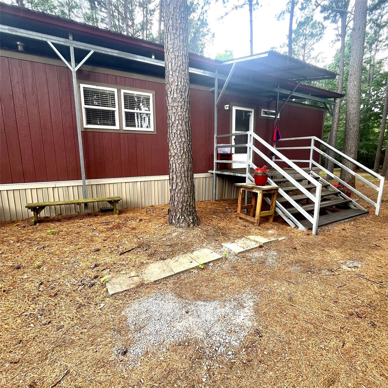 ExteriorFoundation:Pier & BeamPrivate Pool:NoLot Description:WoodedCarport Description:Detached CarportAccess:Manned GateWater Sewer:Septic TankRoad Surface:Asphalt,DirtFront Door Face:WestTree Description:Densely Wooded,Hardwood