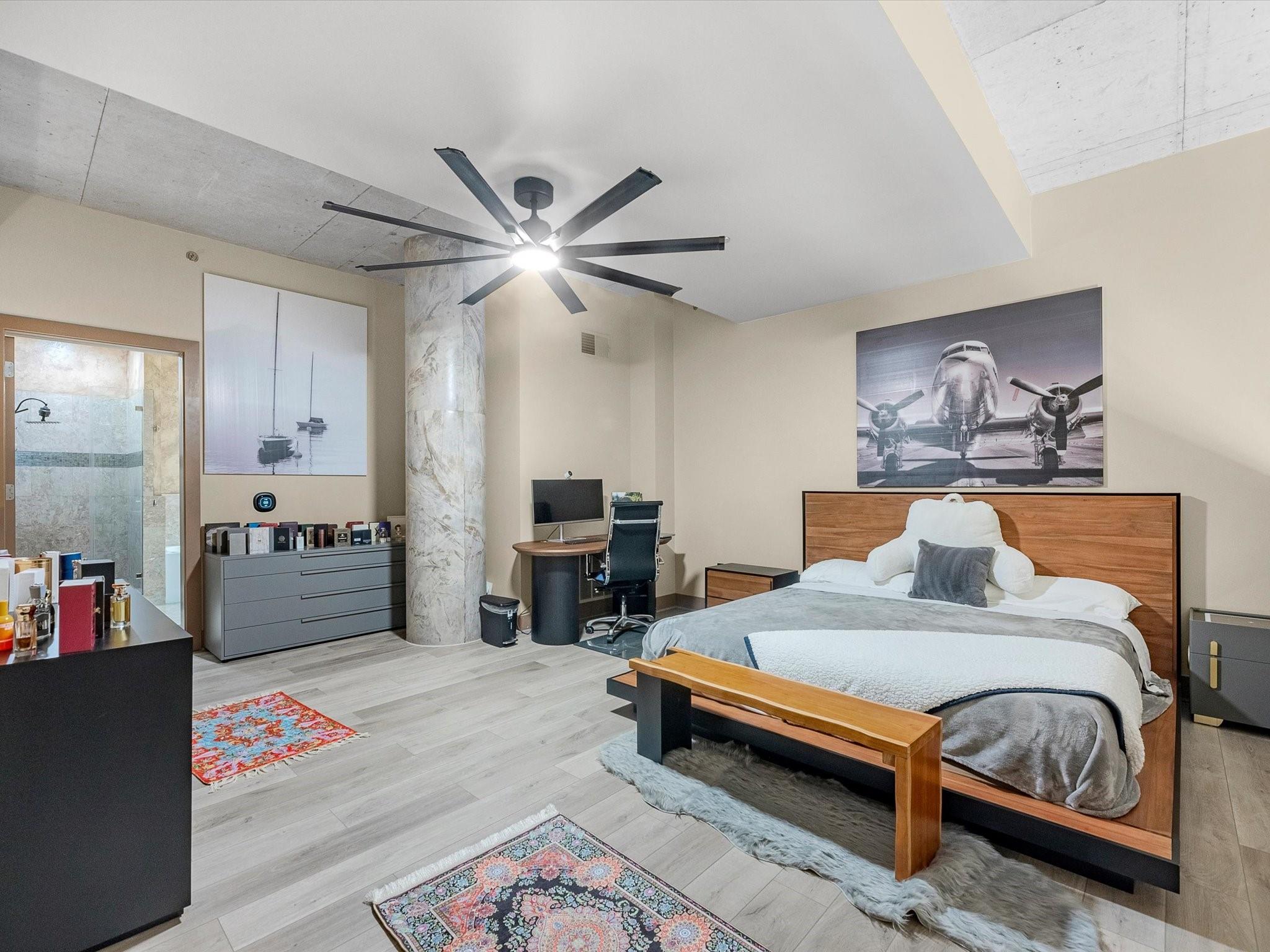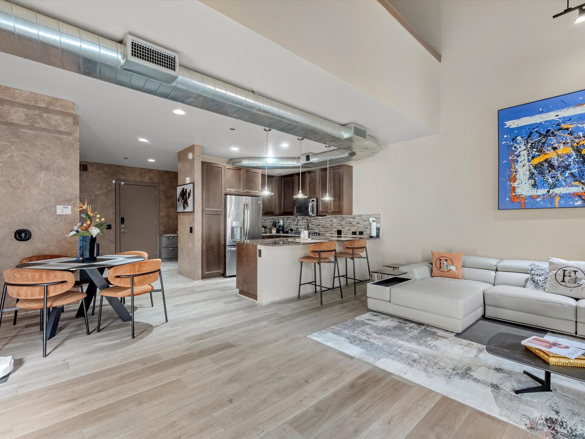 Experienced modern city living in this beautiful loft-style condo located in the prestigious Empire. Just a short walk to The Galleria and iconic Water Wall, you'll enjoy the best of Houston right at your doorstep. This stylish unit comes fully equipped with appliances, a massive 100" TV, and a secure safe in the storage closet for added convenience. Recently upgraded with brand new flooring throughout and remote-controlled window coverings, the space blends comfort, technology, and contemporary design. Perfect for a primary residence or city getaway - this move-in ready home offers luxury, location, and lifestyle all in one.
