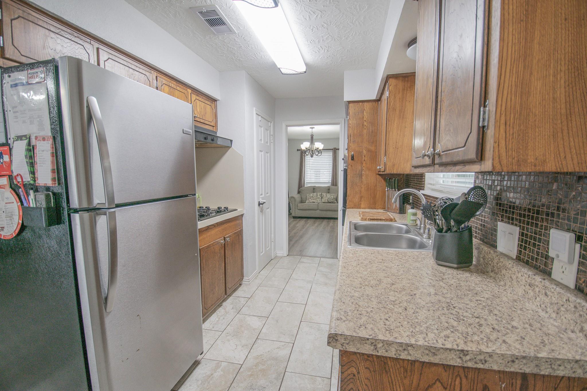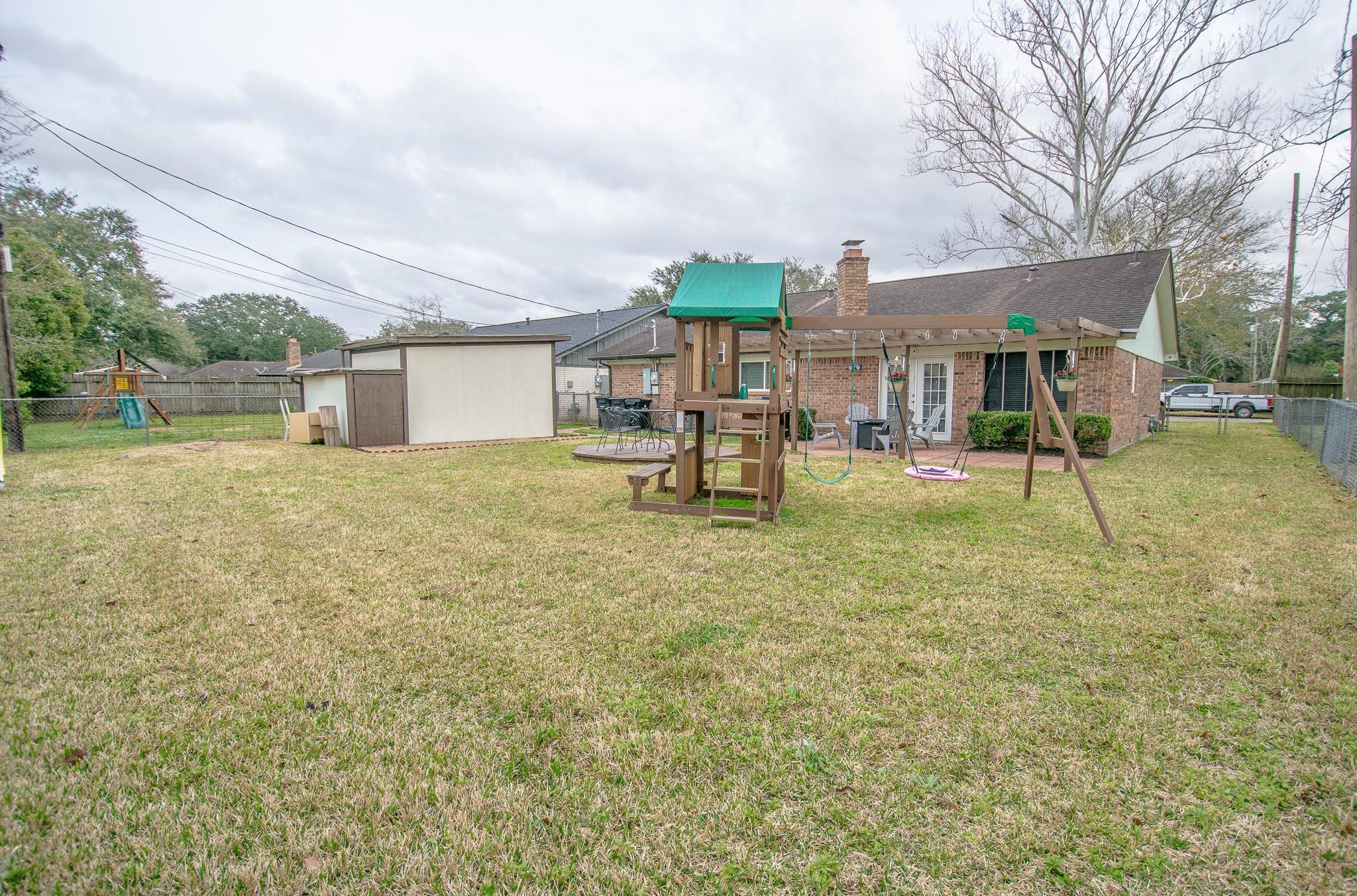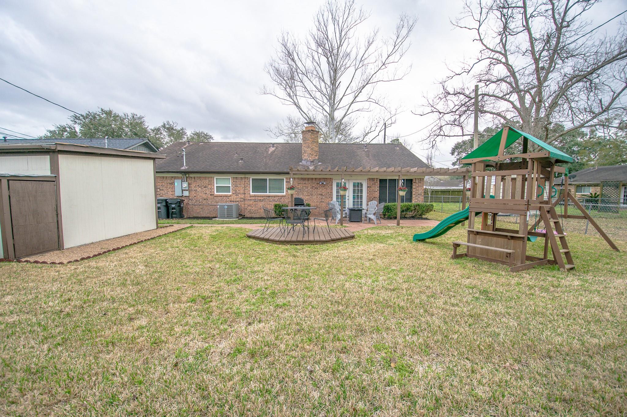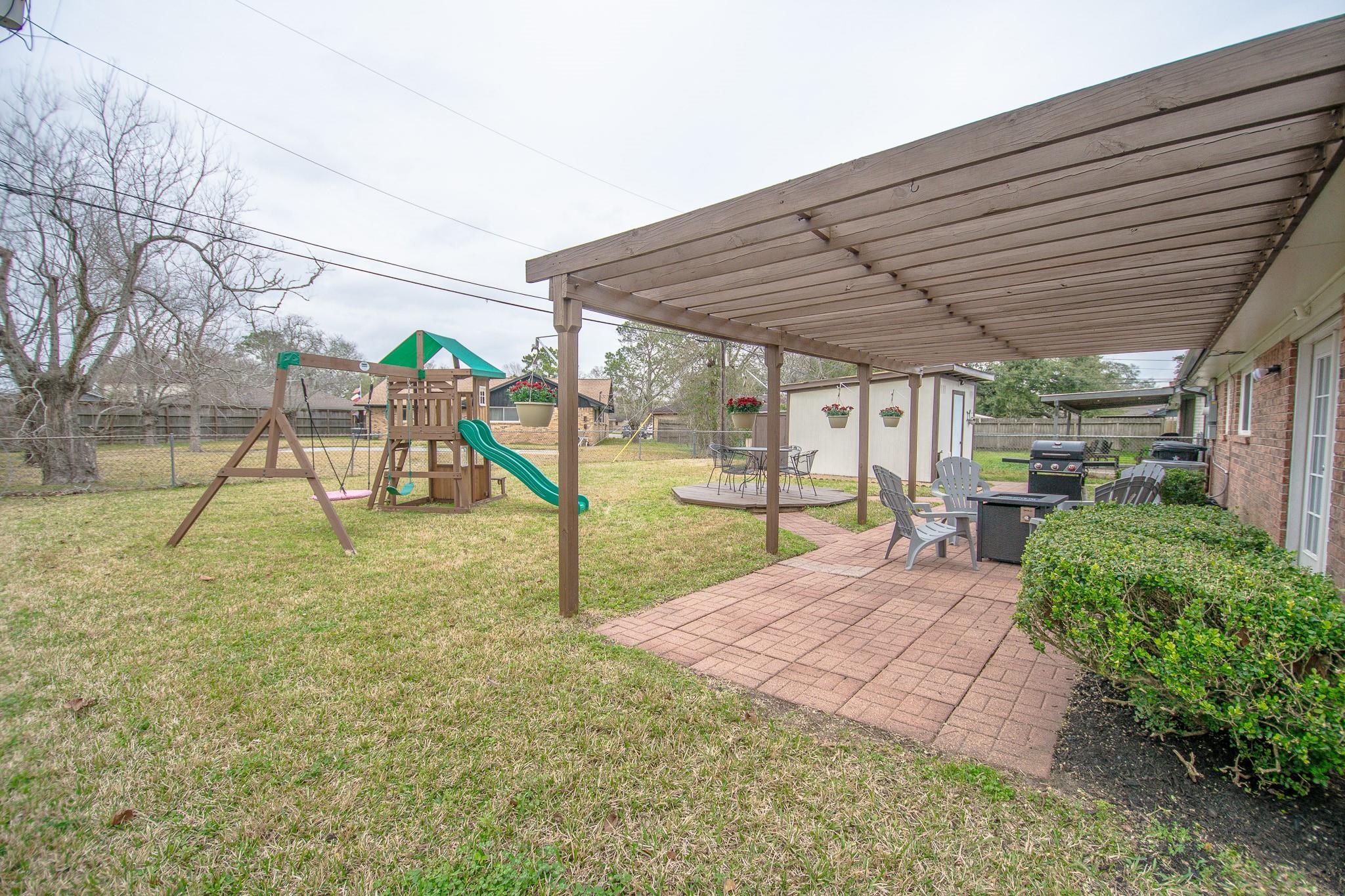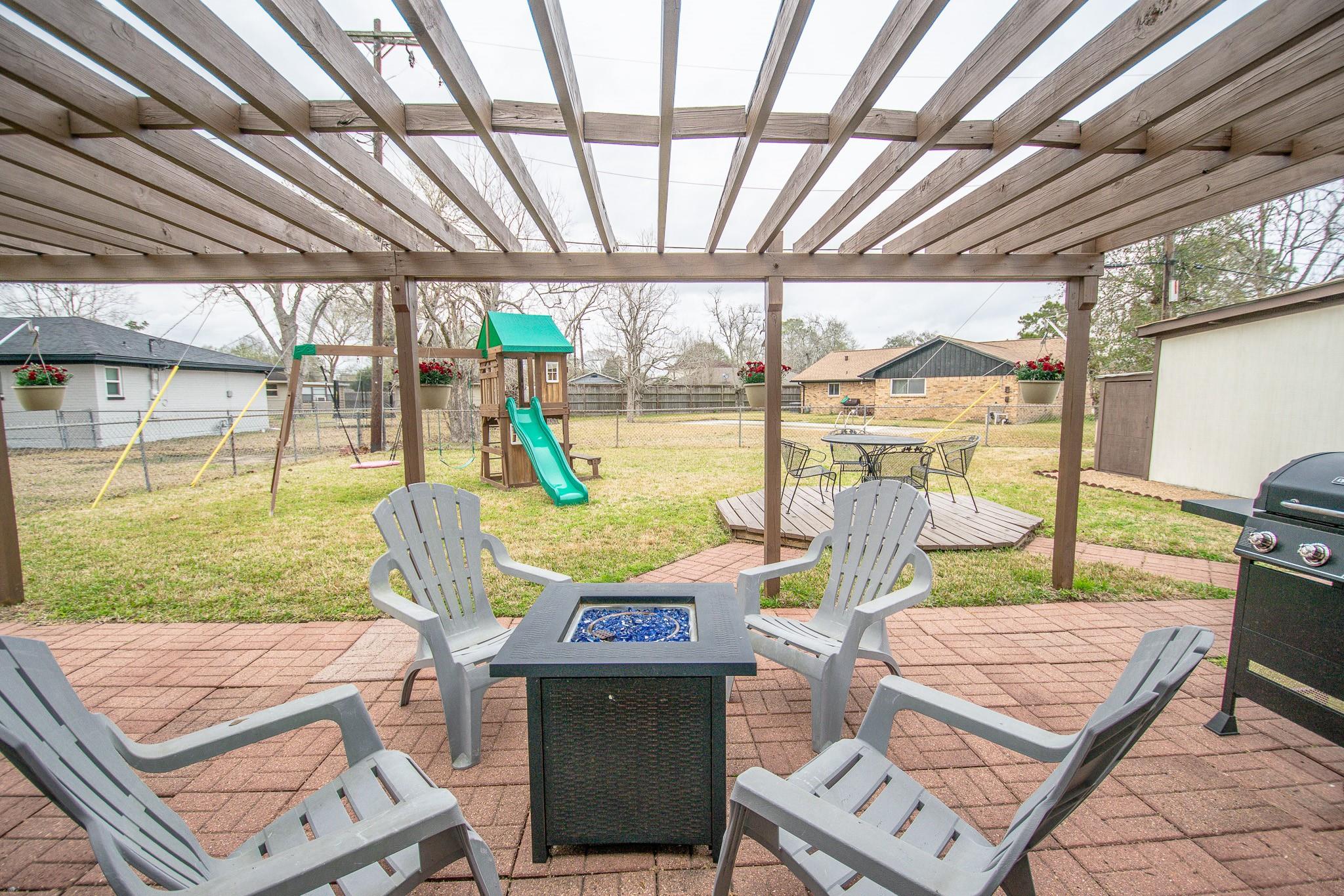 Charming 3-bedroom, 2-bath home in the heart of Alvin offering walkable convenience and quiet neighborhood living. Just minutes from shops, restaurants, and local businesses, yet tucked into a close-knit community. Spacious backyard features a pergola off the French doors and a deck overlooking the yard—perfect for relaxing or entertaining. Inside, the cozy living room includes a charming mock fireplace that creates a warm ambiance. Major updates include: AC/Ducts and flooring (2021), water heater (2018), generator plug and upgraded electrical box (2023), new windows and blown-in insulation (2024), and a fully remodeled primary bathroom completed in late 2025. Fresh interior paint and new ceiling fans throughout. Move-in ready with comfort, charm, and convenience!