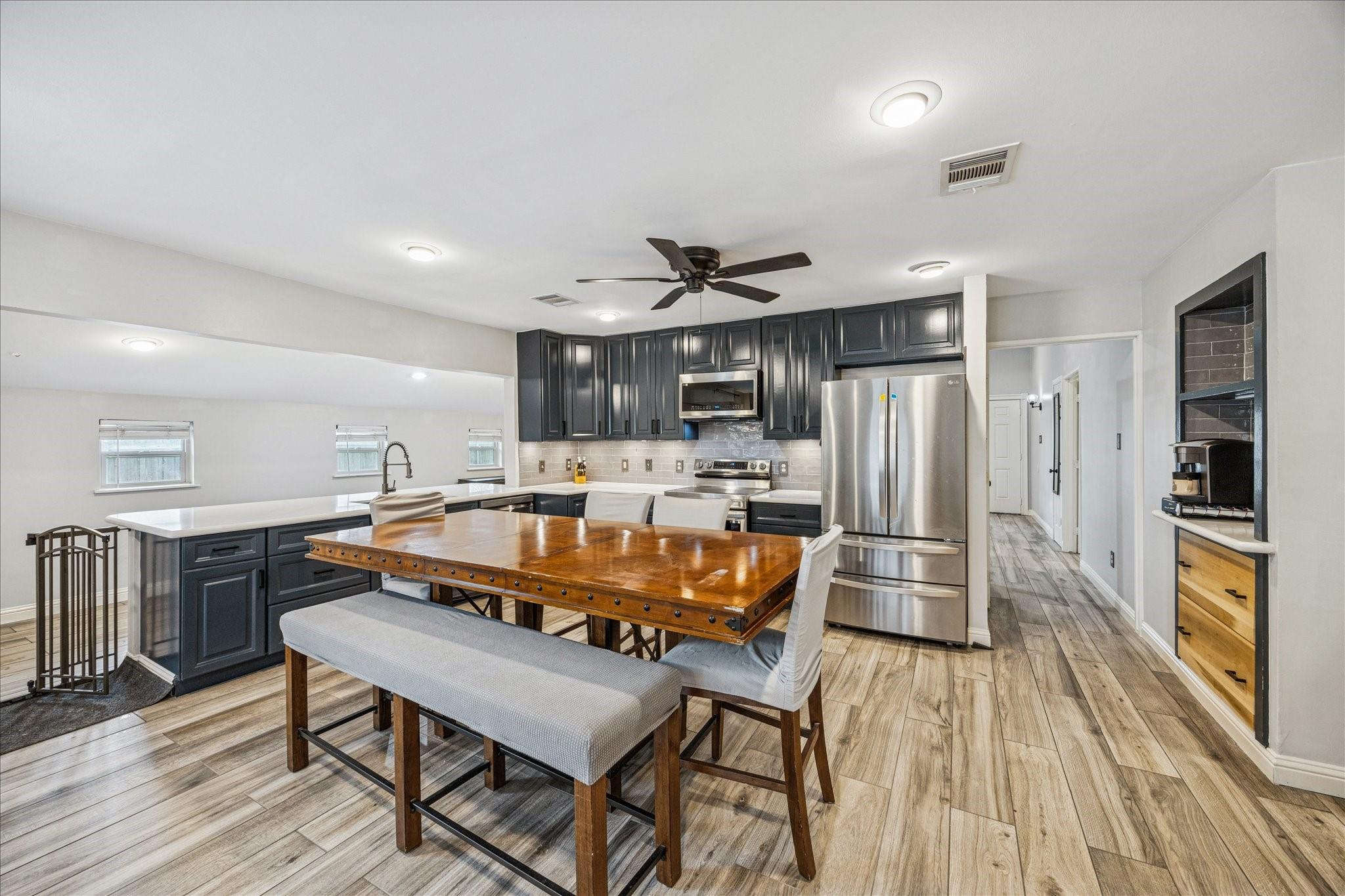 Welcome to 5010 Peebles Dr.! This home is a renovated 3 bed, 2 bath that has NEVER FLOODED! It is located walking distance to the elementary & middle school, neighborhood swimming pool, park and community center. The 2 car garage features epoxy finished flooring and a sliding screen door to add additional outdoor living year round. The exterior of the home features energy efficient windows, roof less than 6 years old, new hardi plank siding, exterior lighting and cameras for security and a paved patio. The interior features a kitchen with quartz countertops, new cabinetry, undermount cabinet lighting, coffee bar, large, lighted pantry and all new appliances as well as an updated electrical panel featuring a home surge protector. The home has two (2) separate living areas divided by interior doors. This gives you the option for open concept living as well as separation and an option for a home office. This home features much more!!