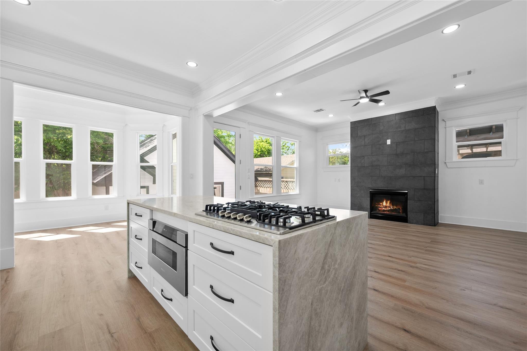 InteriorFireplace:1/Mock FireplaceFloors:Vinyl PlankCountertop:QuartzBathroom Description:Half Bath,Primary Bath: Double Sinks,Primary Bath: Separate Shower,Primary Bath: Soaking Tub,Secondary Bath(s): Tub/Shower ComboBedroom Desc:All Bedrooms Up,En-Suite Bath,Primary Bed - 2nd Floor,Walk-In ClosetKitchen Desc:Butler Pantry,Island w/ Cooktop,Kitchen open to Family Room,Pantry,Pots/Pans Drawers,Soft Closing Cabinets,Soft Closing Drawers,Walk-in PantryRoom Description:1 Living Area,Butlers Pantry,Family Room,Formal Dining,Living Area - 1st Floor,Utility Room in HouseHeating:Central GasCooling:Central GasConnections:Gas Dryer Connections,Washer ConnectionsDishwasher:YesDisposal:YesCompactor:NoMicrowave:YesRange:Gas CooktopOven:Single OvenIce Maker:NoEnergy Feature:Attic Fan,Attic Vents,Ceiling FansInterior:Crown Molding,Fire/Smoke Alarm,Refrigerator Included