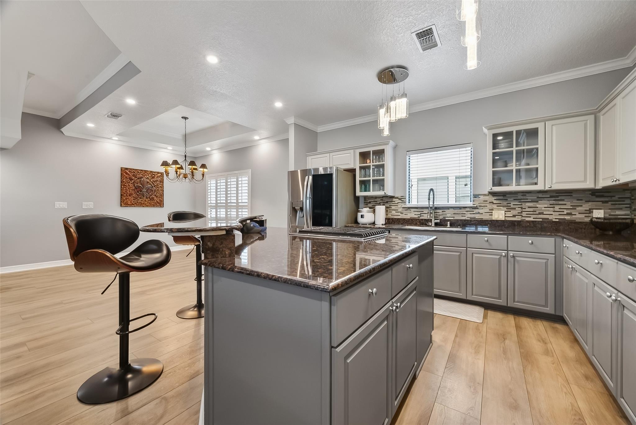 InteriorFloors:Carpet,Tile,Vinyl PlankRoom Description:Entry,Family Room,Kitchen/Dining Combo,Utility Room in HouseBathroom Description:Full Secondary Bathroom Down,Half Bath,Primary Bath: Double Sinks,Primary Bath: Shower Only,Secondary Bath(s): Tub/Shower ComboKitchen Desc:Breakfast Bar,Island w/ Cooktop,Kitchen open to Family Room,PantryBedroom Desc:1 Bedroom Down - Not Primary BR,2 Bedrooms Up,En-Suite Bath,Primary Bed - 3rd Floor,Split Plan,Walk-In ClosetHeating:Central GasCooling:Central ElectricRange:Gas CooktopMicrowave:YesDisposal:YesDishwasher:YesAppliances:Electric Dryer Connection,Gas Dryer ConnectionsEnergy Feature:Ceiling Fans,Digital Program Thermostat,Energy Star AppliancesInterior:Crown Molding,Fire/Smoke Alarm,Formal Entry/Foyer,High Ceiling,Window Coverings