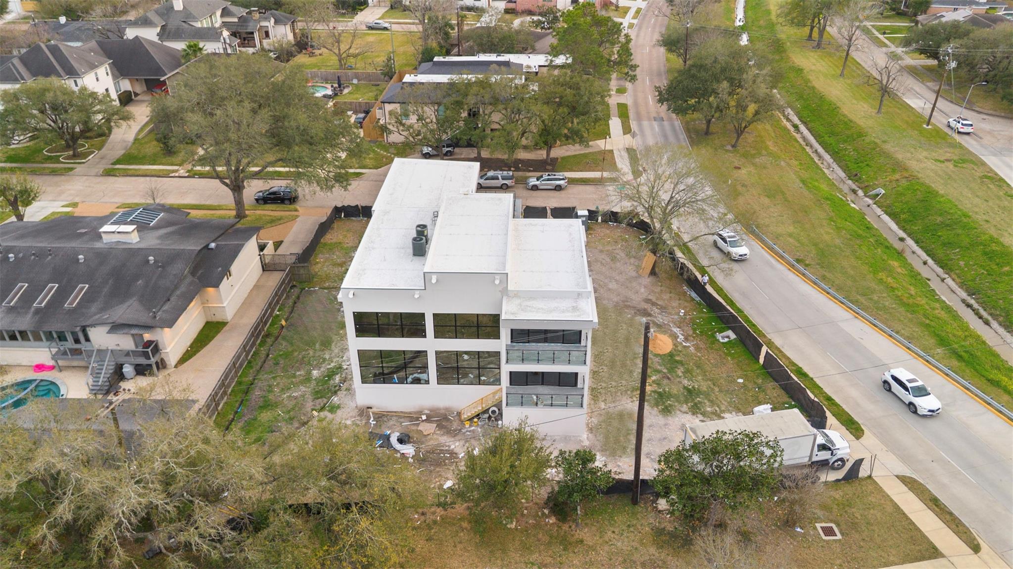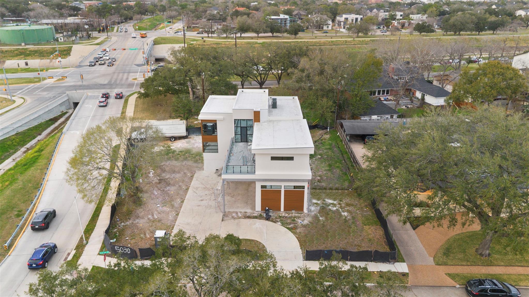 Exceptional new construction on sweeping corner lot where modern architecture meets resort-inspired living. Designed w/ 26' soaring entry w/open-concept living & dining filled w/natural light from large-format windows & sliding glass doors. Chef’s kitchen includes FORNO Galiano appliances featuring a 48" dual-fuel range, 60" side-by-side refrigerator, dishwasher & microwave drawer. Covered terrace off the dining area creates seamless indoor/outdoor entertaining. First-floor also includes a private office/guest suite, full bath, utility area, elevator capability. Primary suite is privately positioned w/its own balcony offering sweeping neighborhood views. Four secondary bedrooms are thoughtfully arranged, w/select rooms also enjoying balcony access & expansive windows. 3-car garage w/approx. 20' ceiling clearance & full-height glass-panel doors. Approx. 3,500 sq ft driveway enhances scale & functionality, providing generous parking & reinforcing the home’s grand corner-lot presence.