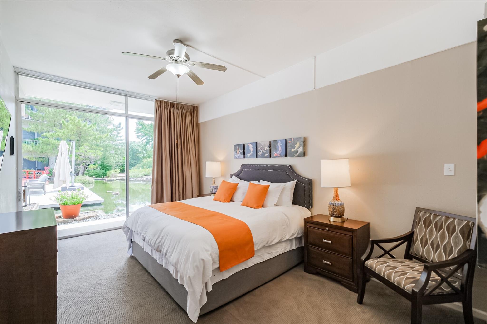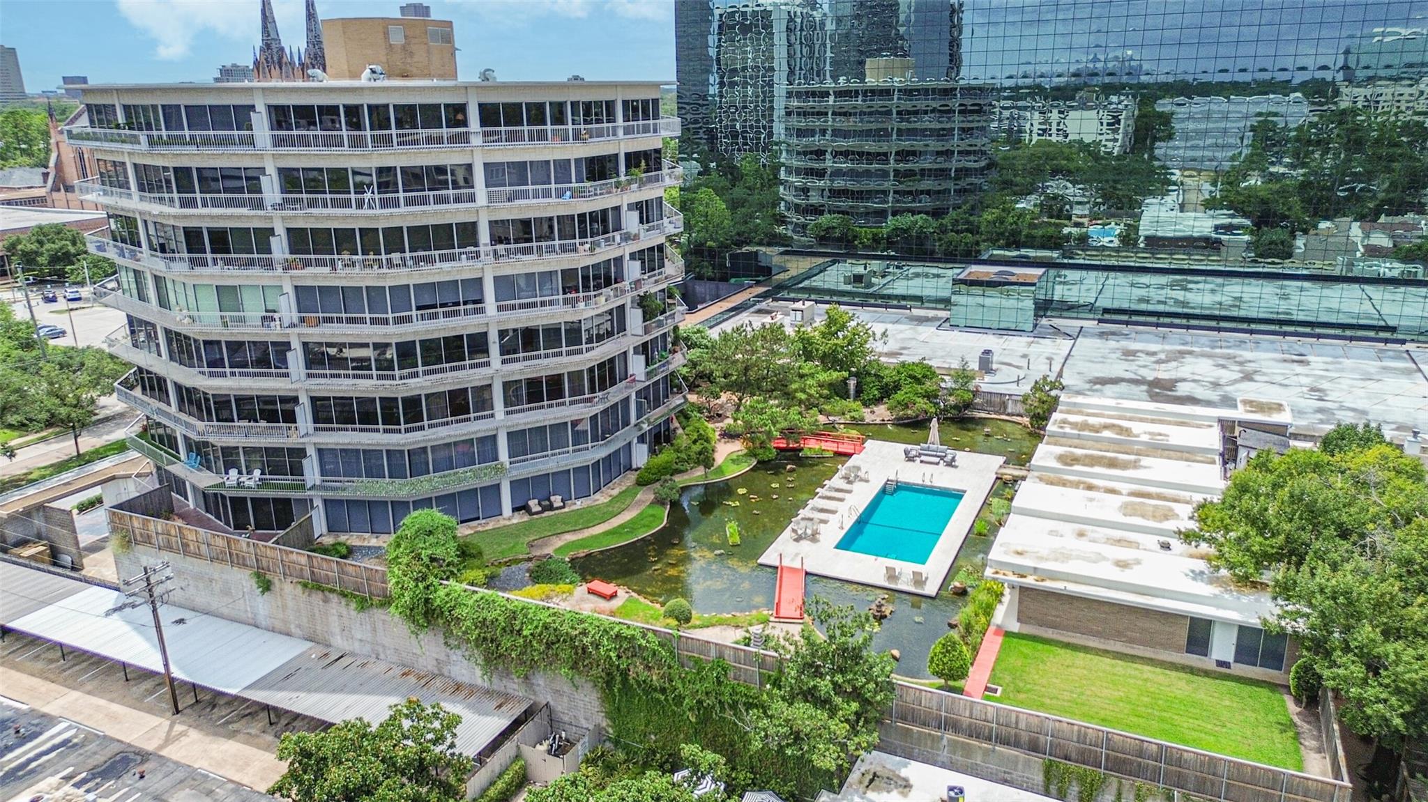Welcome to the epitome of luxury living at Fifty-Fifty Woodway. This spacious 1,996 square-foot(per HCAD) 2-bedroom, 2-bathroom freshly painted unit is bathed in natural light, featuring expansive views through floor-to-ceiling windows. The living room opens to a grand wrap-around balcony, perfect for entertaining. The generous kitchen offers ample storage, a cozy breakfast area, and a pantry. Unwind in the primary bedroom, which boasts new flooring, an ensuite bath and a walk-in closet. The secondary bedroom features a wall of windows and an abundance of closet space. This unit also includes a stackable washer and dryer for your convenience. HOA COVER ALL UTILITIES, including electricity, water, internet and 24 hour concierge. The building’s distinctive design highlights a sparkling pool and serene gardens with koi ponds on the second floor. Five guest cabanas overlook the pool and ponds, ensuring a luxurious experience for your visiting family and friends.