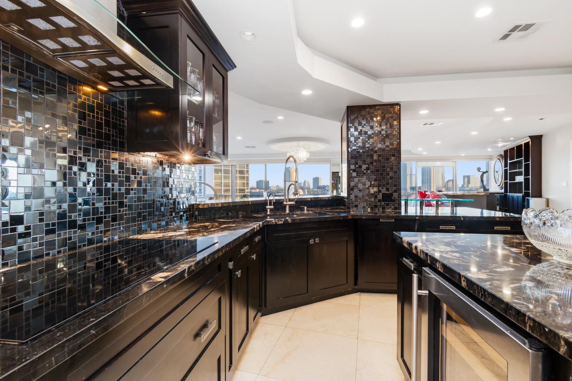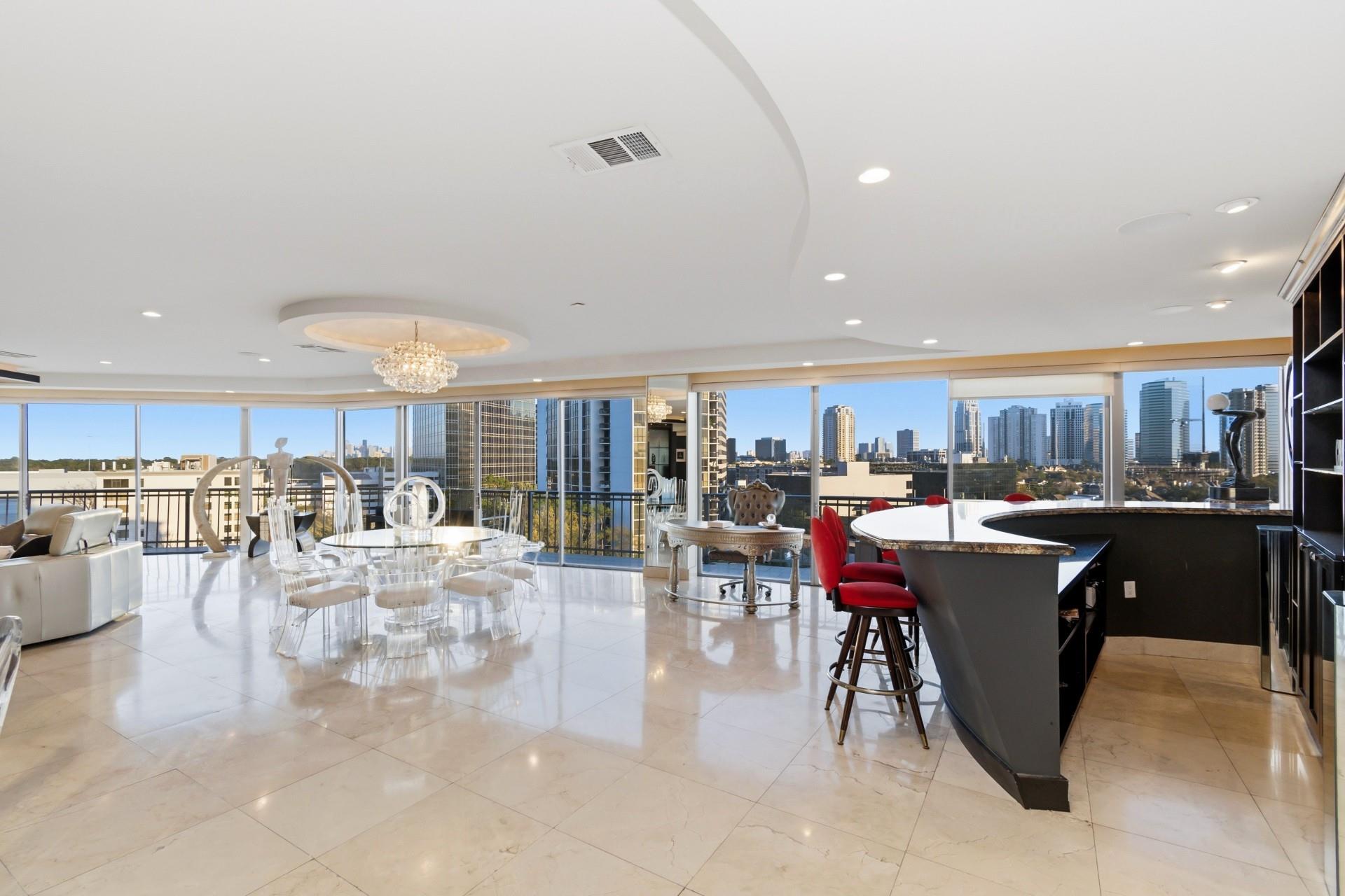 Rare opportunity to own one of the most distinctive Penthouses in the area, offering 3,992 sq ft of living space with breathtaking panoramic views spanning Downtown, Uptown and the Houston skyline.Floor-to-ceiling windows with multiple sliding glass doors flood the home with natural light and city skyline views from nearly every room.The expansive wrap-around balcony creates a true extension of the living space - ideal for entertaining or simply enjoying the city from above.The open layout keeps the views front and center, complemented by marble flooring throughout, a renovated kitchen and flexible living areas suited for guests, office, media, or additional living space.This residence offers a rare combination of scale, location, and lock-and-leave convenience while maintaining the feel of a full-size home in the sky. One of the most unique and rarely available floor plans in the city. Amenities include 24-hr concierge, pool, cabanas and beautifully maintained grounds.