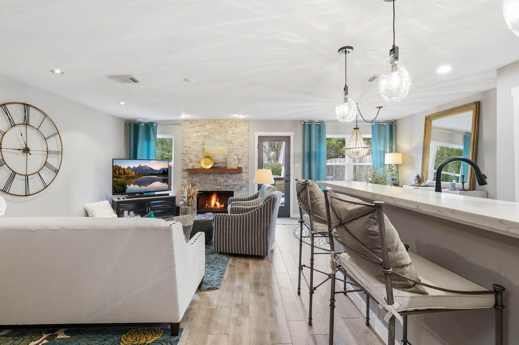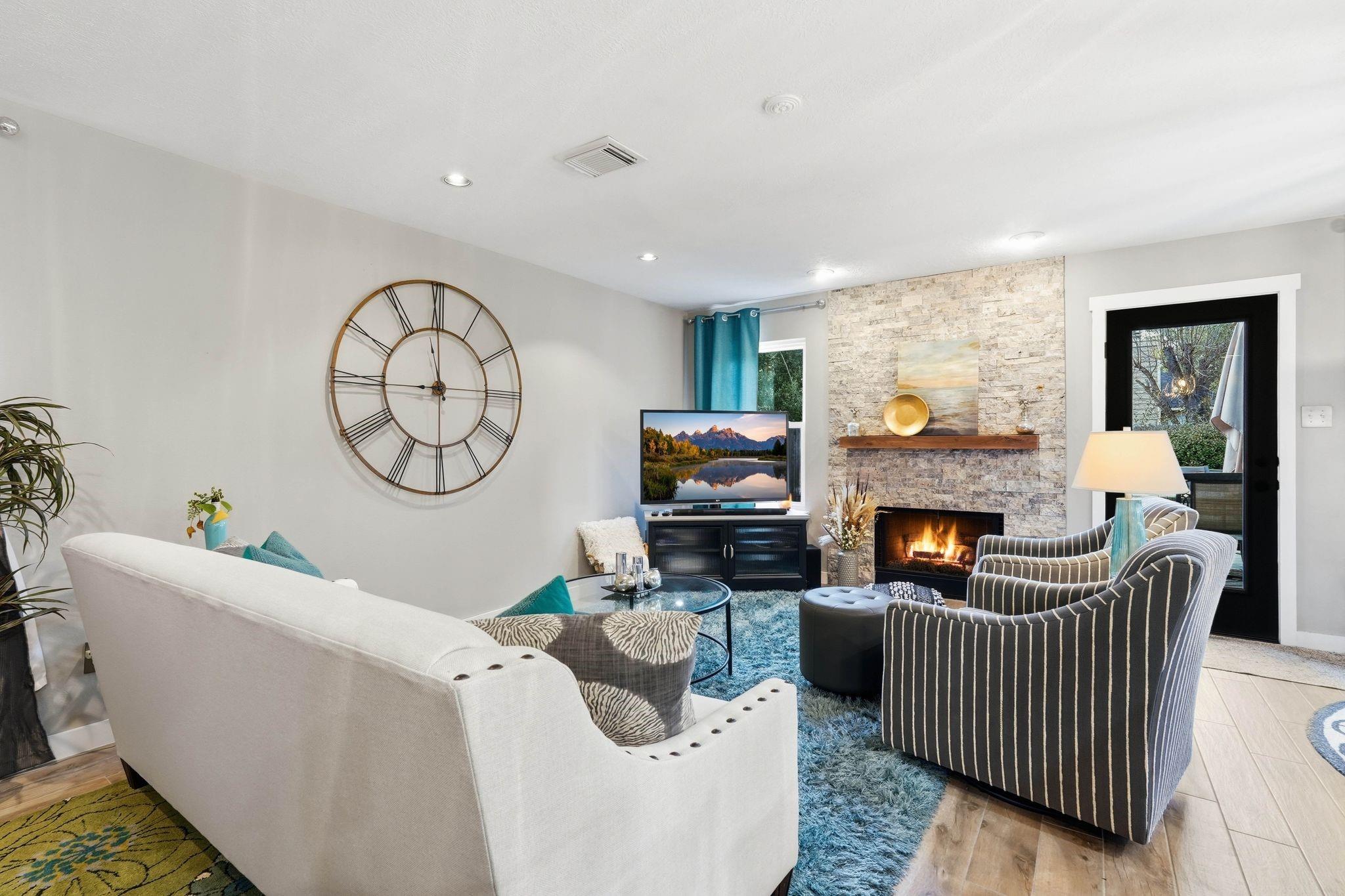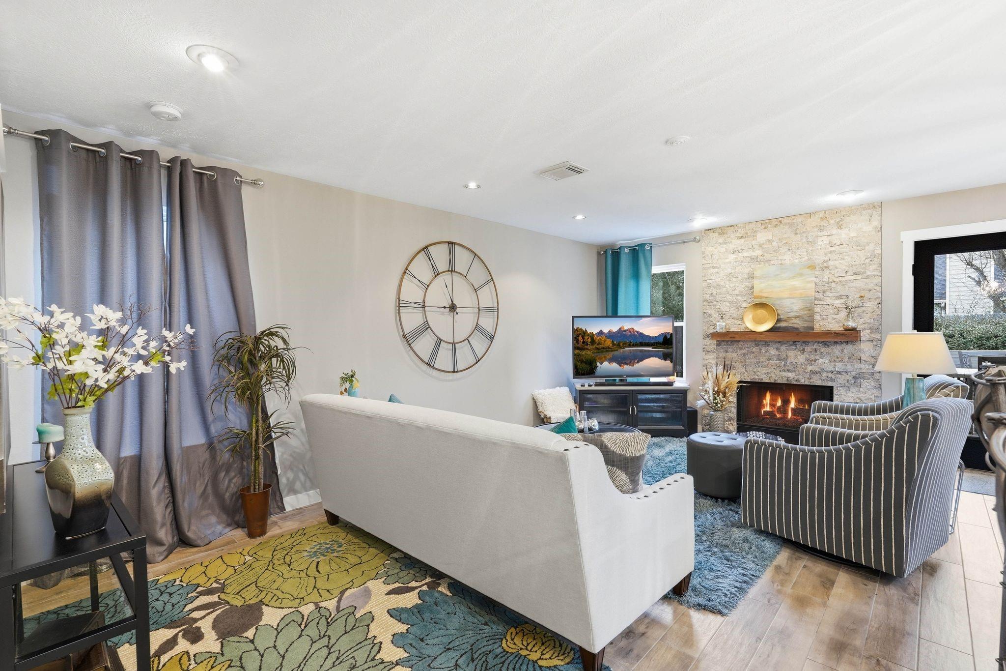 Luxury meets practicality in this beautifully upgraded townhome featuring over $60K in designer finishes. Offering 2 bedrooms, a study, and 2.5 baths, this home impresses from the moment you enter. The main floor showcases wood-look tile, an open-concept layout, and a stylish kitchen with upgraded cabinetry, stainless steel appliances, and stunning porcelain countertops overlooking the living area with a remodeled stone fireplace. A convenient remodeled half bath completes the first level. Upstairs, the spacious primary suite includes a bonus area ideal for an office or gym, plus an ensuite bath with dual vanities, soaking tub, and separate shower. The secondary bedroom features its own renovated full bath and could serve as a second primary. Enjoy peaceful mornings or entertaining on the recently added Trex deck. Move-in ready and a must-see!