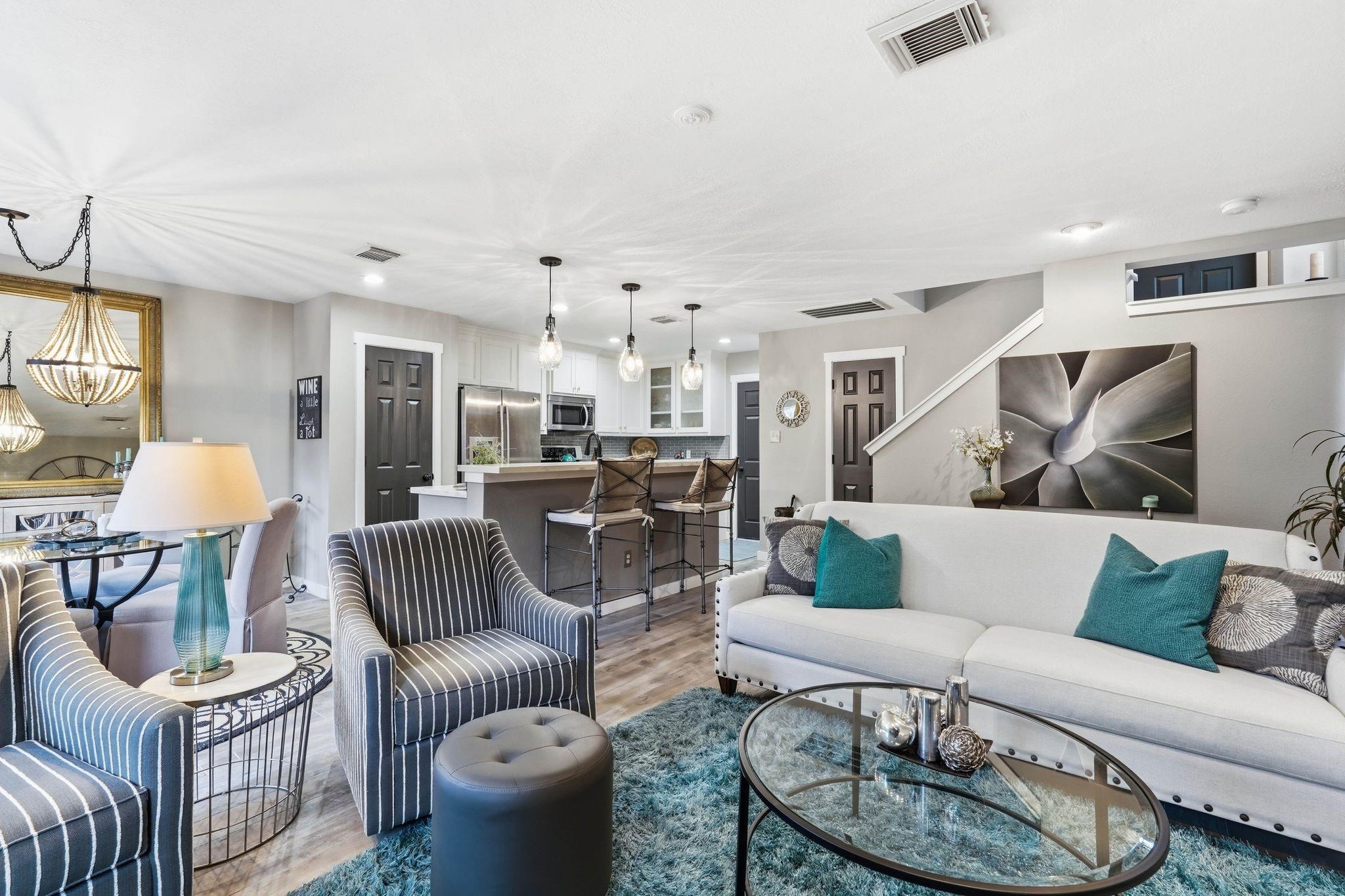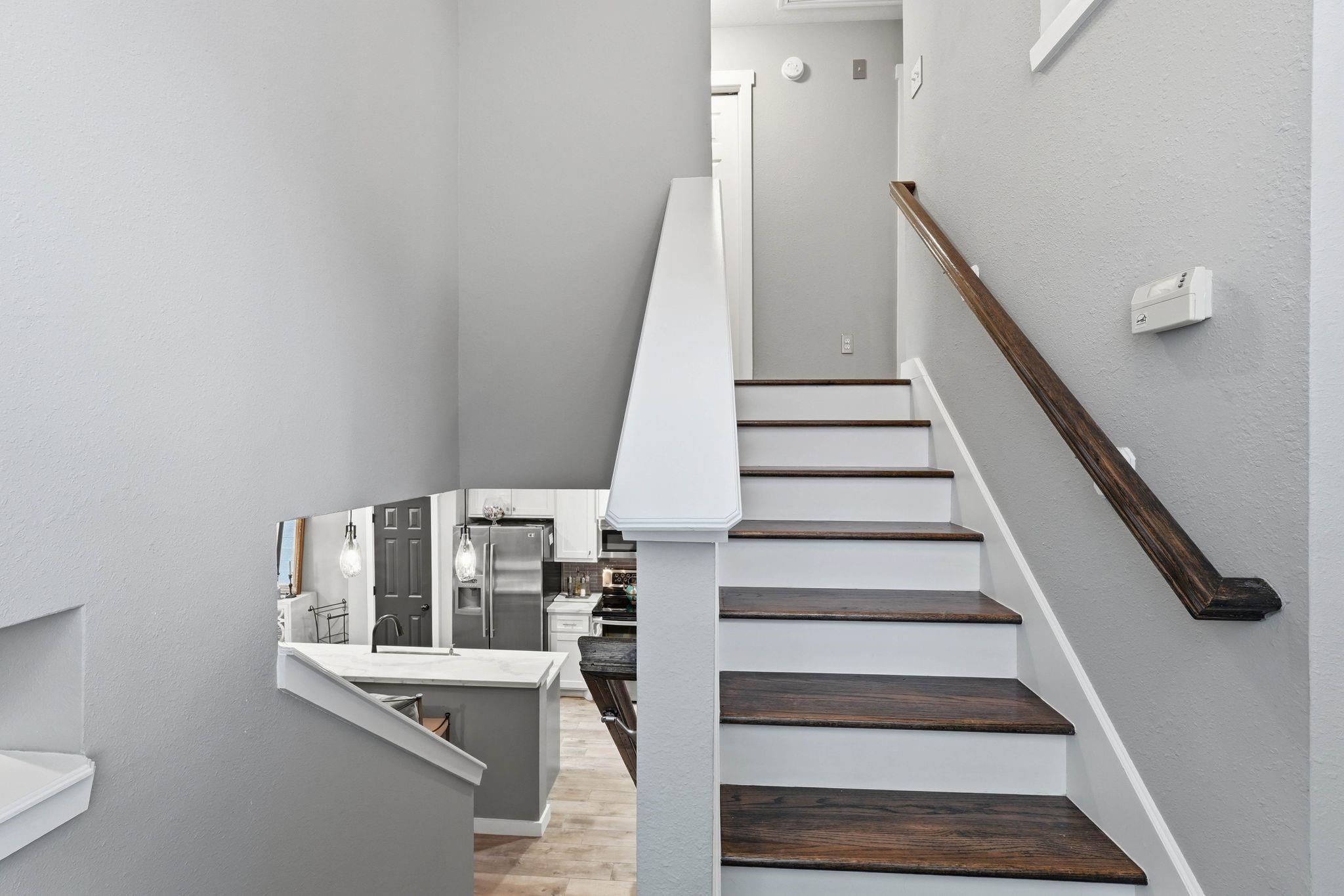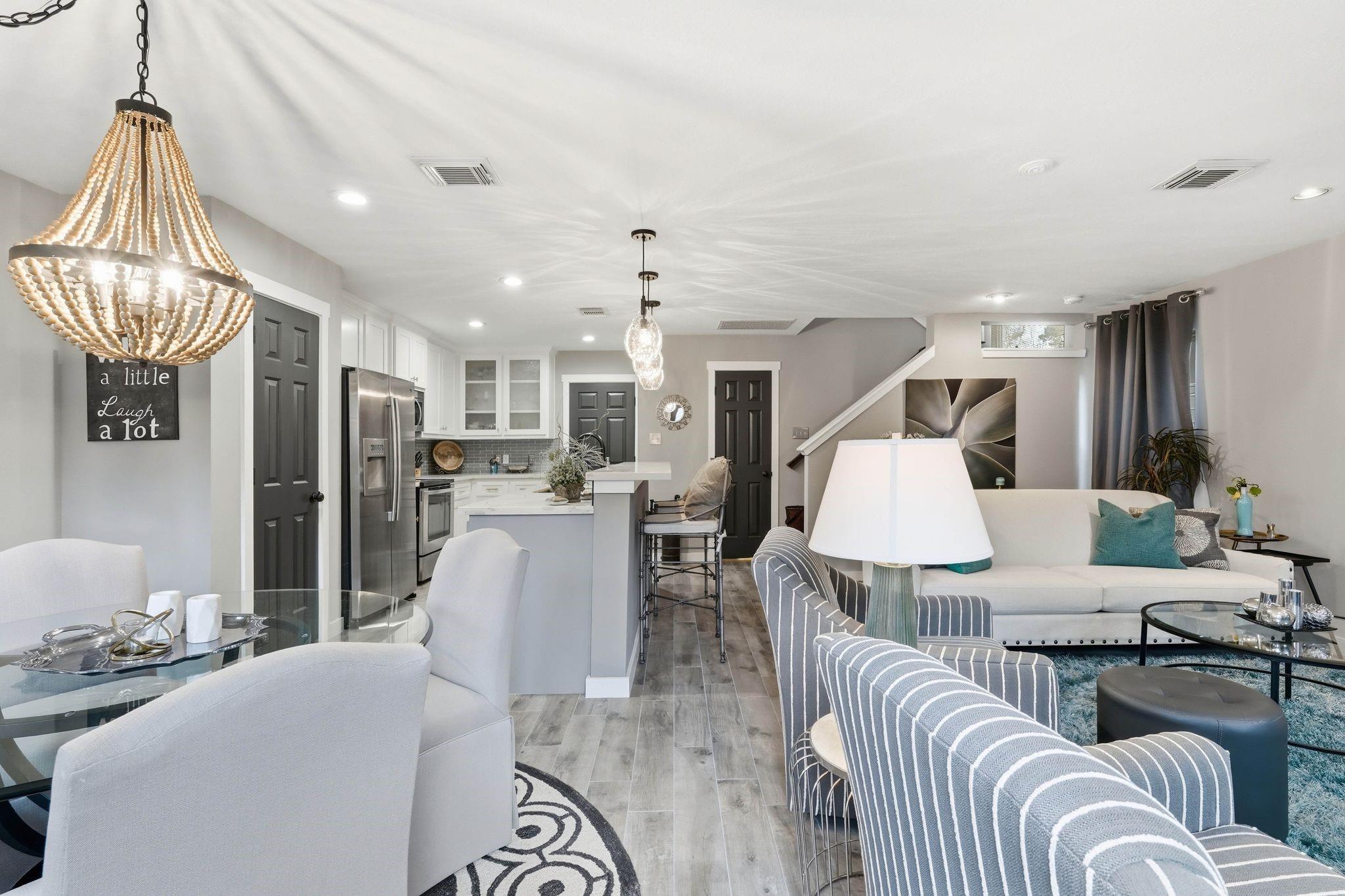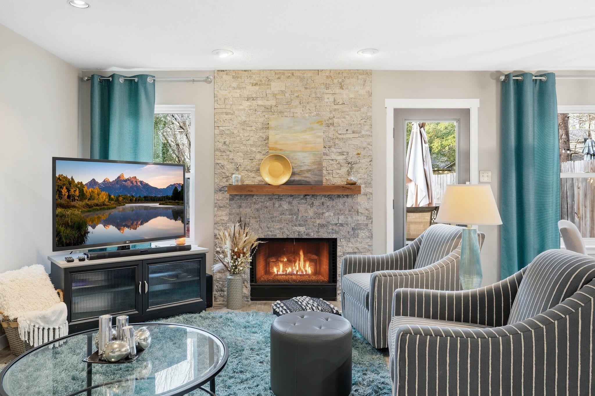 Luxury meets practicality in this beautifully upgraded townhome featuring over $60K in designer finishes. Offering 2 bedrooms, a study, and 2.5 baths, this home impresses from the moment you enter. The main floor showcases wood-look tile, an open-concept layout, and a stylish kitchen with upgraded cabinetry, stainless steel appliances, and stunning porcelain countertops overlooking the living area with a remodeled stone fireplace. A convenient remodeled half bath completes the first level. Upstairs, the spacious primary suite includes a bonus area ideal for an office or gym, plus an ensuite bath with dual vanities, soaking tub, and separate shower. The secondary bedroom features its own renovated full bath and could serve as a second primary. Enjoy peaceful mornings or entertaining on the recently added Trex deck. Move-in ready and a must-see!