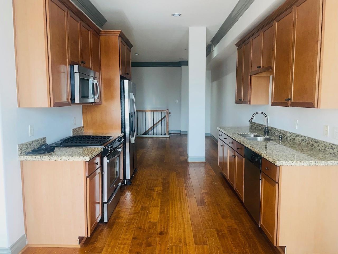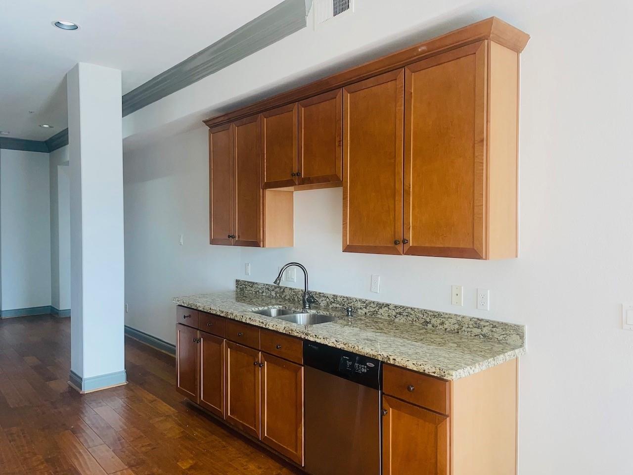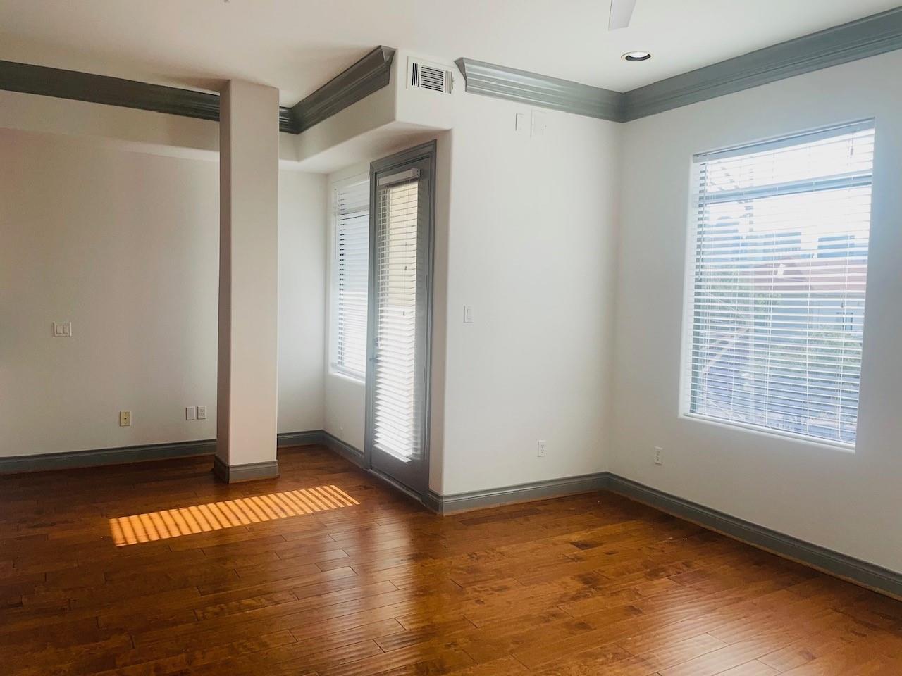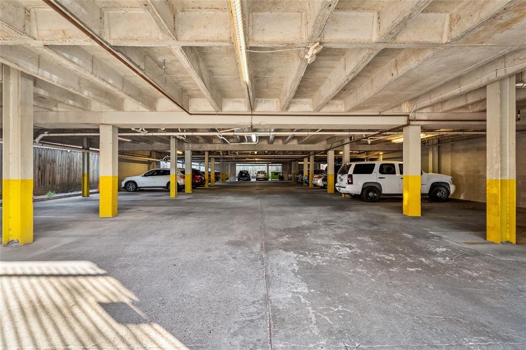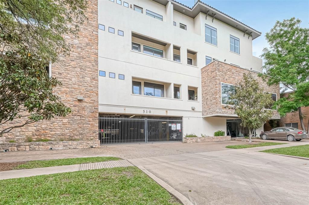 Beautiful two-level condo in historic Montrose Area: This home comes with beautiful finishes throughout, open floor plan & a view of Houston's skyline from your own balcony. Living Area offers natural light, open concept, hardwood floors, and recessed lighting, kitchen has 42" cabinets, recessed lighting, granite counters, stainless appliances, gas range, wood flooring, spacious walk in pantry, small breakfast area, dining room area, small balcony, Spacious bedroom/suite located on lower level giving you that private retreat, 2 lg walk in closets, lg. bathroom features a jetted tub separate shower, double sinks and water closet, Utility closet with washer and dryer conveniently located on lower level. Property has controlled access and gated parking garage with 1 assigned parking space, onsite fitness facility, and the most amazing rooftop terrace with a picture perfect view of downtown Houston's skyline. Walking distance to great restaurants, dog park, and more.