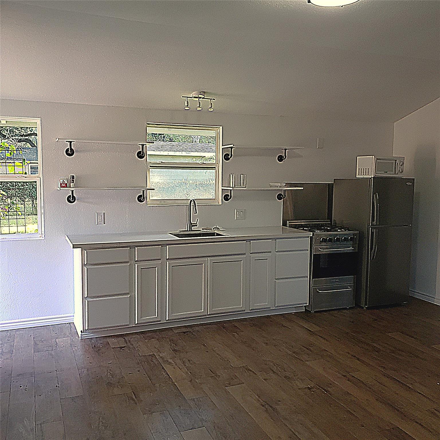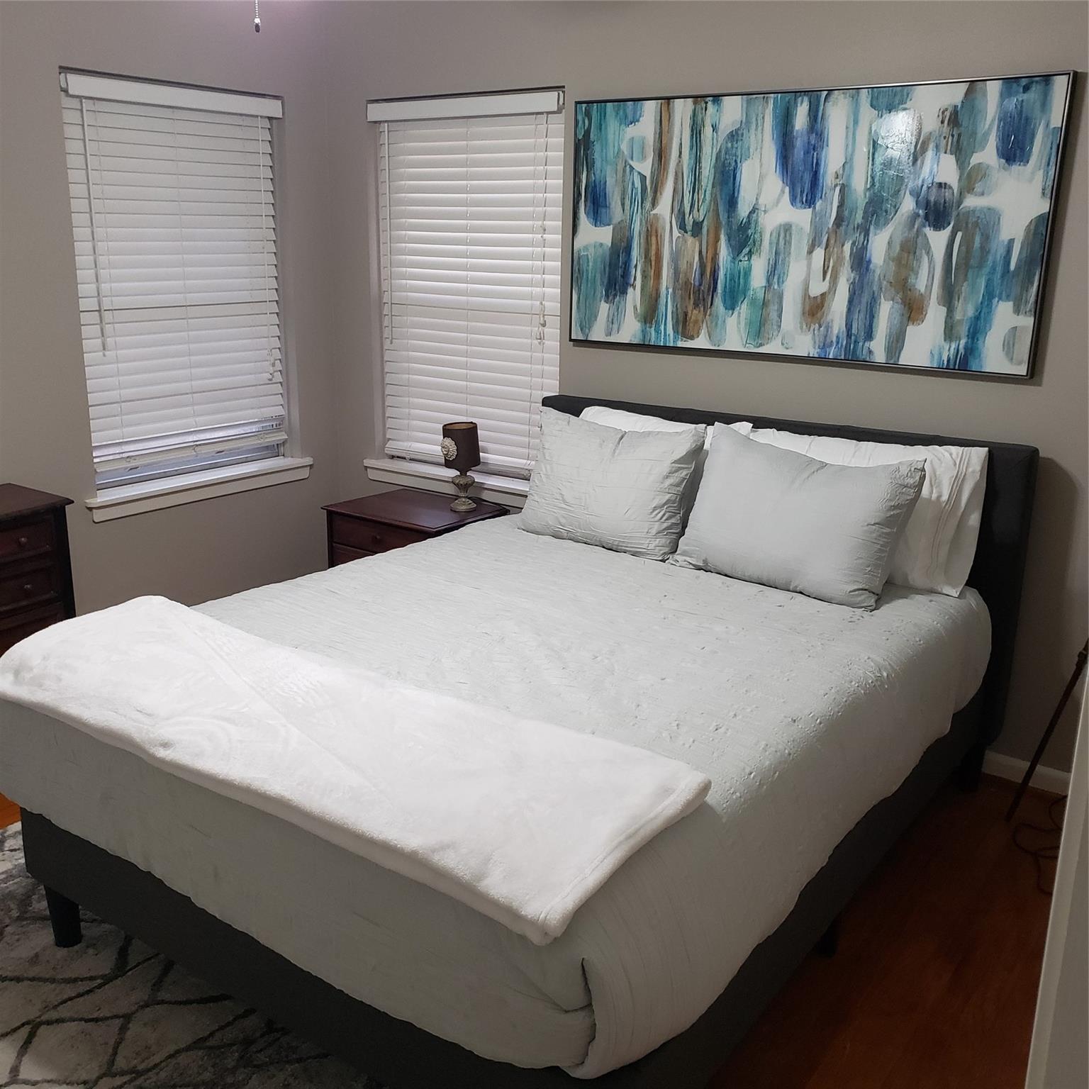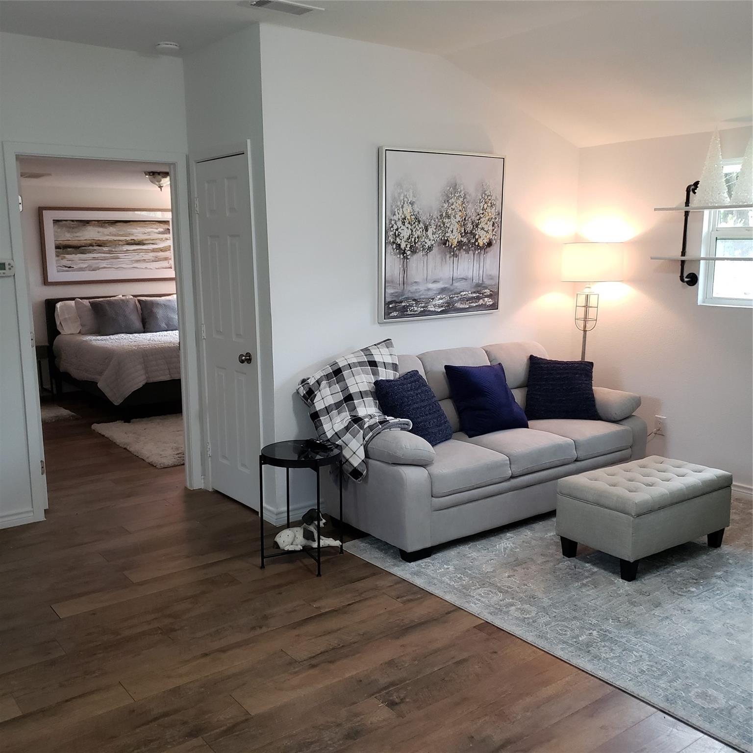 /monthCharming single story home with garage apartment on large lot in Belknap Brookside Community nestled on gorgeous tree lined street! Main home features 3 bedrooms, 1.5 baths, lovely wood flooring throughout , spacious living & dining rooms, and open kitchen for easy entertaining. Attached 1-car converted garage includes laundry room and plenty of storage space with window ac unit. The detached updated cottage includes living room, kitchen, private bedroom with ensuite bathroom, and stacked Washer/Dryer. This is ideal for in-laws, guests, roommate, studio - so many options! Fully furnished ! Large covered patio is ideal for entertaining, relaxing & enjoying the wonderful backyard space with fabulous pecan tree. And there's more... 2 large storage areas to store garden tools, workshop materials etc. Located minutes from downtown Sugarland, premier shopping, restaurants farmers market & entertainment. Dont miss the opportunity to live in this hidden gem of a community!
