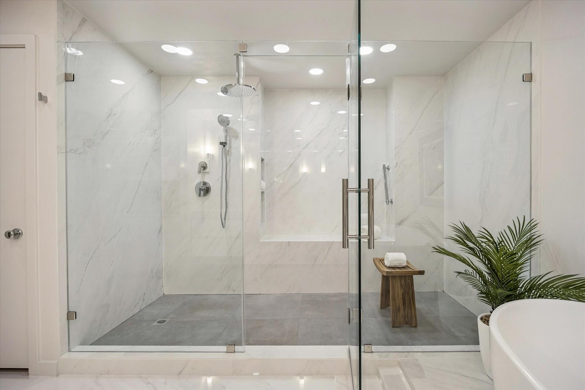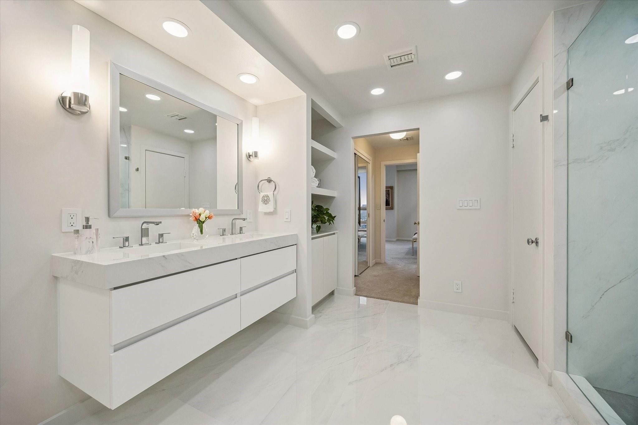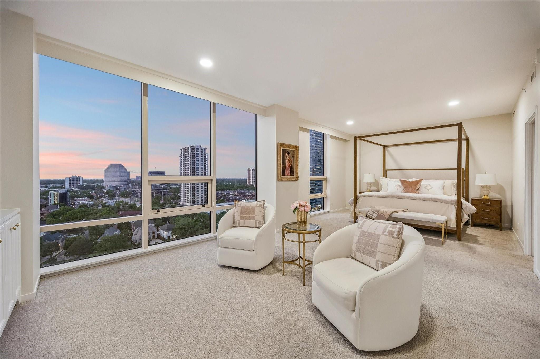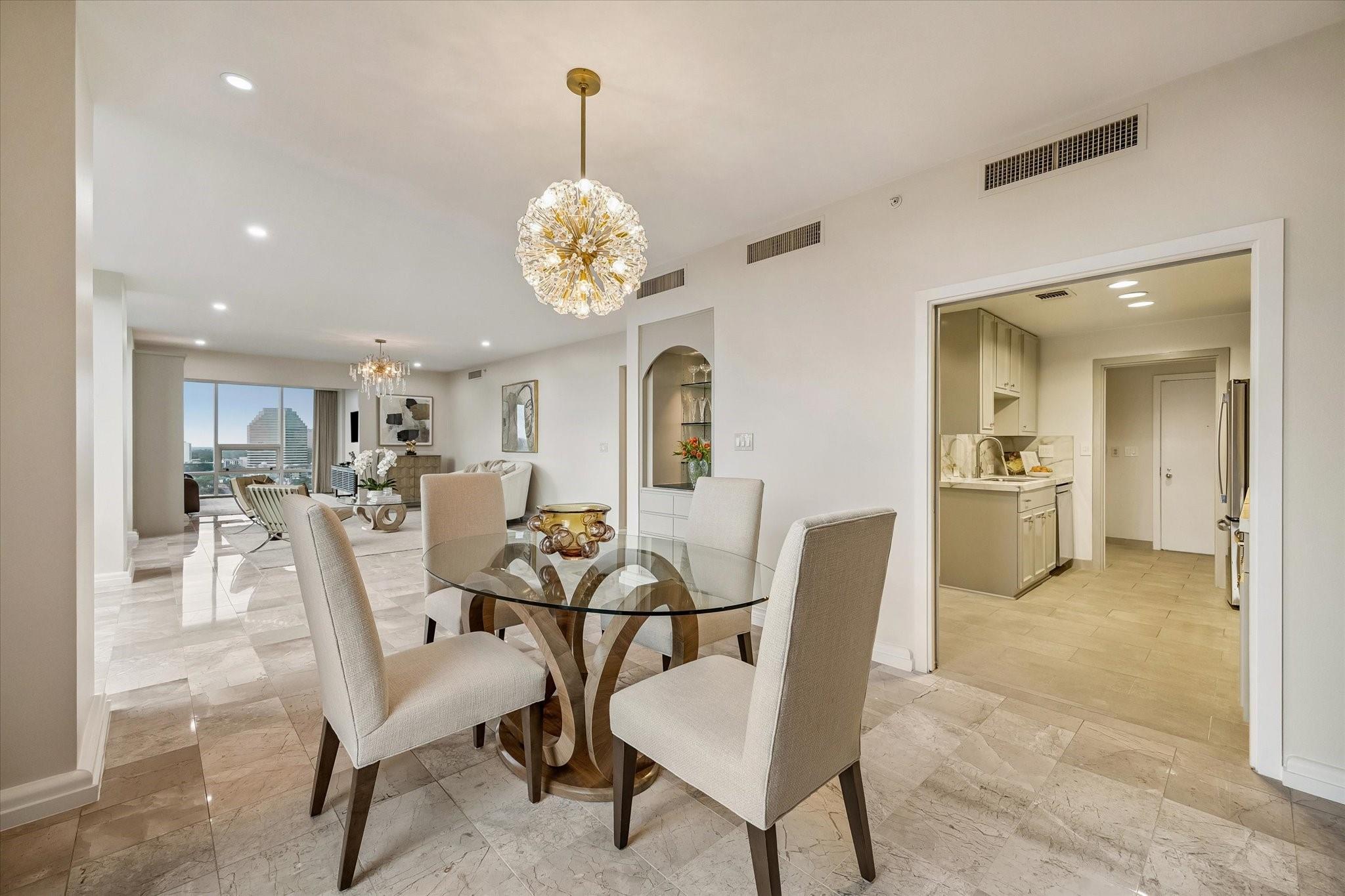 Beautifully renovated 2,690 sq. ft. 16th floor residence with Northwest views overlooking Tanglewood and 9 acres of manicured resort style grounds at Four Leaf Towers. Warm neutral tones, marble flooring, designer lighting, thoughtful built-in cabinetry and excellent floor plan. Spacious living and dining rooms flow seamlessly with abundant light. Corner sunroom with floor to ceiling windows. Updated kitchen includes Wolf induction cooktop, porcelain counters, expanded pantry with 2nd sink, stacked washer/dryer. Spacious primary suite with floor to ceiling windows, 3 closets, custom cabinetry and spa bath with huge walk-in shower, freestanding soaking tub, lit mirrors and double sinks. Ensuite secondary bedroom with updated bath with walk-in shower and walk-in closet. Full service living w/24-hour concierge, valet, porter, fitness center, dry sauna, spa & party room. Nine acres of manicured gated grounds w/heated swimming pool, dog park, play area, grills & covered cabanas.