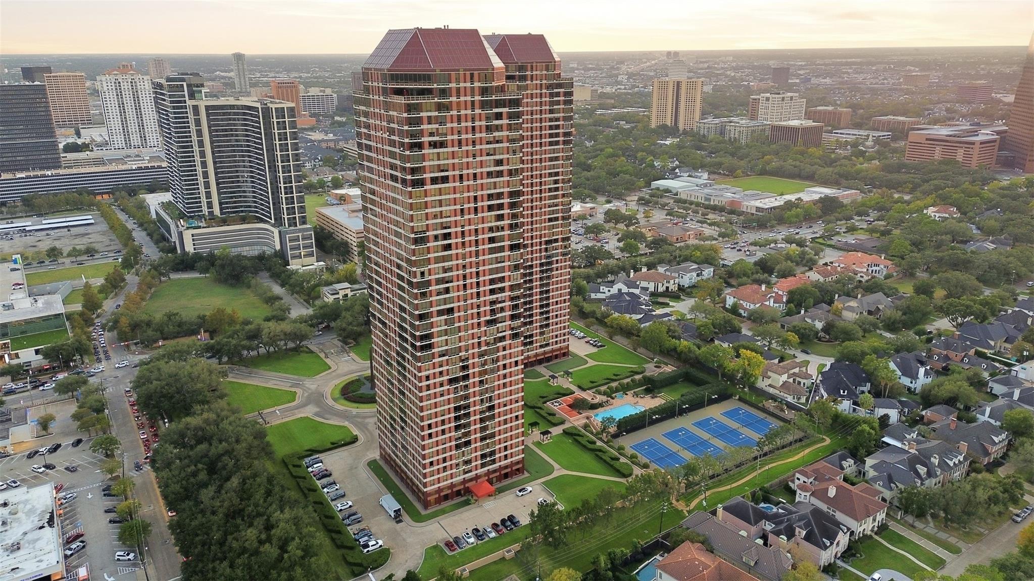 Experience luxury living in the prestigious Four Leaf Towers. This beautifully updated 1-bed/1.5-bath residence features hardwood floors, floor-to-ceiling windows with calming northern views, custom cabinetry, quartz countertops, stainless appliances, and an inviting open living/dining layout. The primary suite offers custom closets and a spacious bath with double sinks and large shower. Enjoy full-service amenities including 24/7 concierge, valet, fitness center, dry sauna, spa, resort-style pool with cabanas, tennis and pickleball courts, dog park, and nine acres of gated, manicured grounds. Unmatched location with walkability to Tanglewood and the Post Oak shopping/dining district, offering easy access to premier restaurants, boutiques, and the Uptown/Galleria area.
