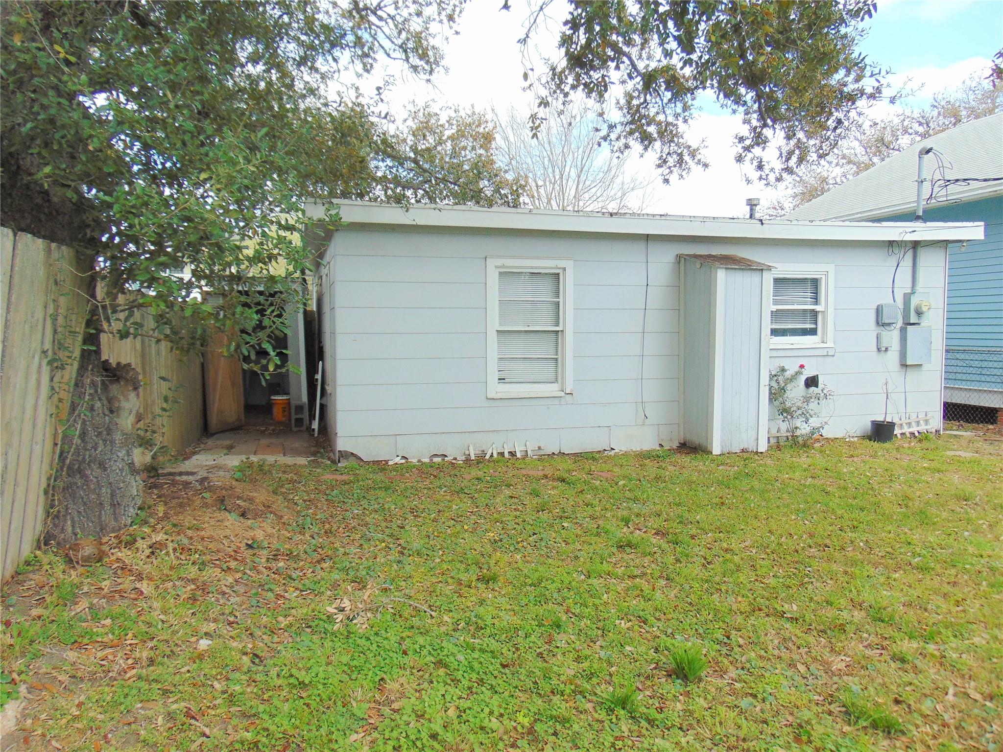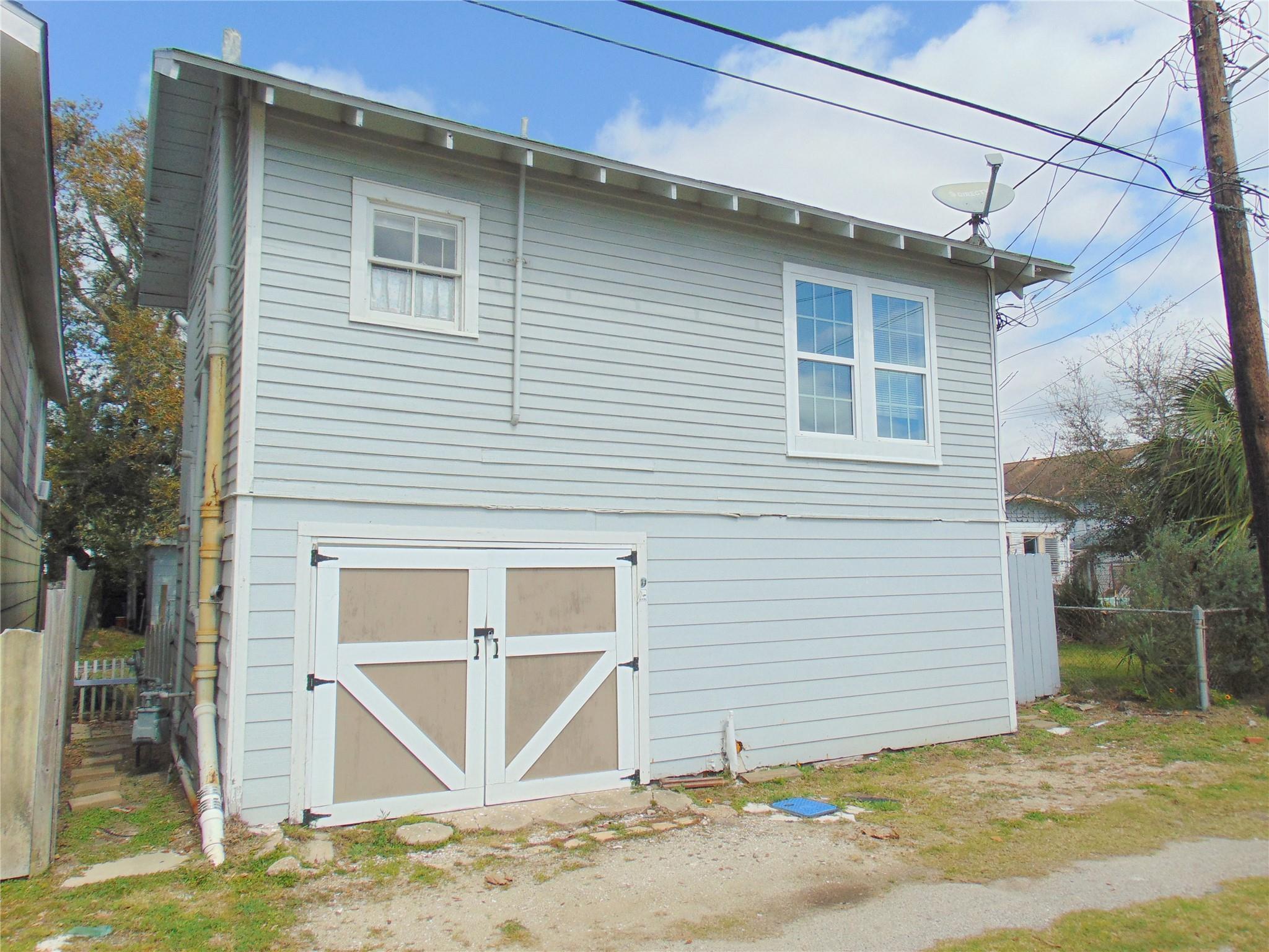 Two houses - each house is physically separate, fenced separately, very private, with SEPARATE utilities. On a quiet street between the main one way streets through Galveston and easy access to the beach, UTMB, and A&M. FRONT HOUSE is a single story open floor plan with 2 bedrooms; driveway offers off street parking. Opportunity to build up and make the space larger. A small storage building beside the house for your bicycle and extra stuff. GARAGE APARTMENT is a 2 story loft style house with a large bedroom, spacious kitchen and bath upstairs. Downstairs is a family room and garage area housing washer dryer. Potential to house small car/golfcart in garage by removing post and installing header. Recently successfully rented, as each house is responsible for its own electricity, water, trash, yard work. Mini splits recently installed in both units. See floorplans in photos. Both have refrigerators and washer dryers. Hurry and get this high-potential investment, cash-flow-ready duplex.