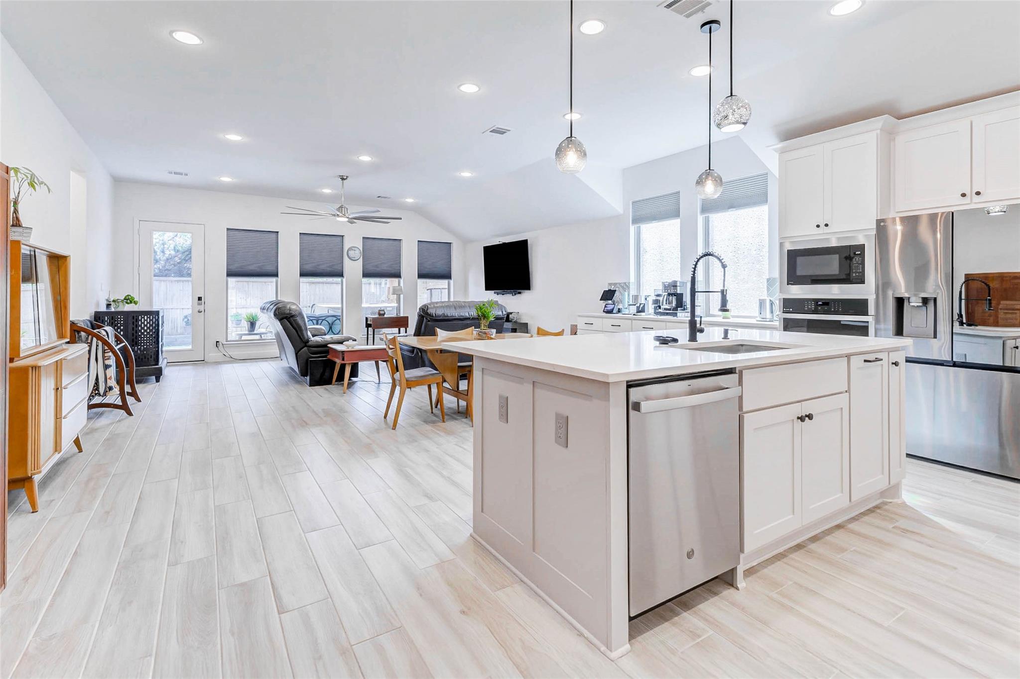 InteriorFloors:Carpet,Engineered Wood,TileCountertop:QuartzBathroom Description:Half Bath,Primary Bath: Double Sinks,Primary Bath: Separate Shower,Primary Bath: Soaking Tub,Secondary Bath(s): Tub/Shower ComboBedroom Desc:All Bedrooms Down,En-Suite Bath,Primary Bed - 1st Floor,Walk-In ClosetKitchen Desc:Breakfast Bar,Island w/o Cooktop,Kitchen open to Family Room,Pantry,Under Cabinet Lighting,Walk-in PantryRoom Description:1 Living Area,Entry,Family Room,Home Office/Study,Kitchen/Dining Combo,Living Area - 1st Floor,Living/Dining Combo,Utility Room in HouseHeating:Central GasCooling:Central GasConnections:Electric Dryer Connections,Gas Dryer Connections,Washer ConnectionsDishwasher:YesDisposal:YesMicrowave:YesRange:Gas CooktopOven:Electric OvenEnergy Feature:Attic Fan,Ceiling Fans,Digital Program Thermostat,Energy Star Appliances,Energy Star/CFL/LED Lights,High-Efficiency HVAC,Other Energy FeaturesInterior:Fire/Smoke Alarm,High Ceiling