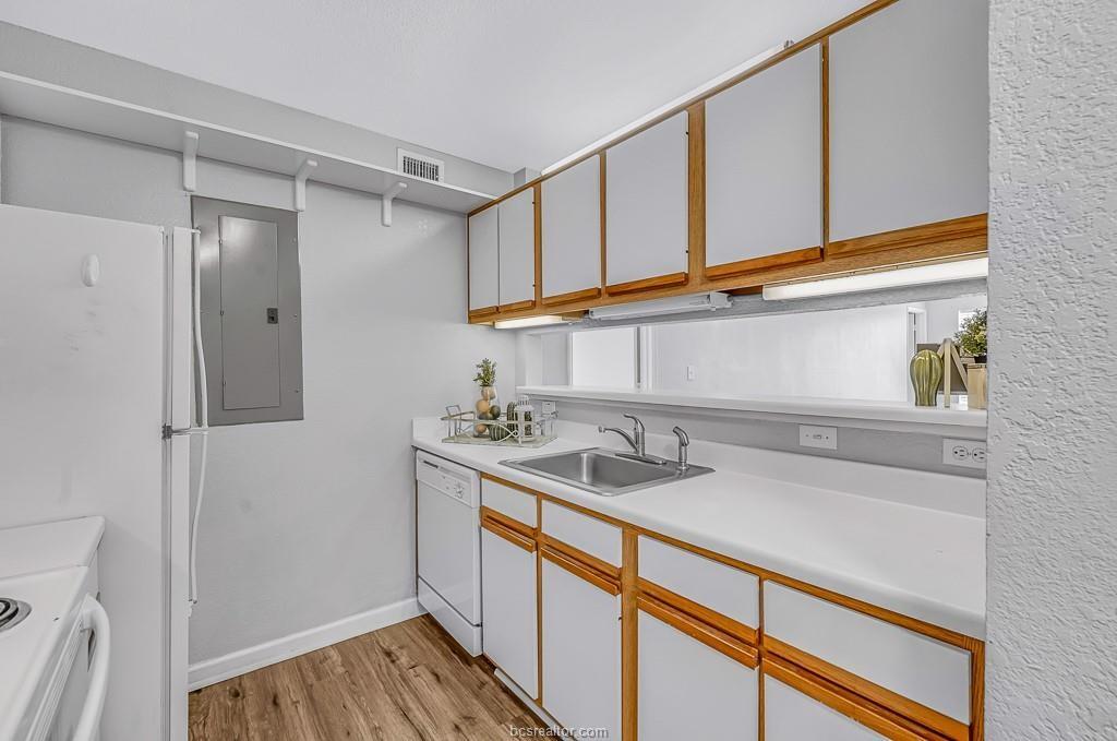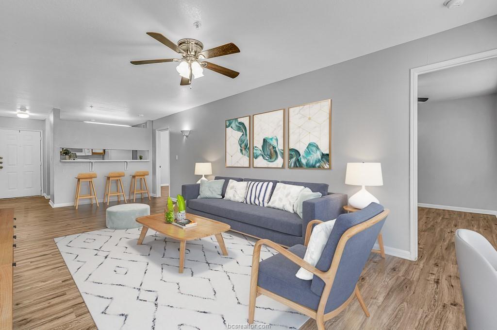 Cute 4 bed 4 bath 3rd floor condo on the A&M Bus Route! The kitchen comes equipped with a refrigerator, electric stove, eating bar and is open to the spacious living room. Each bedroom has its own private updated bathroom and large walk in closets. Updates in the last 4 years include new HVAC, new flooring throughout, new light fixtures, new hardware and paint. HOA covers exterior maintenance, pool maintenance, roof and gutters were replaced in 2022. Condo leased through May 2026 for $1,650 *pictures have been virtually staged*