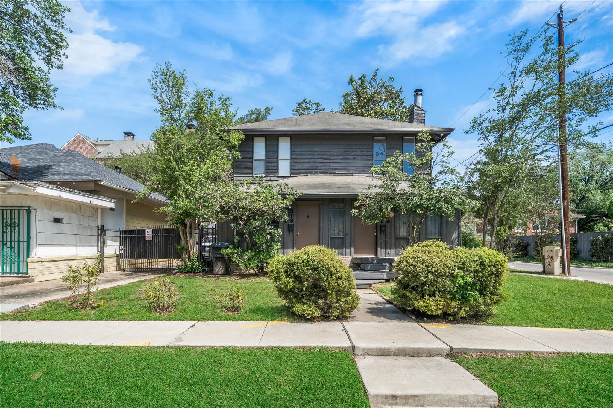 Located in the sought-after Audubon Place Historic District of Montrose, this charming duplex offers a rare opportunity to own an income-producing property in one of Houston’s most walkable and desirable neighborhoods.Minutes from Montrose dining, retail, parks, and nightlife, this is a unique opportunity to own a historic duplex with both character and upside. Each unit features a functional 2-bedroom layout with spacious living areas, abundant natural light, and a mix of hardwood and tile flooring. Kitchens offer ample cabinet storage and pantry space, and both units include full-size washer and dryer. The property also features zoned HVAC, private outdoor space, and off-street parking. The property is currently vacant, providing immediate flexibility for an owner-occupant or investor to set market rents. Previously leased with consistent occupancy, this duplex presents strong income potential in a prime Montrose location.