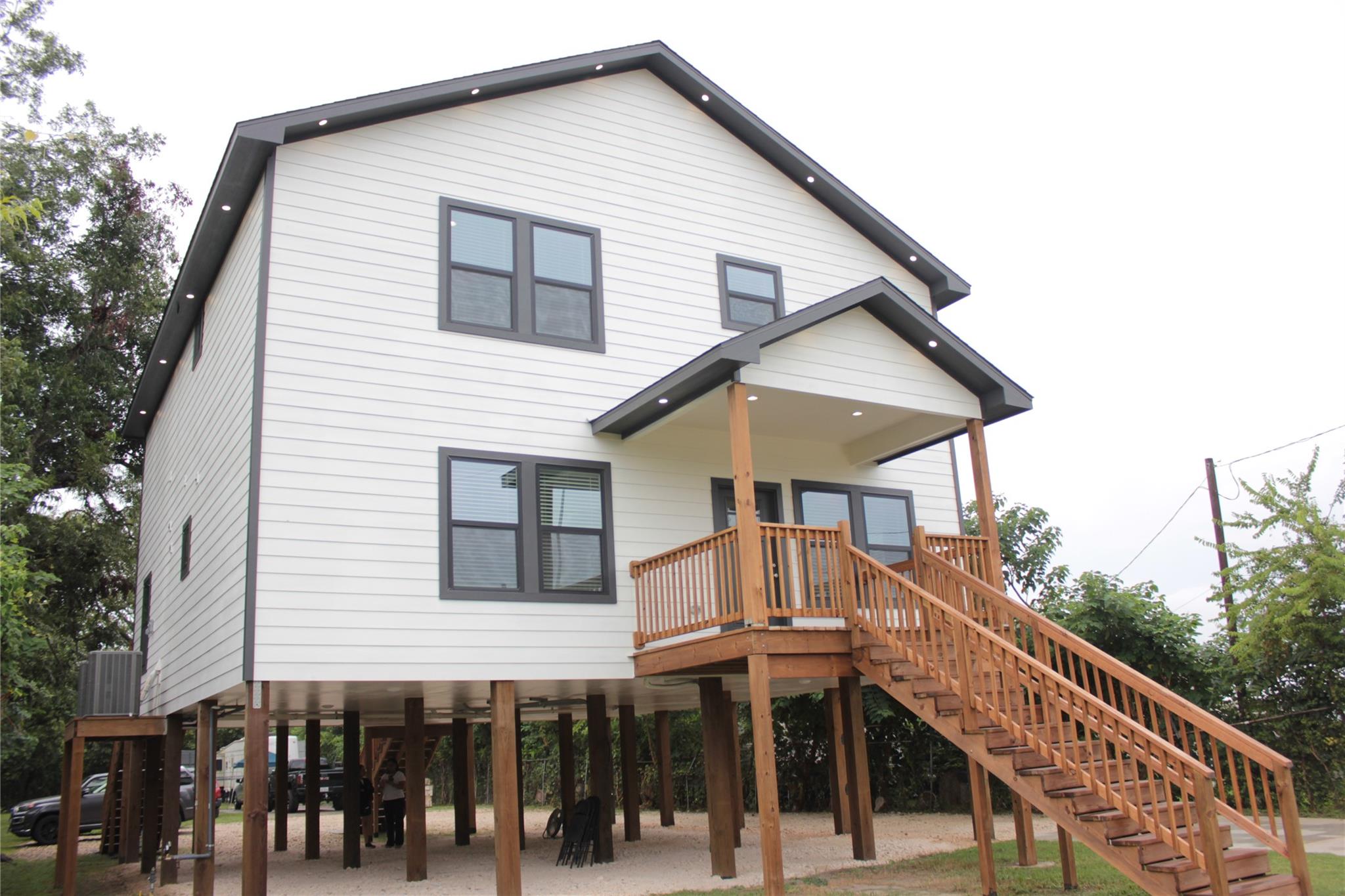 Discover this exceptional duplex, a new construction, located in a prime spot near the expanding LBJ Hospital, at the intersection of Lockwood and I-610. Each of the two split-level units spans an impressive 1,202.5 square feet, featuring a modern open-plan layout and upgraded stainless steel kitchen appliances. The property boasts a generous 15,000 square foot lot, offering ample space for future expansions such as additional rental units, a pool, or a guest house to enhance your investment potential. Nestled within the inner loop, this home provides easy freeway access and is less than 10 minutes from downtown, situated in the rapidly developing Near Northeast Houston area. Positioned on a tranquil no-outlet street, it offers a private ambiance within the neighborhood, and is built on an elevated foundation for added peace of mind. Enjoy the added convenience of being within walking distance to a local park and hiking trails.