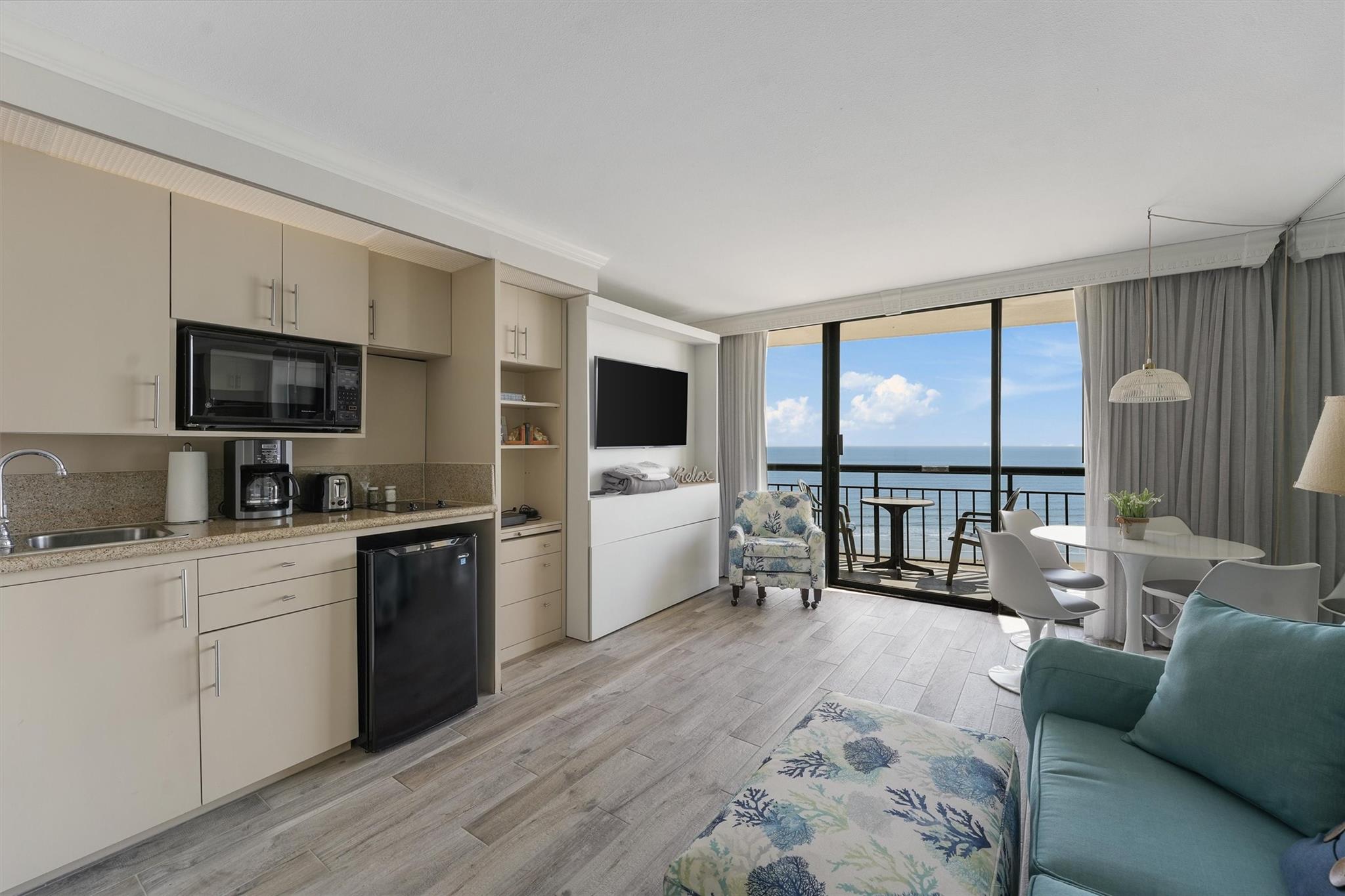 InteriorPets:NoFloors:TileCountertop:GraniteBathroom Description:Primary Bath: Tub/Shower ComboBedroom Desc:En-Suite BathRoom Description:1 Living Area,Kitchen/Dining Combo,Living/Dining ComboHeating:Central Electric,Heat PumpCooling:Central ElectricWasher/Dryer Conn:NoDishwasher:NoDisposal:NoCompactor:NoMicrowave:YesRange:Electric CooktopIce Maker:NoAppliances:RefrigeratorEnergy Feature:Digital Program Thermostat,North/South Exposure,Storm WindowsInterior:Balcony,Central Laundry,Chilled Water System,Elevator,Fire/Smoke Alarm,Fully Sprinklered,Maid Service,Refrigerator Included,Window Coverings