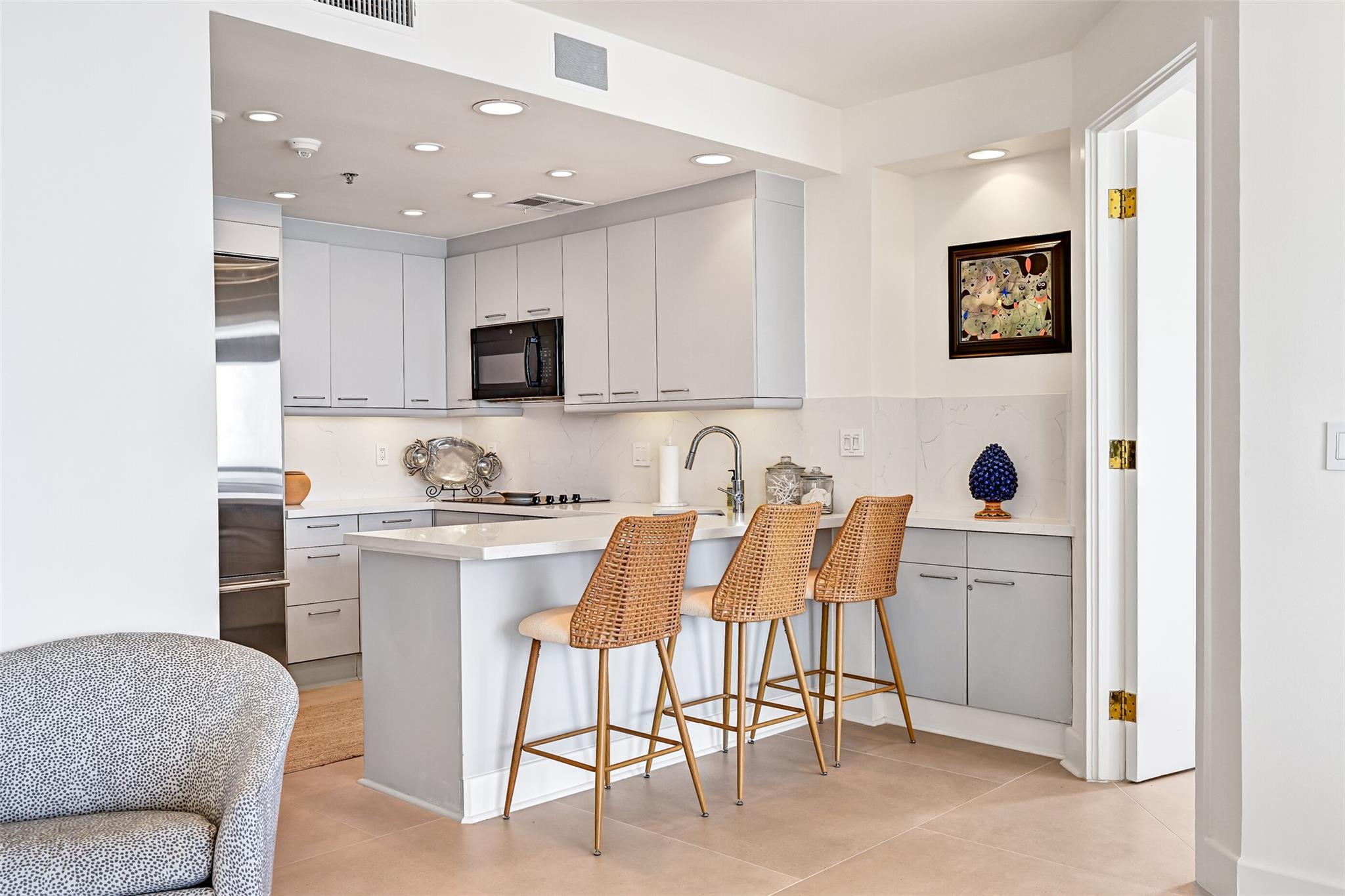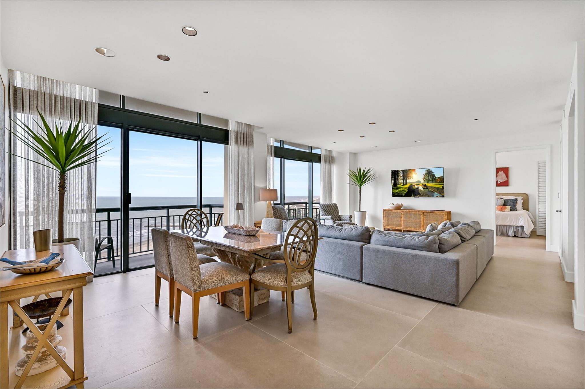 Enjoy luxury coastal living in this beautifully updated 1,888 sq ft penthouse at the prestigious San Luis Condominiums. This refined residence features 2 bedrooms, 2 baths, and a versatile bunk room, all enhanced by high end finishes throughout. Floor to ceiling windows frame sweeping Gulf views, while the open living area and gourmet kitchen create an ideal space for relaxing or entertaining. Resort style amenities include concierge service, pools, restaurants, fitness facilities, and beachfront access. A rare opportunity to own a top floor retreat in one of Galveston’s most iconic communities.