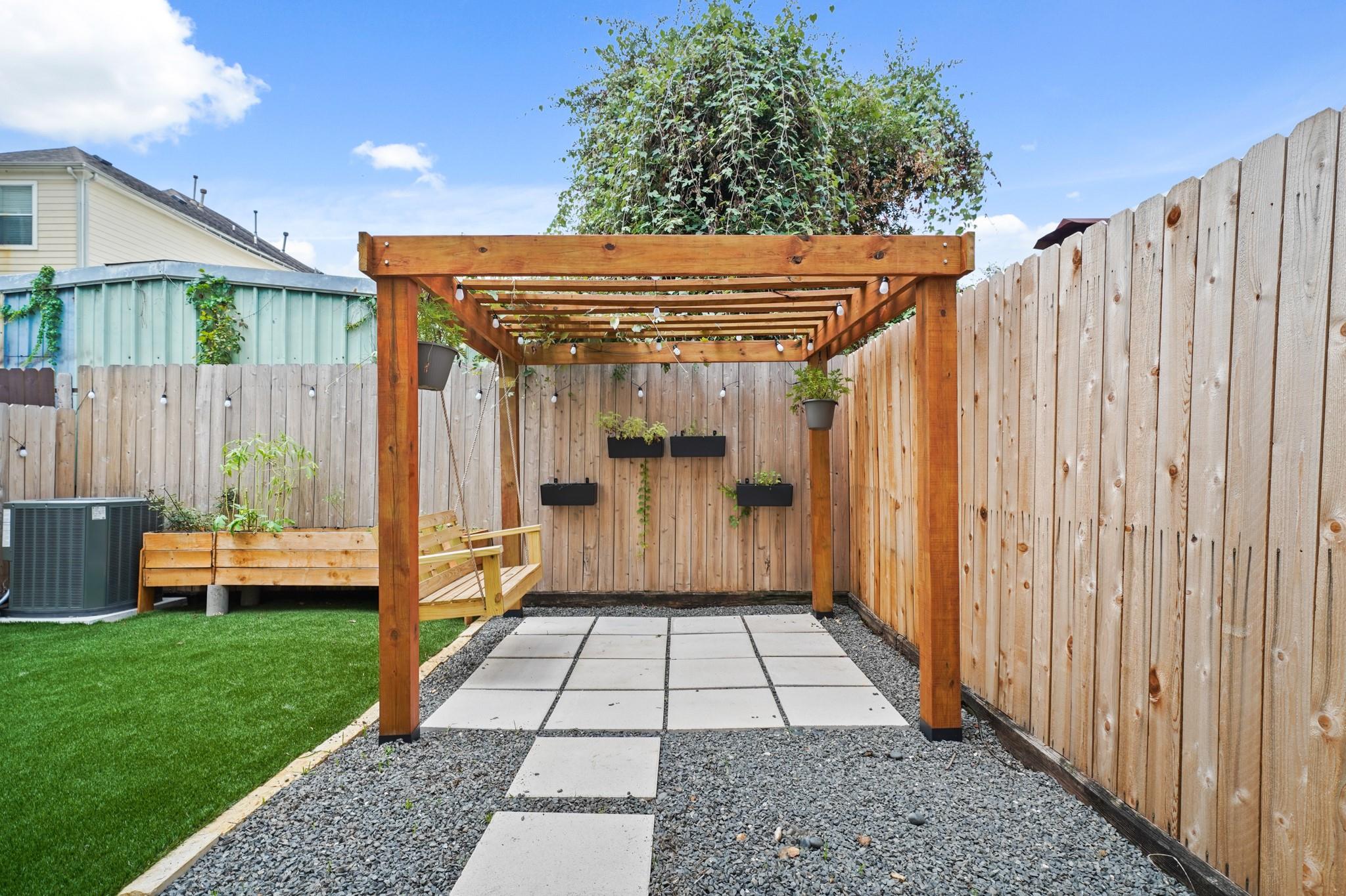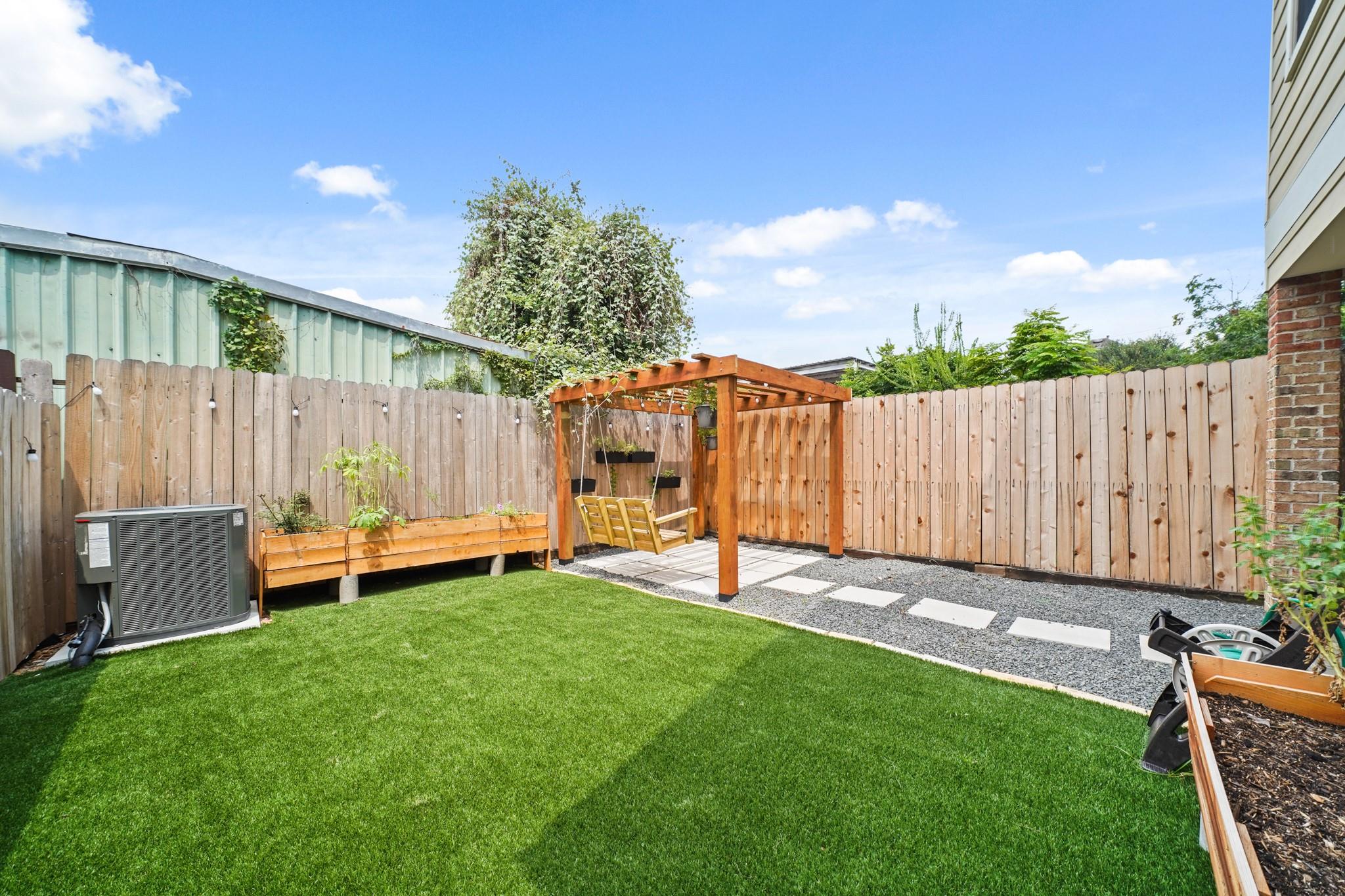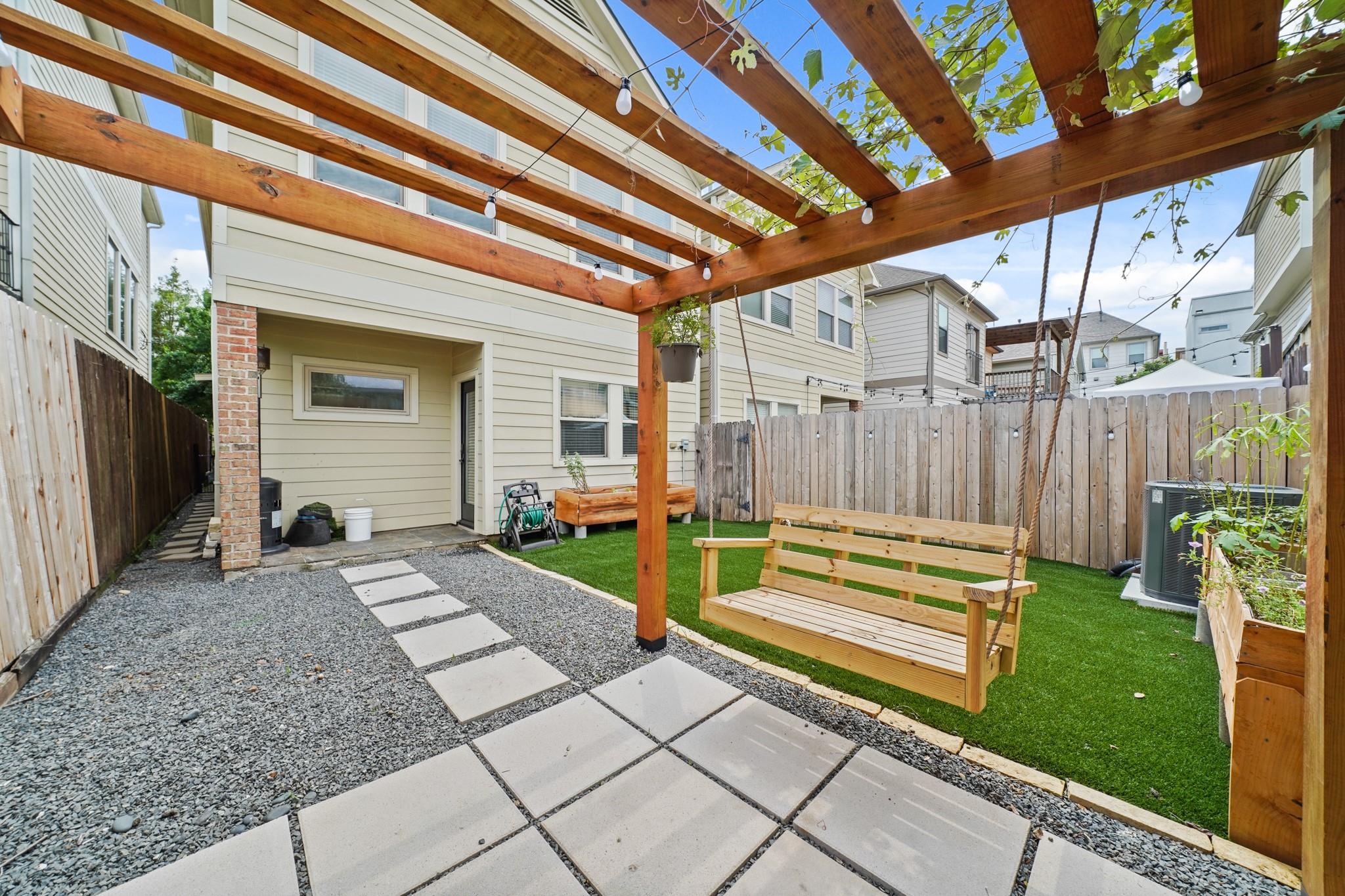 Modern and move-in ready, this updated two-story townhome offers 3 bedrooms and 2 full baths in the desirable Nett Street Addition. The bright open layout features soaring ceilings, striking windows, and a sleek iron staircase that adds a contemporary touch. The kitchen was renovated in 2022–2023 with new appliances, a water filtration system, and a whole-house water softener, seamlessly flowing into the living and dining areas. Enjoy a private backyard with low-maintenance turf, a covered patio, brick accents, and a pergola—perfect for relaxing or entertaining. Recent A/C upgrades provide added comfort and peace of mind. Includes a private driveway and an unbeatable location near Memorial Park, Downtown Houston, the Galleria, and popular Washington Corridor dining and entertainment.