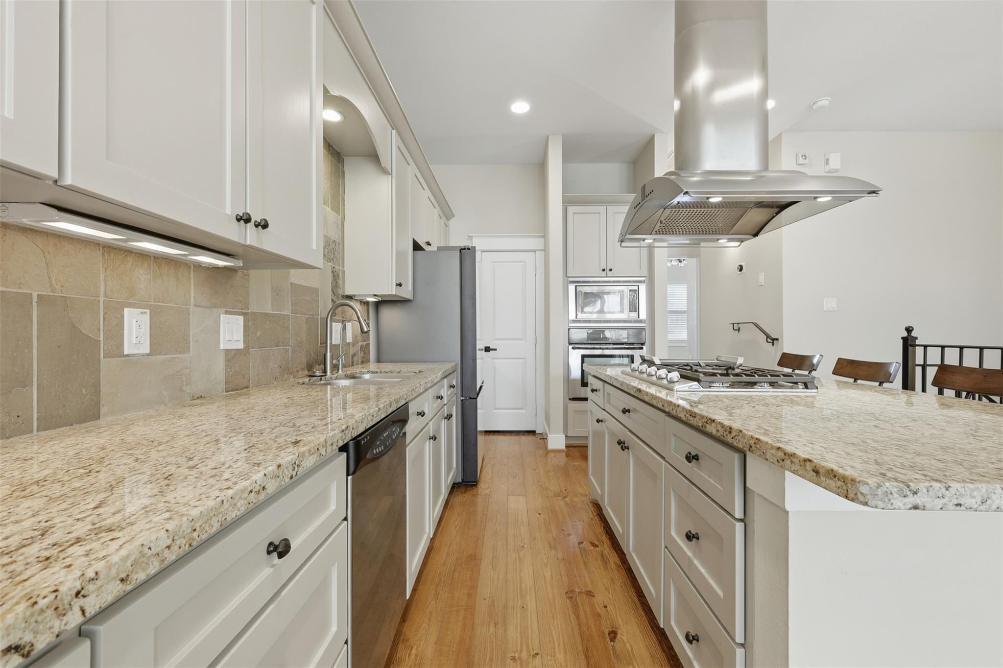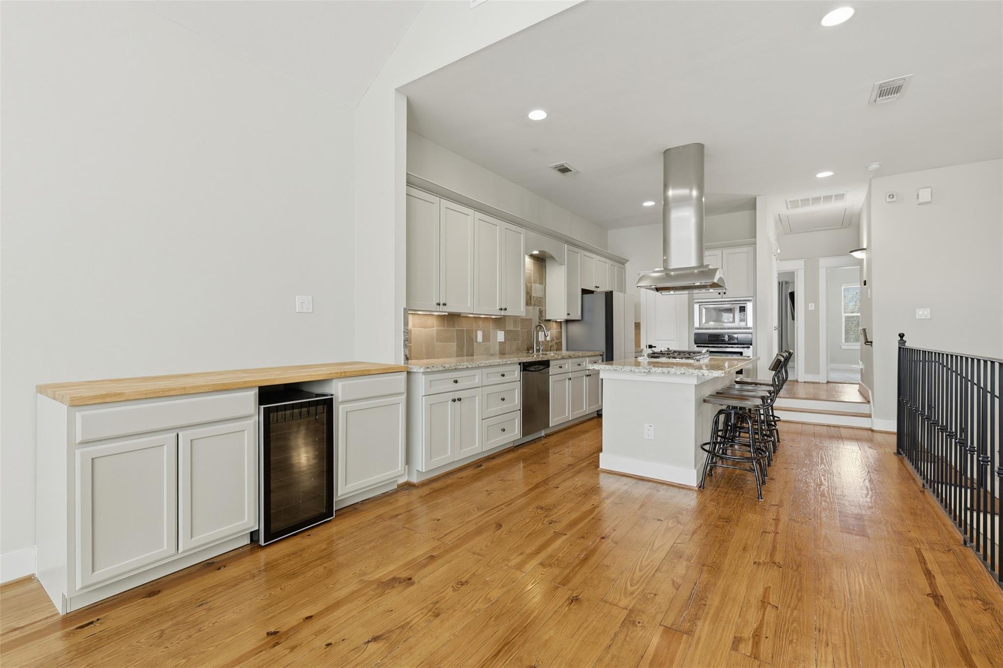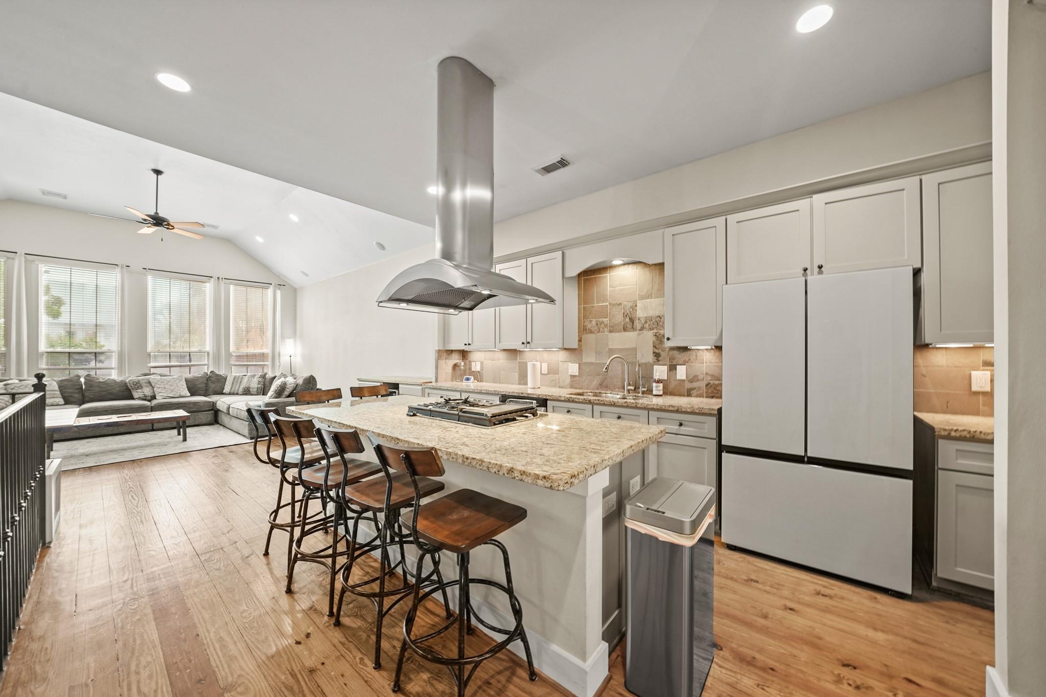 Modern and move-in ready, this updated two-story townhome offers 3 bedrooms and 2 full baths in the desirable Nett Street Addition. The bright open layout features soaring ceilings, striking windows, and a sleek iron staircase that adds a contemporary touch. The kitchen was renovated in 2022–2023 with new appliances, a water filtration system, and a whole-house water softener, seamlessly flowing into the living and dining areas. Enjoy a private backyard with low-maintenance turf, a covered patio, brick accents, and a pergola—perfect for relaxing or entertaining. Recent A/C upgrades provide added comfort and peace of mind. Includes a private driveway and an unbeatable location near Memorial Park, Downtown Houston, the Galleria, and popular Washington Corridor dining and entertainment.