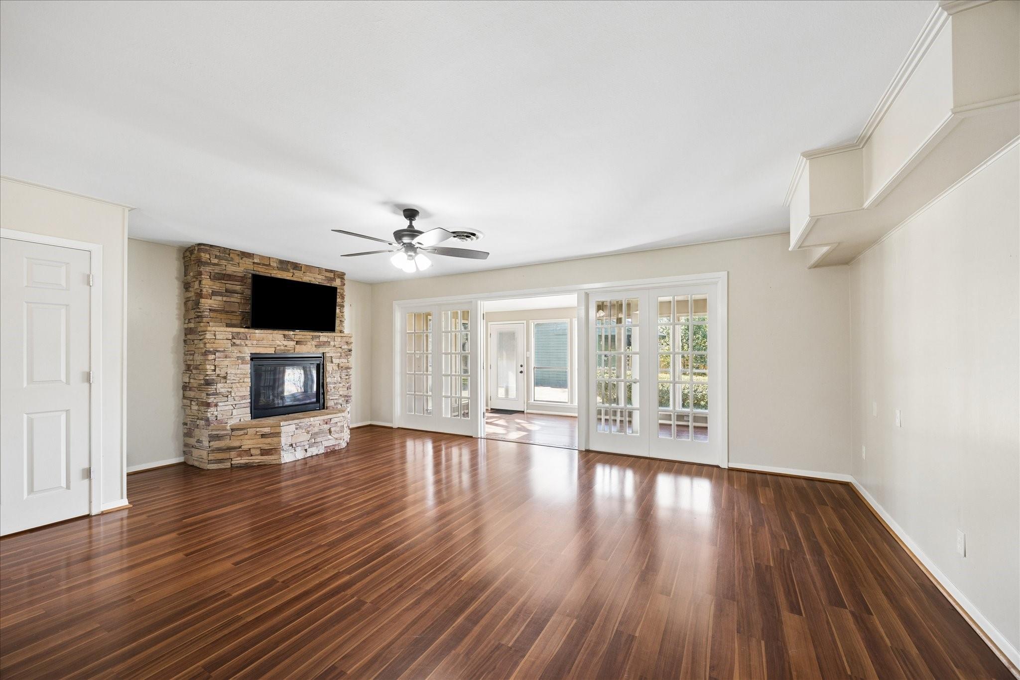 InteriorFireplace:1/Gaslog FireplaceFloors:Engineered Wood,WoodRoom Description:Den,Formal Living,Sun RoomBedroom Desc:All Bedrooms Down,Primary Bed - 1st FloorBathroom Description:Primary Bath: Shower OnlyHeating:Central ElectricCooling:Central ElectricConnections:Electric Dryer Connections,Gas Dryer Connections,Washer ConnectionsMicrowave:NoOven:Electric OvenRange:Electric CooktopDishwasher:YesEnergy Feature:Ceiling FansInterior:Crown Molding,Refrigerator Included,Window Coverings