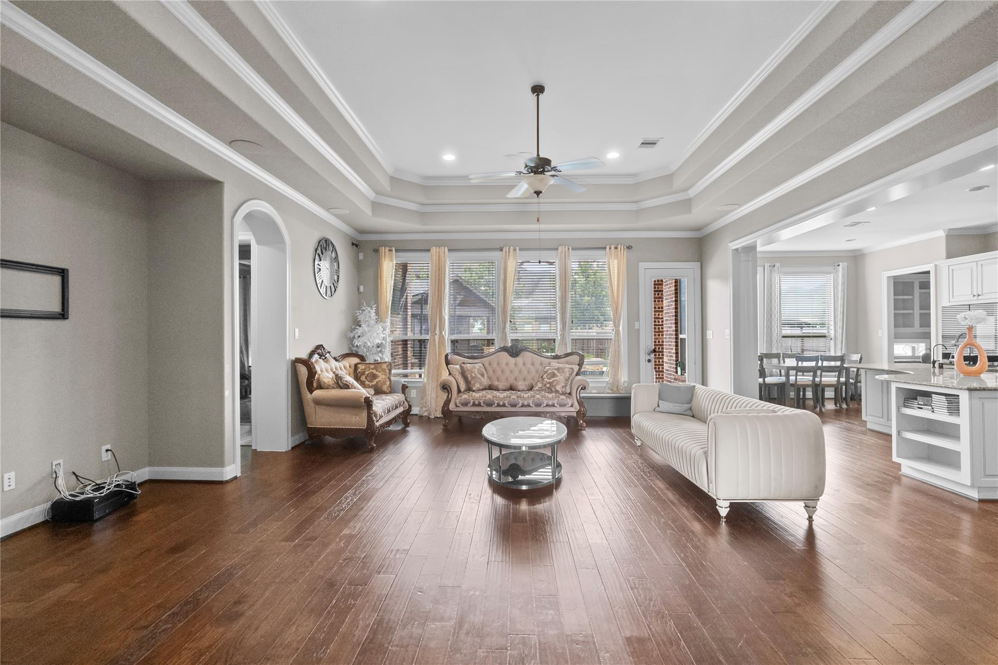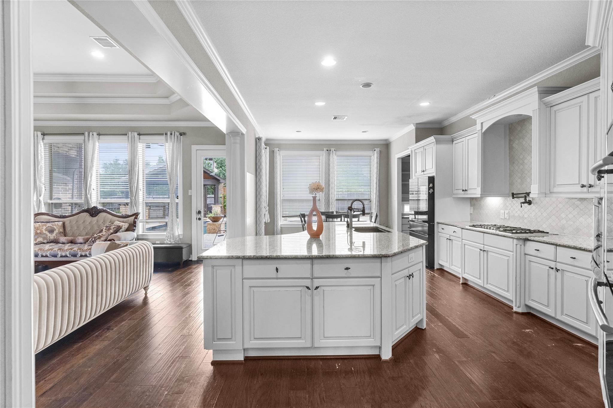 Welcome to a masterpiece nestled in the prestigious Creek Cove at Cross Creek Ranch. This elegant home offers a perfect blend of sophistication, comfort, and modern convenience, situated on a generous 0.28-acre lot in the award-winning master-planned community. Zoned to excellence awarded schools. Step inside to discover a spacious and thoughtfully designed floorplan, ideal for both everyday living and grand entertaining. The heart of the home features a gourmet chef’s kitchen, seamlessly flowing into the bright and airy family room with soaring ceilings and abundant natural light. The luxurious primary suite, located on the first floor, boasts a spa-inspired bathroom with dual vanities, a soaking tub, and a spacious walk-in closet. Outside, the expansive lot offers plenty of space for outdoor activities, emphasized by a breathtaking outdoor retreat w/ heated pool & Spa, gas fire bowls. The attached 3-car tandem garage provides ample storage and convenience.
