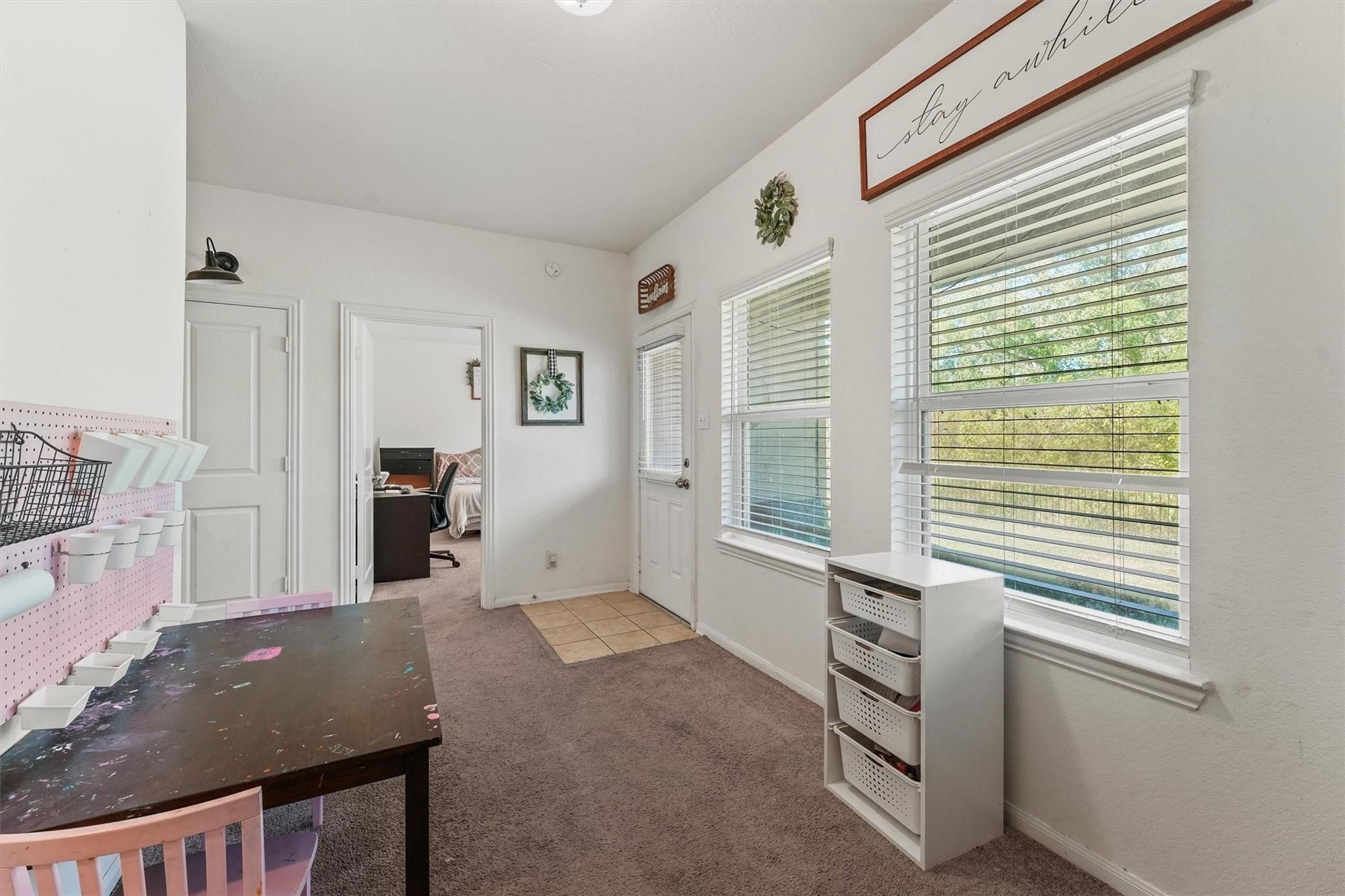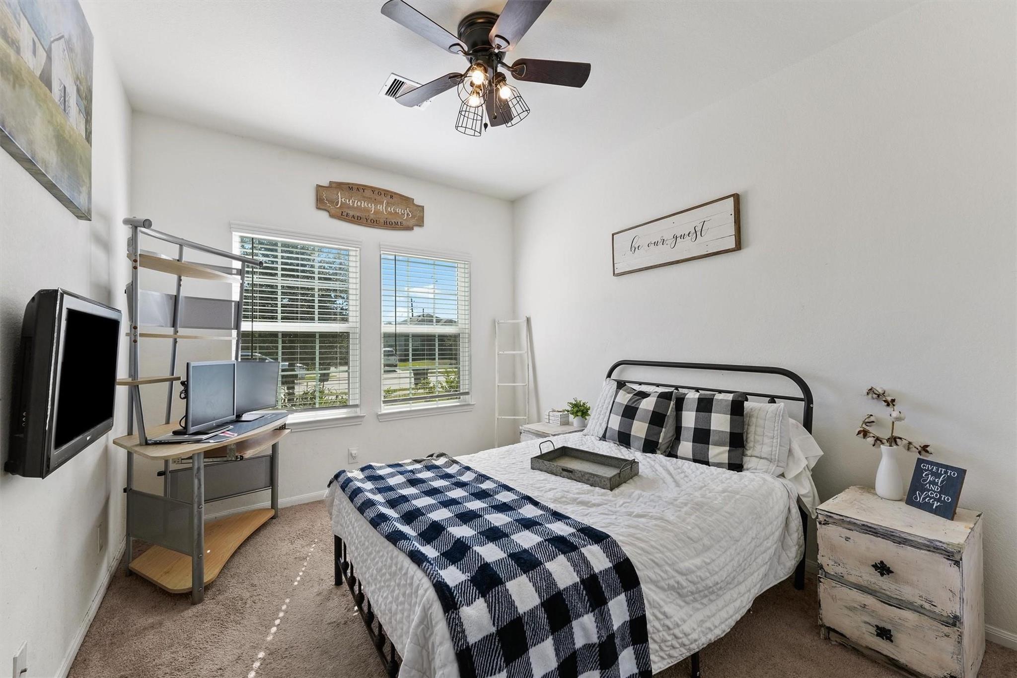 Well-maintained 3-bedroom home built in 2019 featuring an open-concept layout with an extended kitchen bar. Includes a flex room that can be used as an office, playroom, or hobby space. Enjoy the covered patio with no backyard neighbors and a full security system included. Conveniently located minutes from Brazos Town Center and zoned to highly rated Lamar Consolidated ISD.