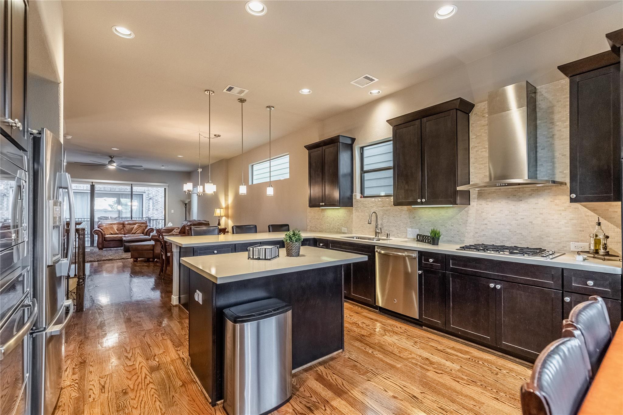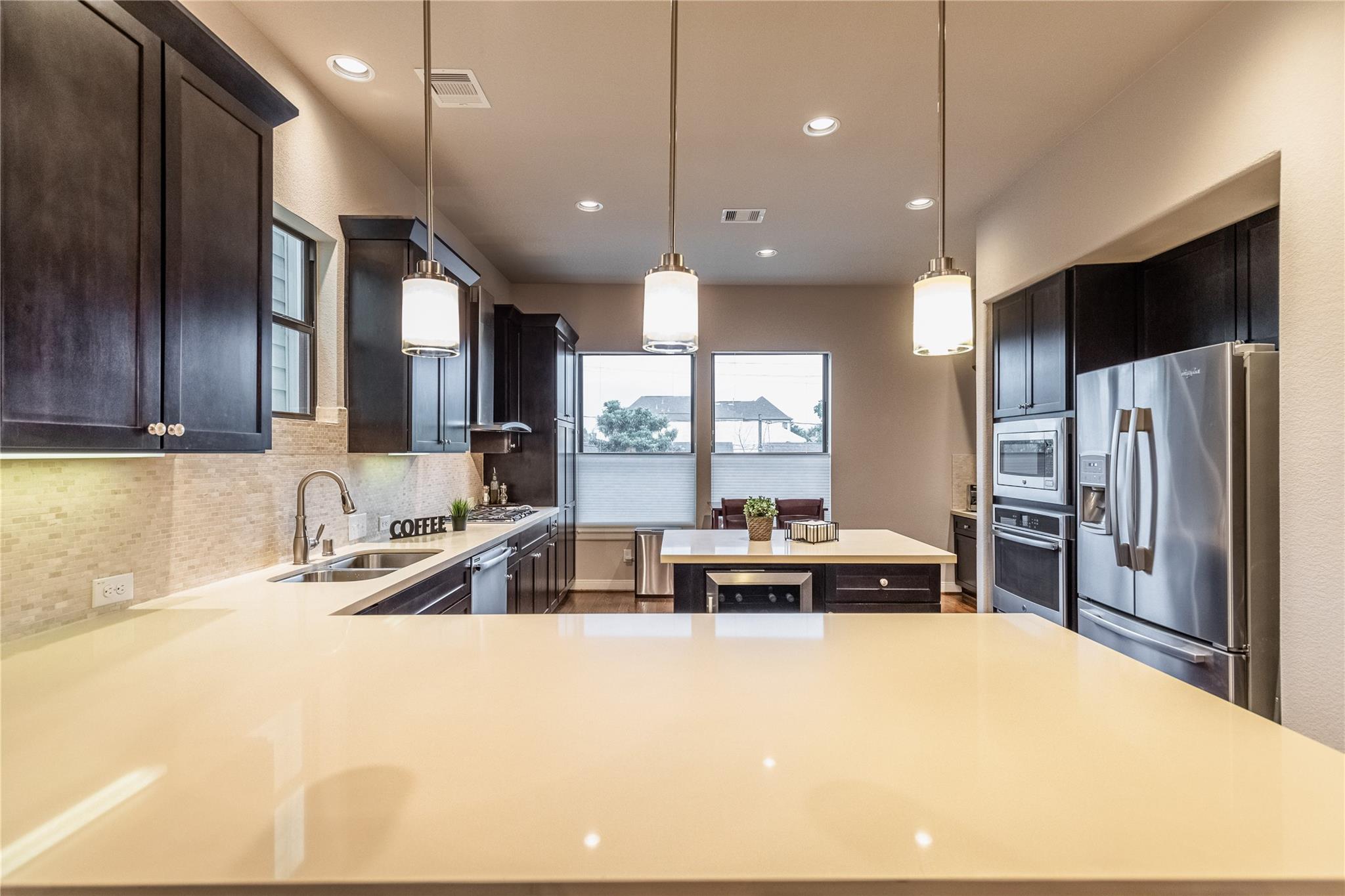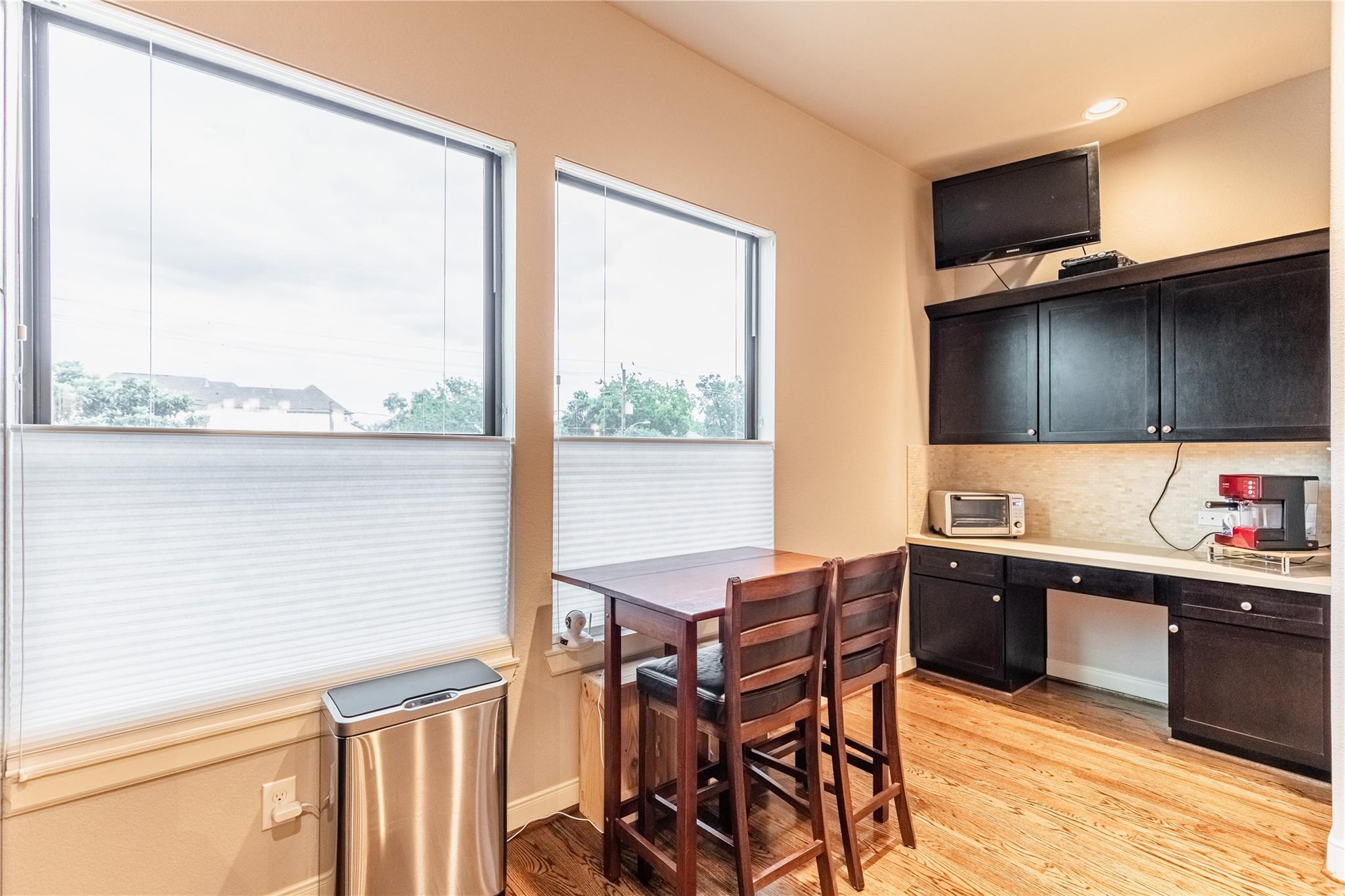 /month3 bedroom/3.5 bath free standing home available for rent with refrigerator, washer, and dryer included. The first level includes a Guest Bedroom with En Suite Bath and access to the gated backyard with paver stones. The second level features the Living and Dining Areas with gleaming hardwood floors, half guest bath, and balcony access. The Kitchen includes quartz countertops, stainless appliances plus wine chiller, center island, and an office/breakfast nook with built-in desk. On the third level is the Primary Bedroom and Primary Bath with marble counters, frameless glass shower, and separate soaking tub. The 3rd Bedroom also includes an En Suite Bath. 2-car attached garage. Street parking available for guests. Minutes away from White Oak Bike Trail, Washington Ave, Downtown, and Memorial Park.
