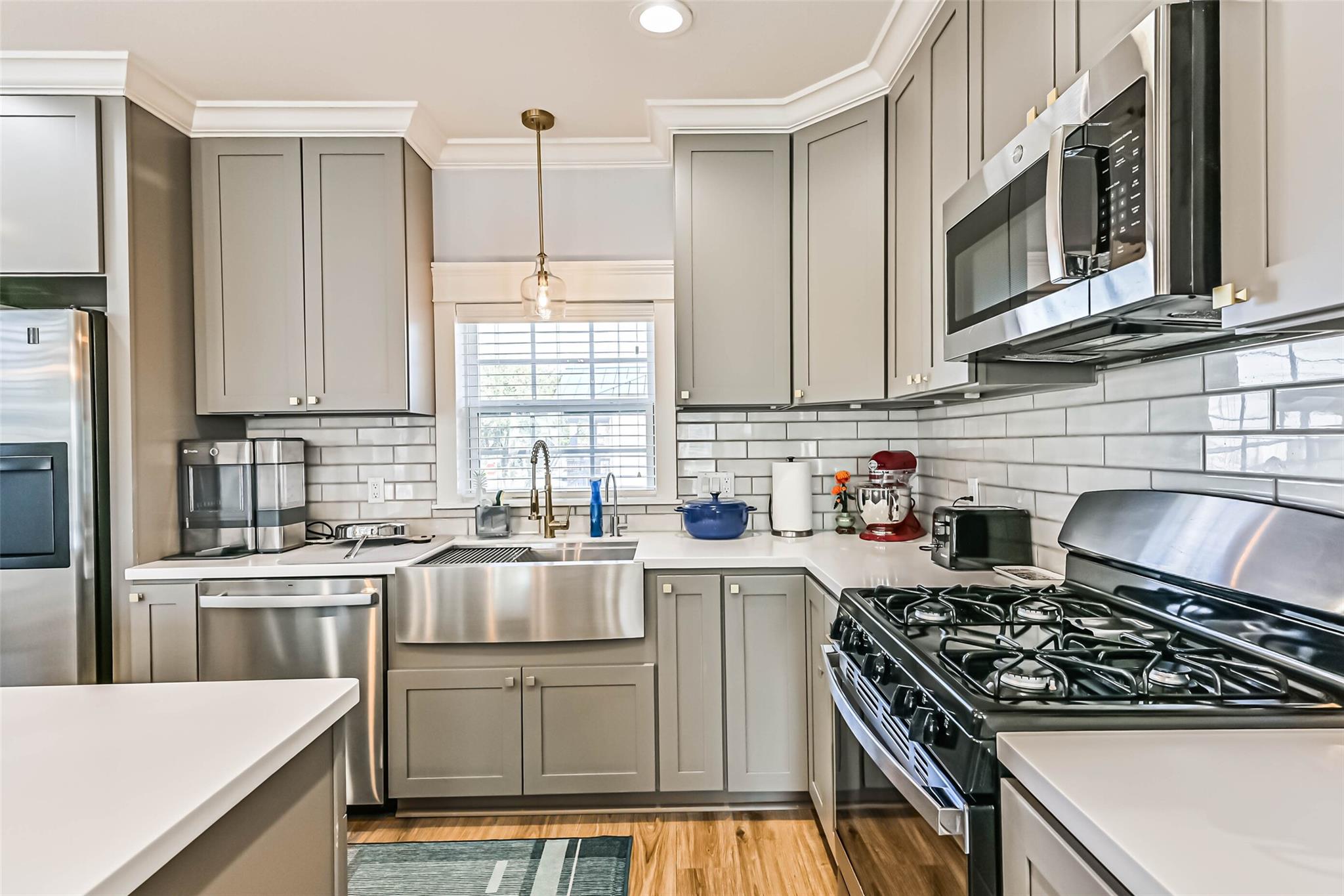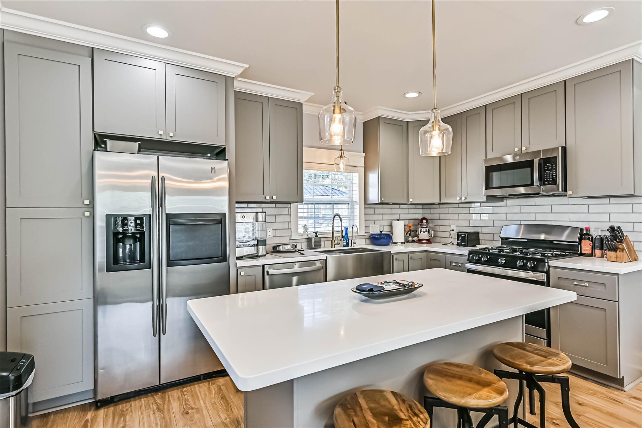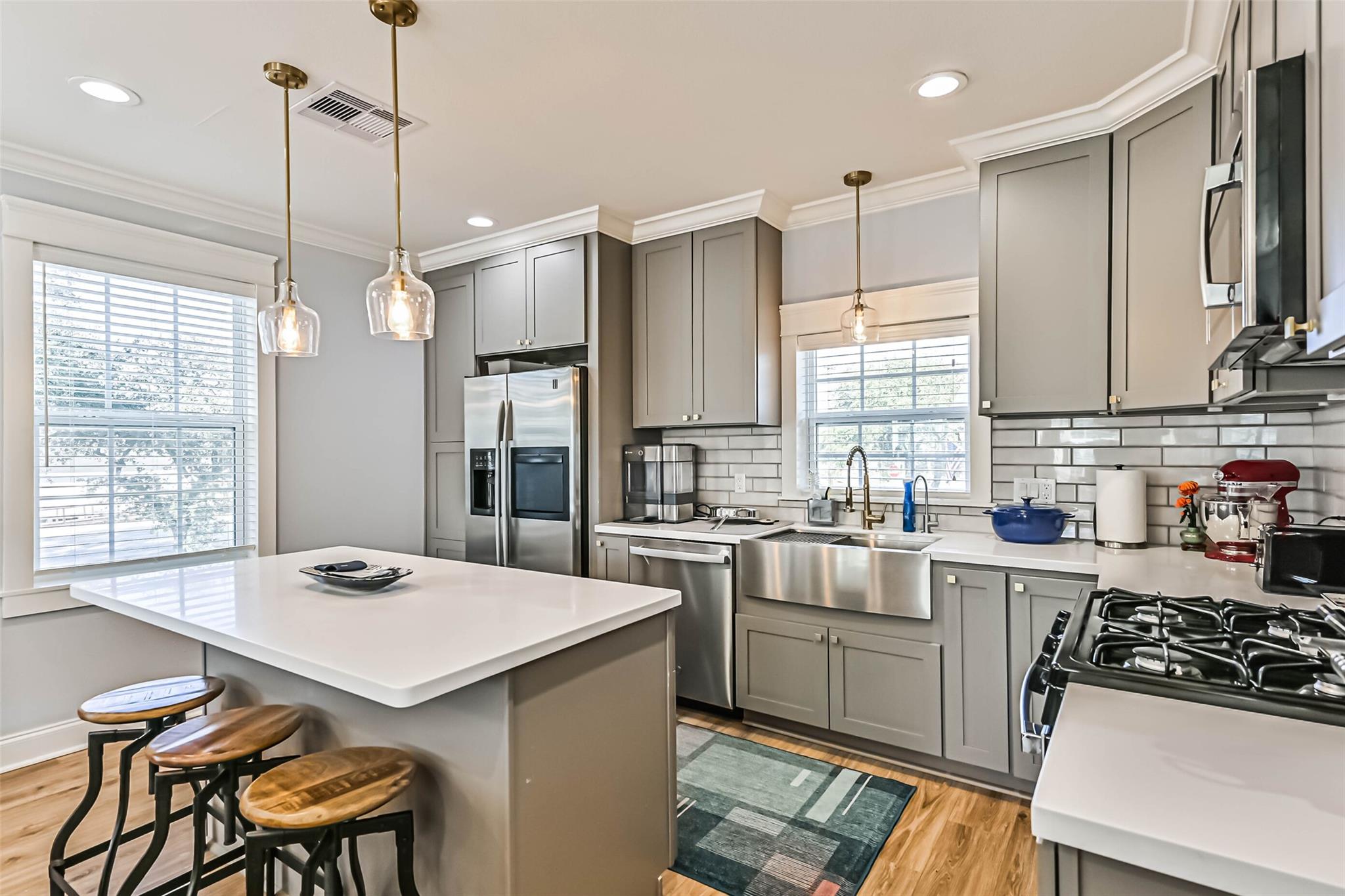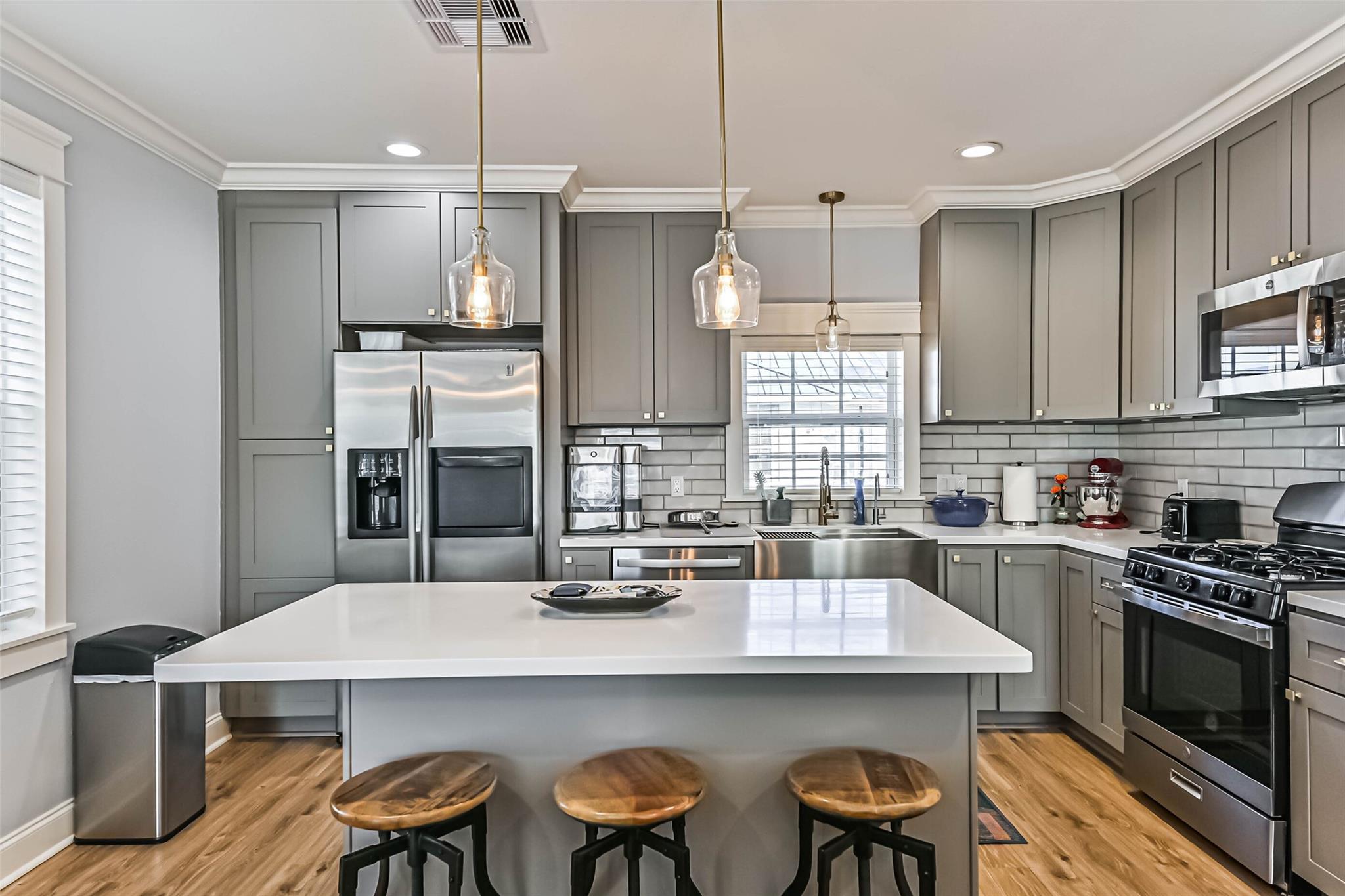 Fully remodeled in 2021, this triplex is a turnkey investment opportunity with strong rental appeal. The front duplex features two 2-bedroom, 2-bath units, each 1,002 sq ft, while the rear detached unit offers 3 bedrooms and 2 baths across 899 sq ft. All units are equipped with stainless-steel appliances, quartz countertops, in-unit washer/dryers, and designer bathrooms — ensuring durability, tenant satisfaction, and reduced maintenance costs. With all units currently occupied, investors benefit from immediate cash flow and long-term appreciation potential.