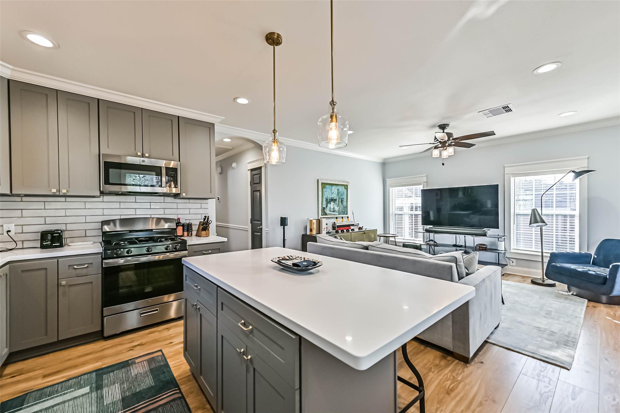 InteriorFloors:Vinyl PlankCountertop:QuartzCooling:Central GasHeating:Central GasMicrowave:YesDisposal:YesDishwasher:YesEnergy Feature:Ceiling Fans