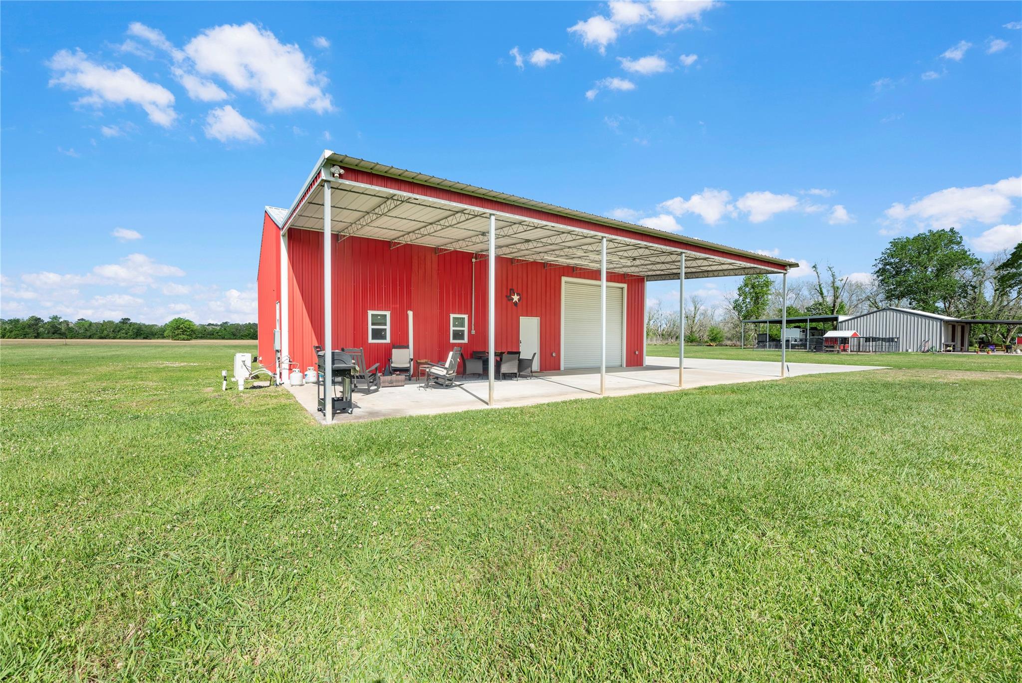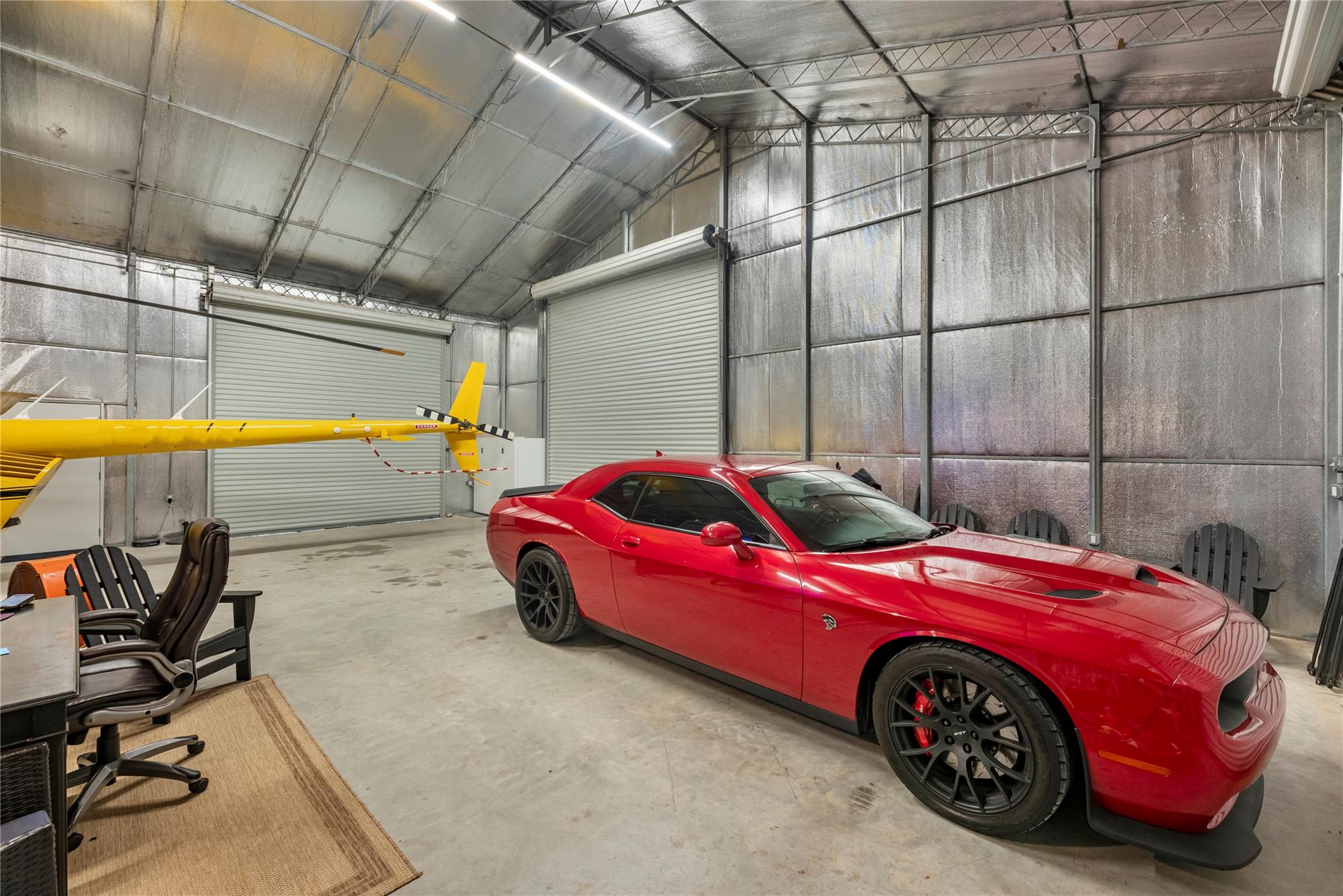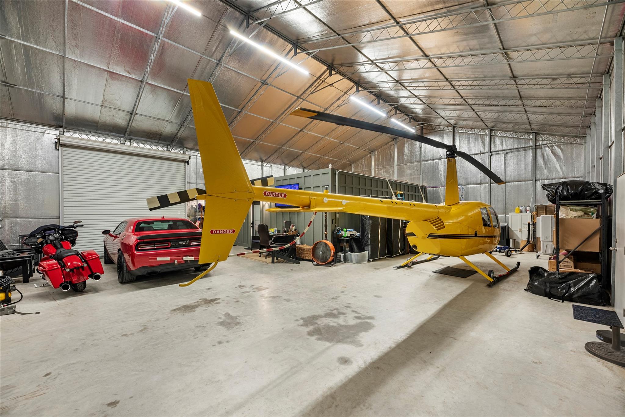 Situated on 5 acres, this rare unrestricted property is deeded for aviation takeoff clearance, featuring a 50x60 hangar with an apartment. The approx.900 sq ft apartment offers one bedroom, 1 bath, a living room, and a mini kitchen, ideal for an aviation training facility. There's potential for a runway installation and has mature trees, including oaks and crepe myrtles, adorn the front. Large patio area for grilling or entertaining. Has Water well and Septic. Natural gas connections, washer/dryer hookups, and a low tax rate with AG exemption add to the appeal. RV Hook up. Just minutes from Lake Houston, this property is a unique opportunity for aviation enthusiasts or a start to a great Country estate or weekend getaway for family outings.