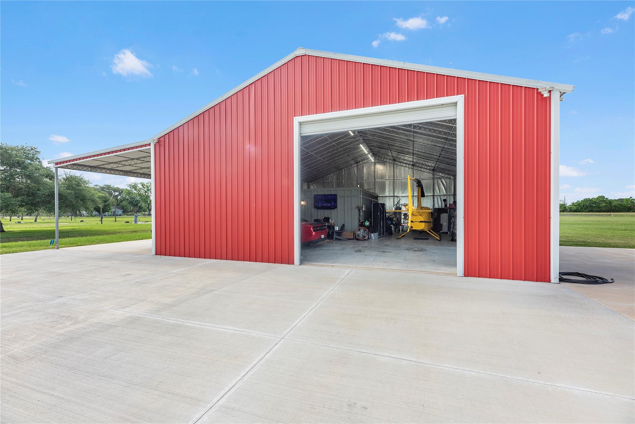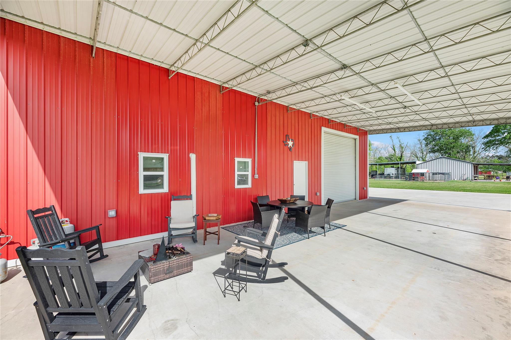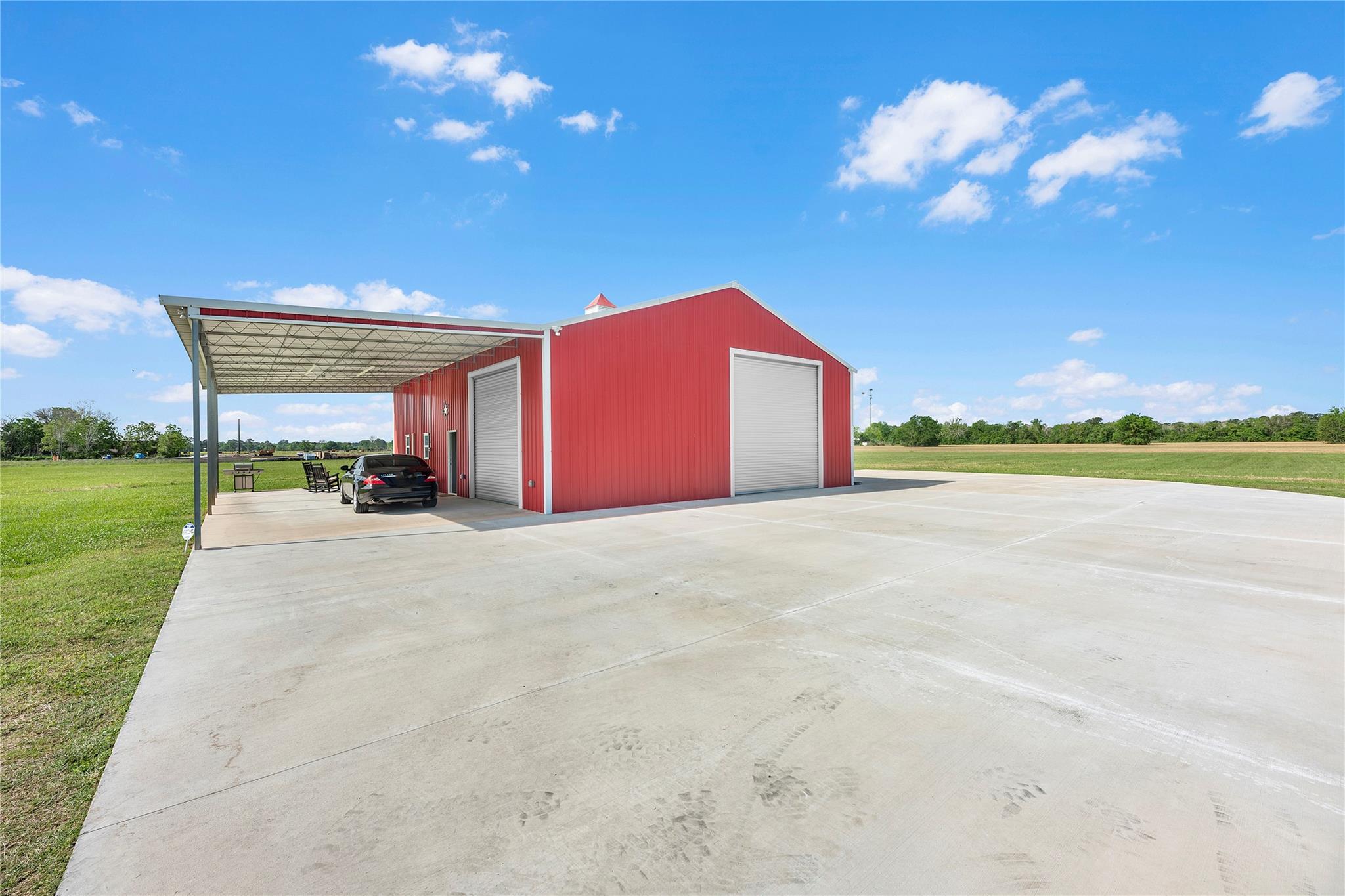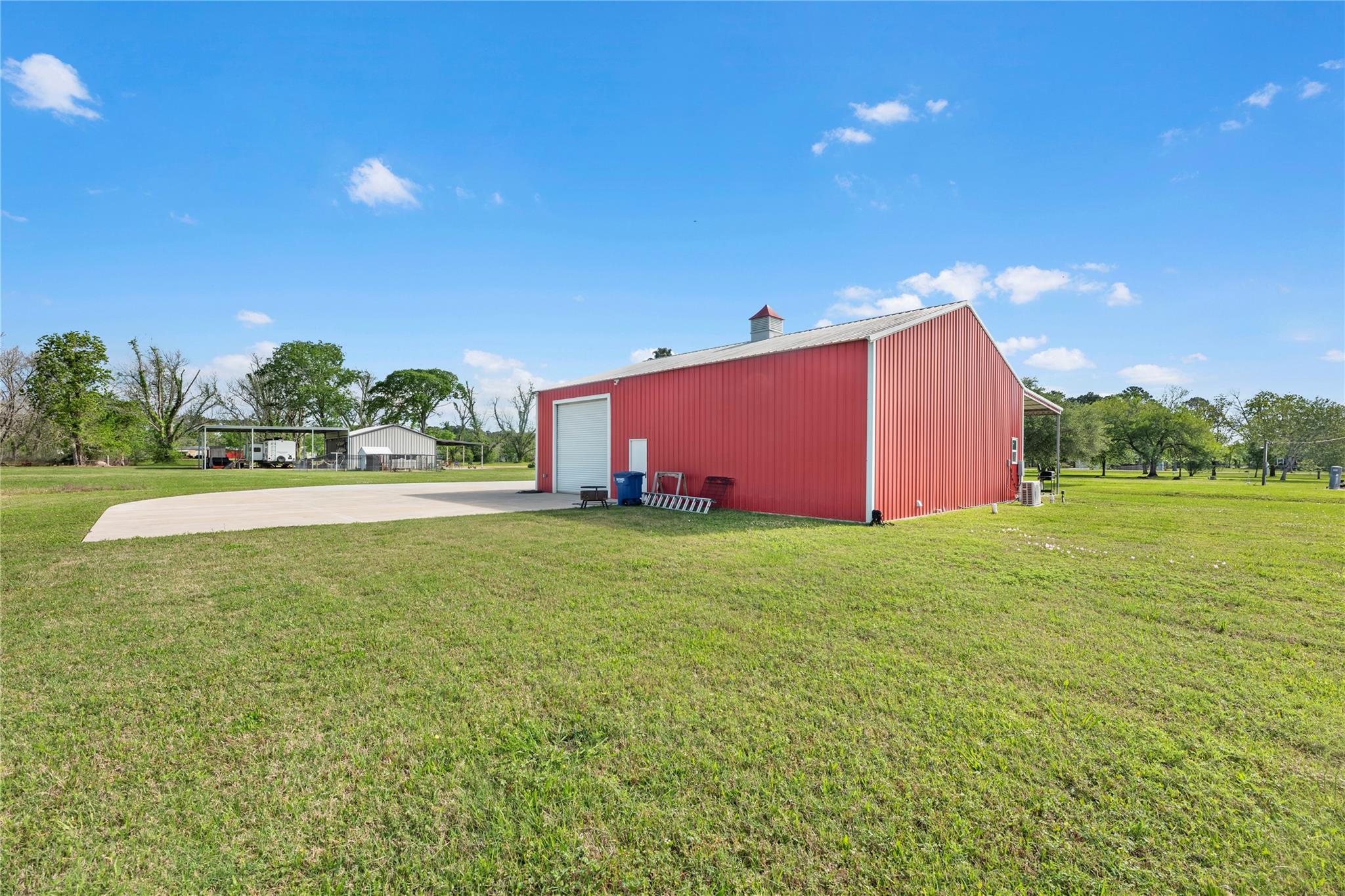 Situated on 5 acres, this rare unrestricted property is deeded for aviation takeoff clearance, featuring a 50x60 hangar with an apartment. The approx.900 sq ft apartment offers one bedroom, 1 bath, a living room, and a mini kitchen, ideal for an aviation training facility. There's potential for a runway installation and has mature trees, including oaks and crepe myrtles, adorn the front. Large patio area for grilling or entertaining. Has Water well and Septic. Natural gas connections, washer/dryer hookups, and a low tax rate with AG exemption add to the appeal. RV Hook up. Just minutes from Lake Houston, this property is a unique opportunity for aviation enthusiasts or a start to a great Country estate or weekend getaway for family outings.