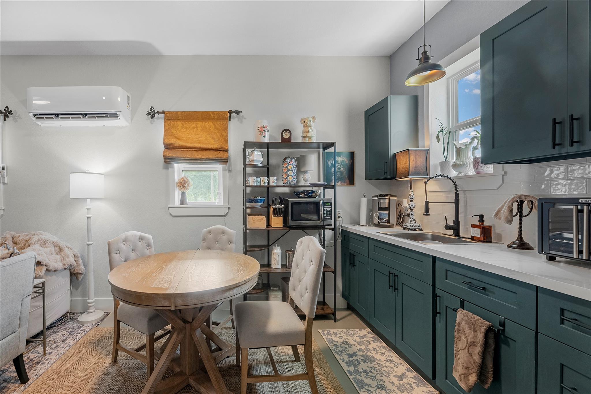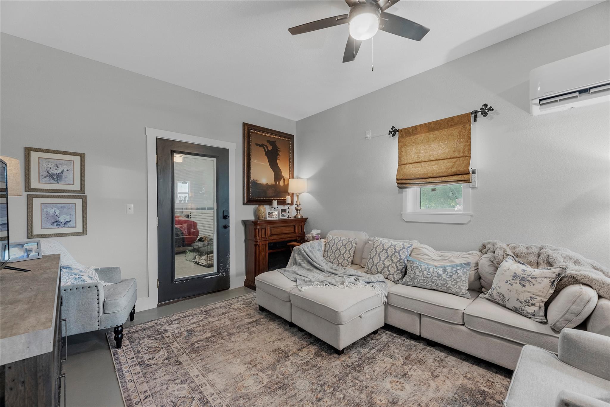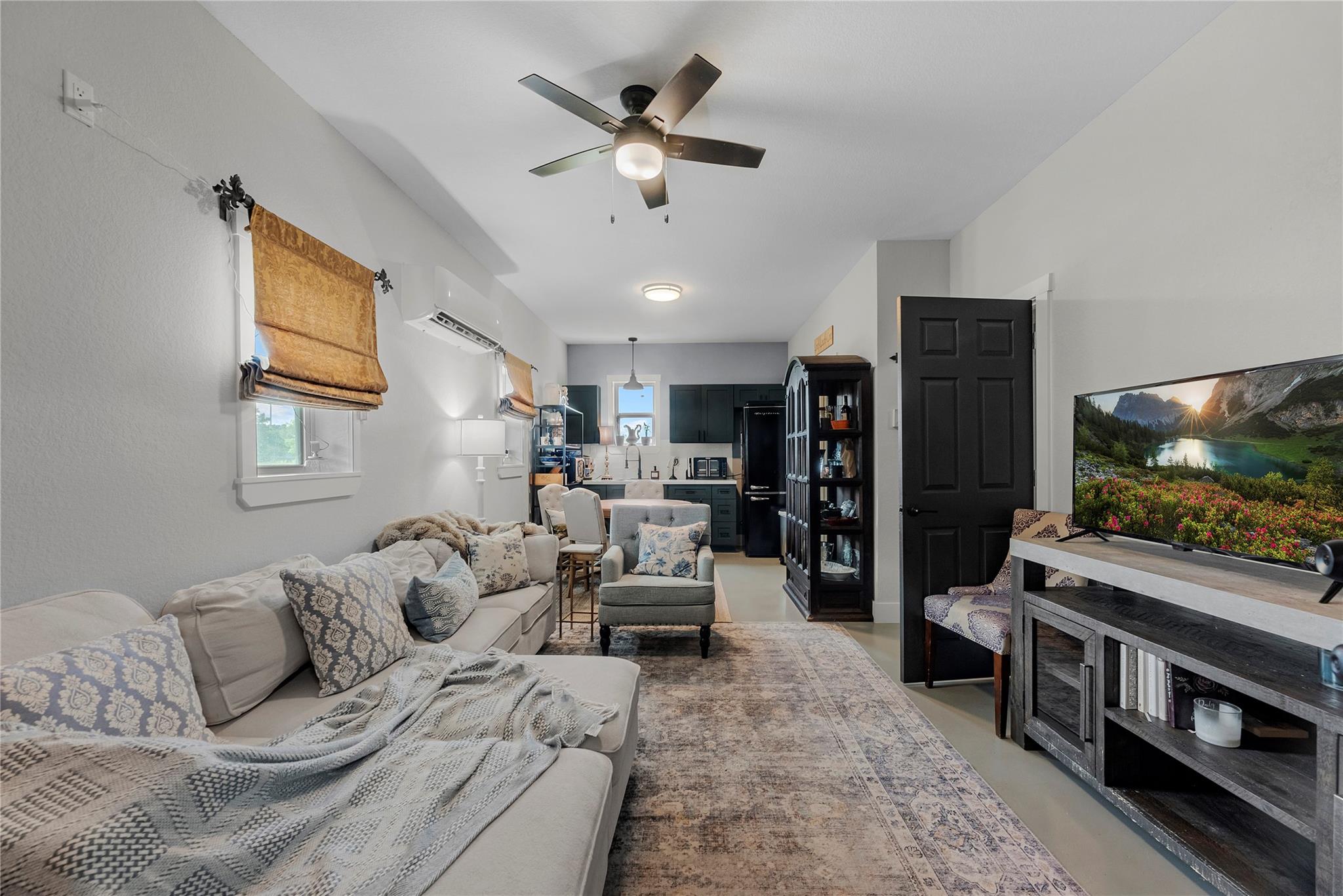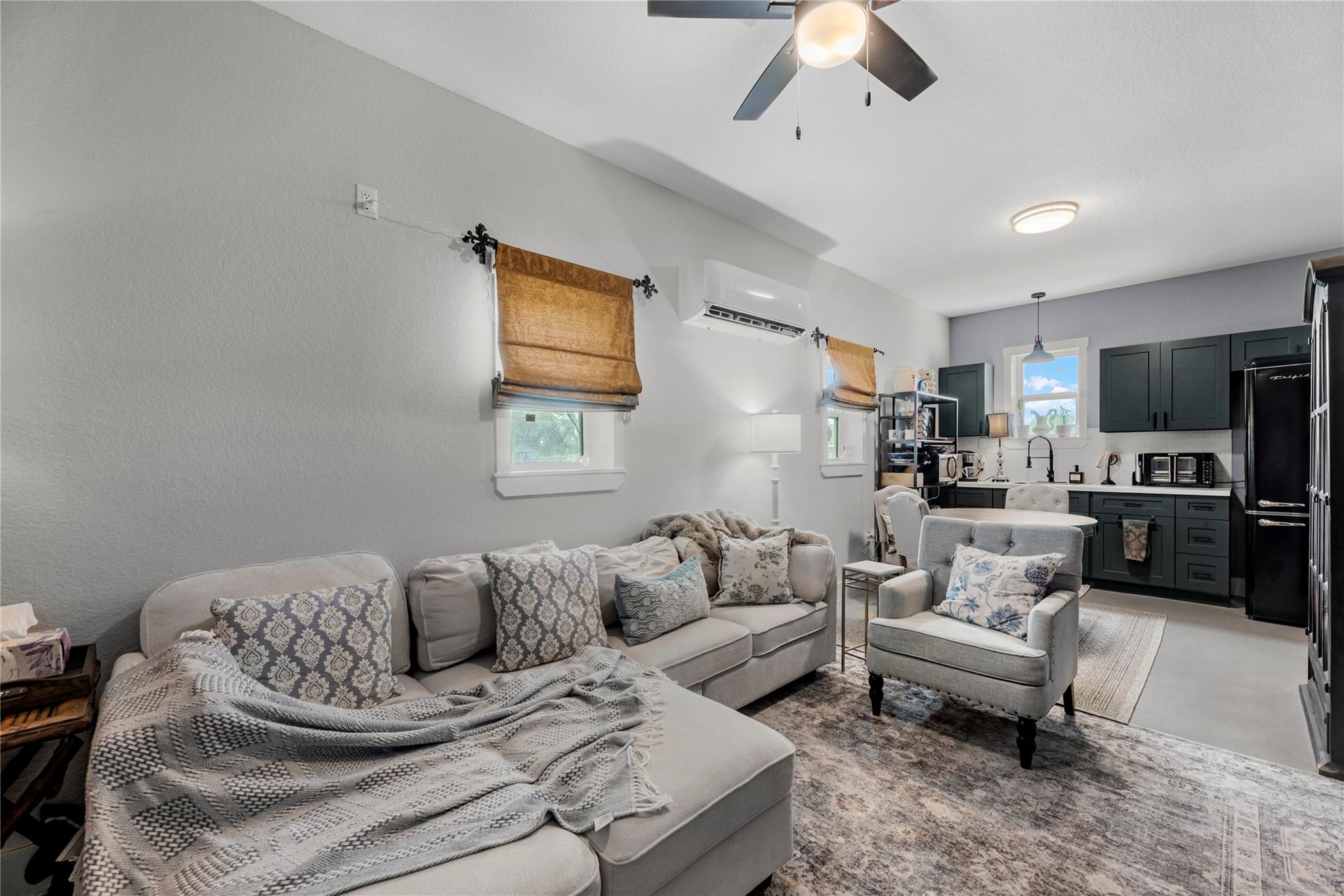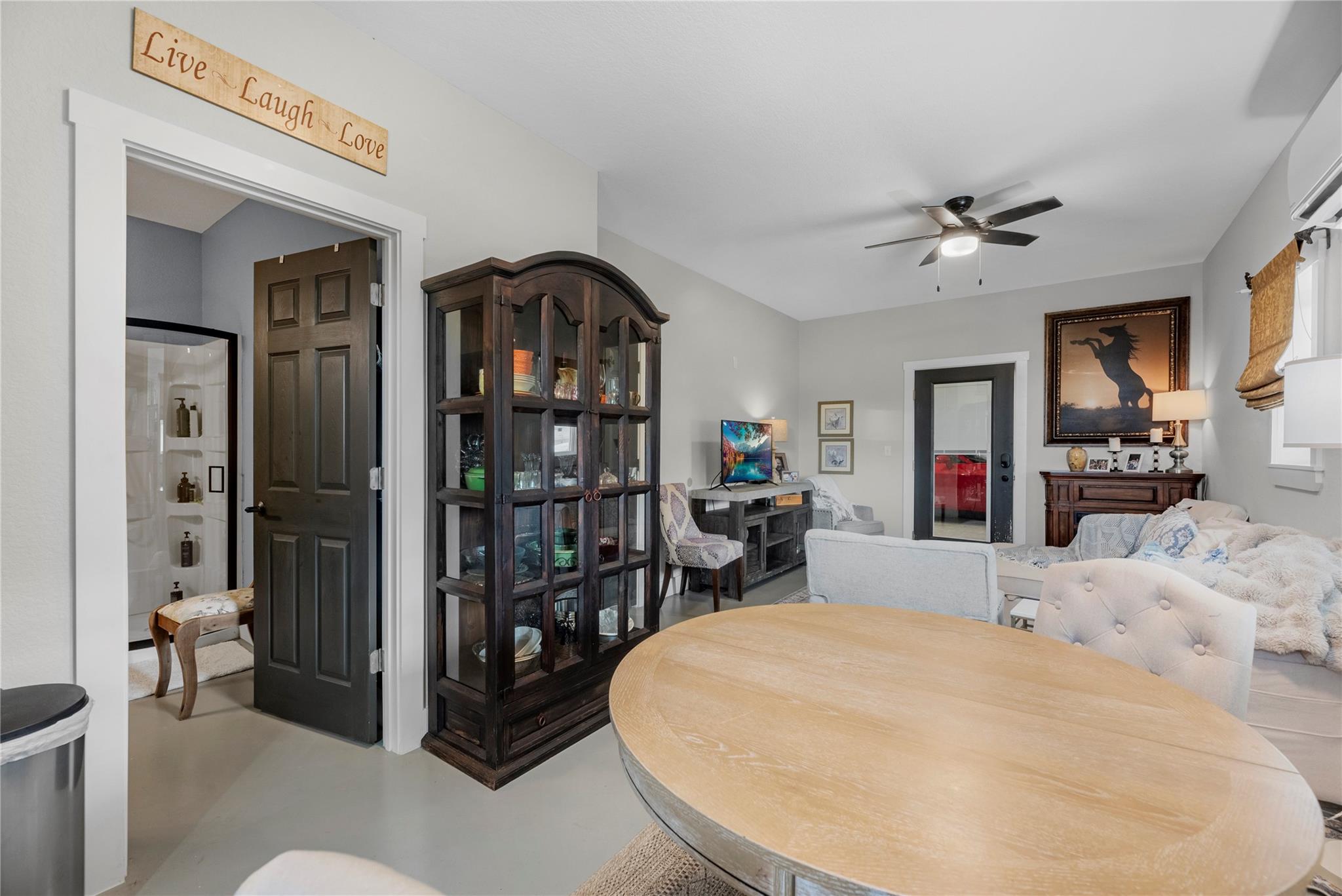 InteriorFloors:ConcreteRoom Description:1 Living Area,Kitchen/Dining ComboBedroom Desc:All Bedrooms Down,Primary Bed - 1st FloorBathroom Description:Primary Bath: Shower OnlyHeating:Central ElectricCooling:Central ElectricConnections:Electric Dryer Connections,Gas Dryer Connections,Washer ConnectionsMicrowave:NoDisposal:NoDishwasher:NoInterior:High Ceiling,Vaulted Ceiling
