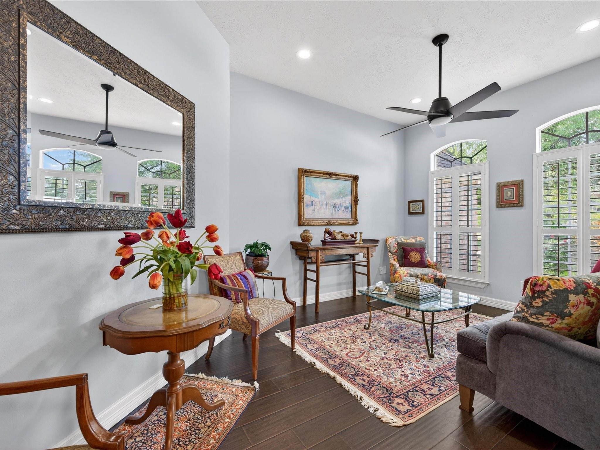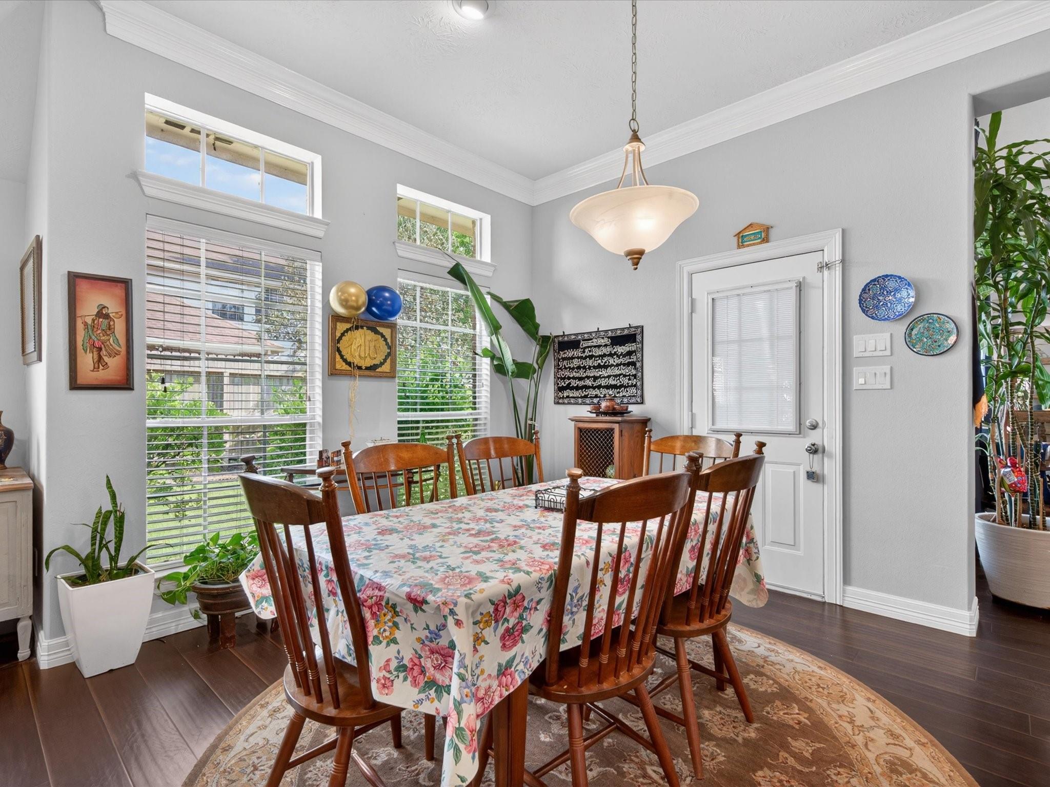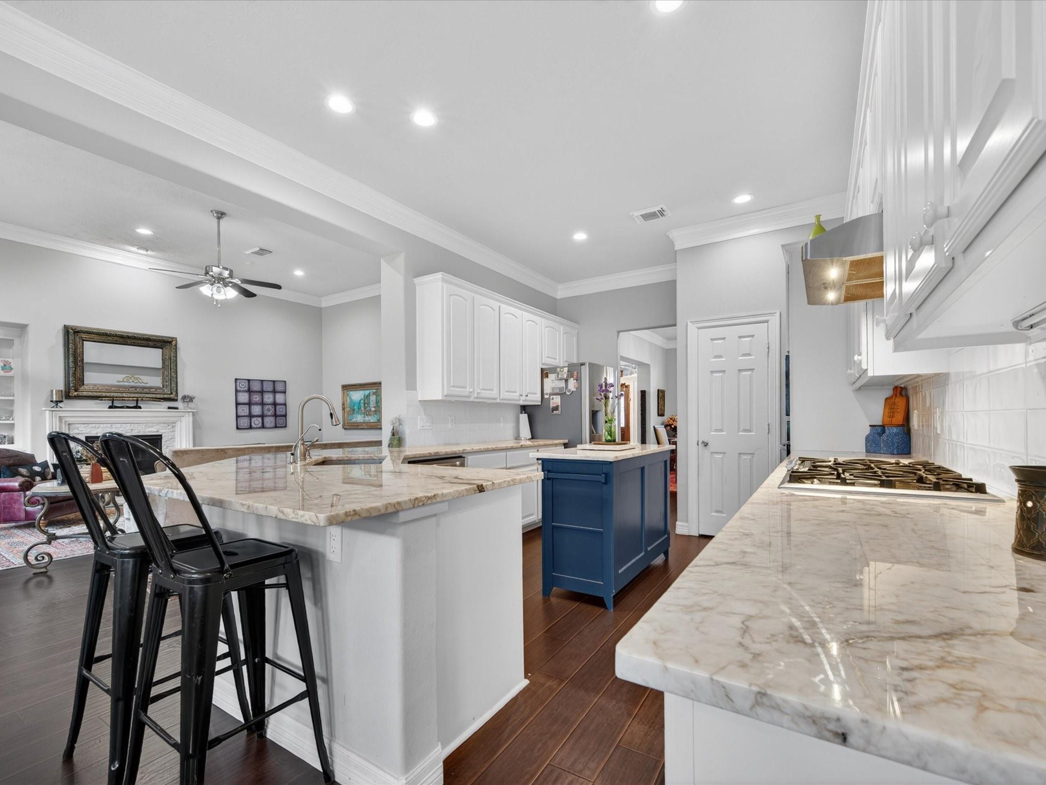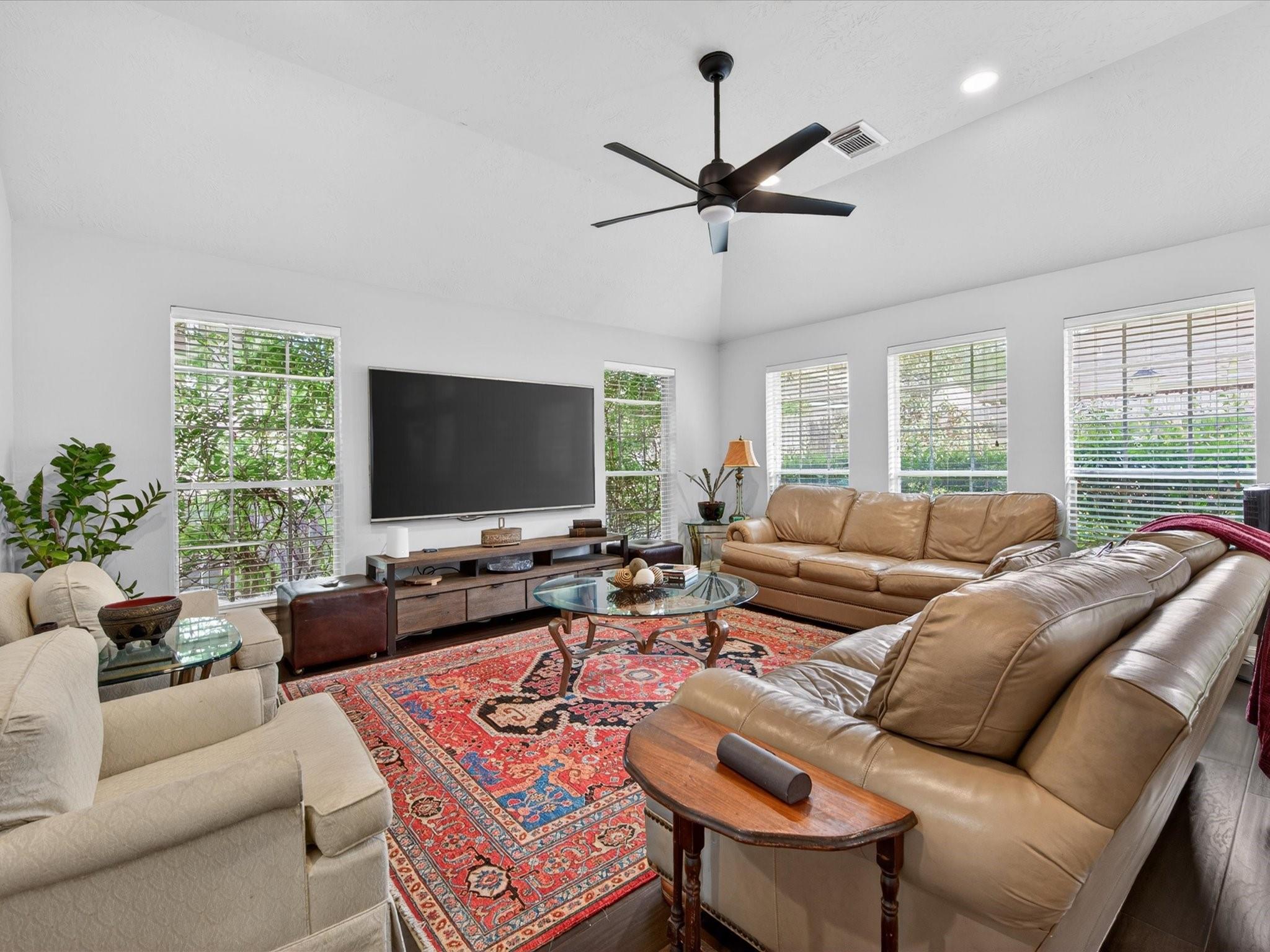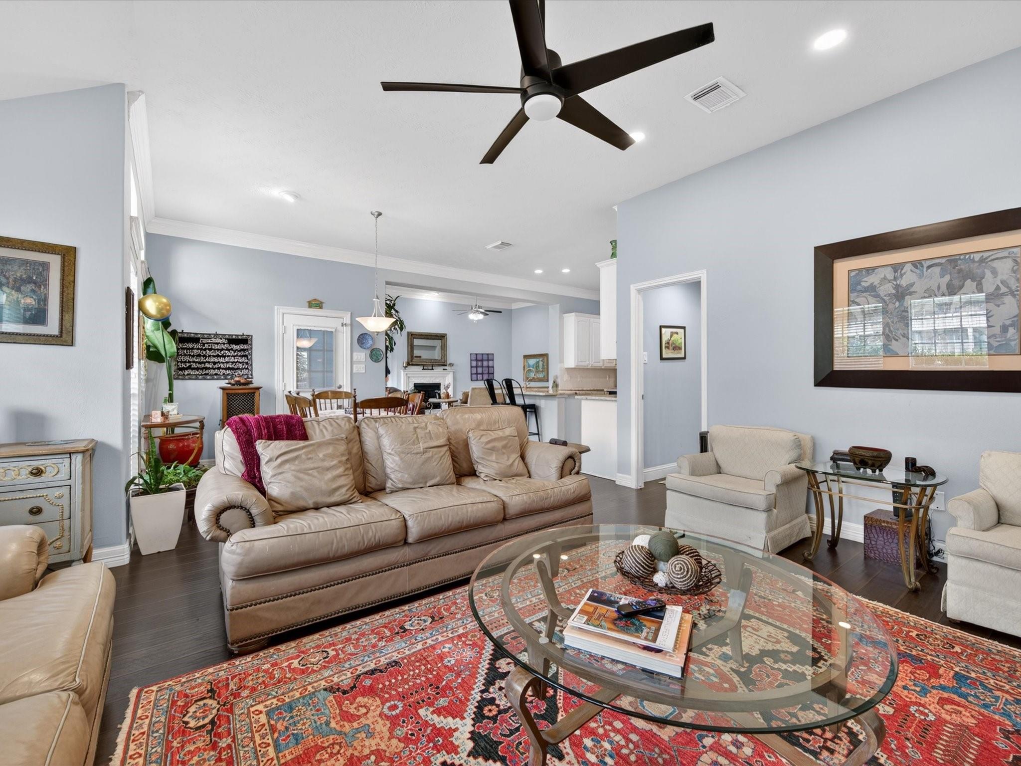 Perfectly nestled on a corner cul-de-sac lot in Champions Forest, this beautifully updated one-story home blends style & comfort. Offering 4 BDRM, 3 FULL BTH, & 3247 SQFT of thoughtfully crafted updates! Be welcomed through a beautiful leaded glass front door; into a light-filled interior with soaring ceilings, crown molding, engineered hardwood & decorative niches throughout. The expansive floorplan provides flexibility while the spacious primary retreat features a luxurious en-suite w/ jetted tub, walk-in shower, dual sinks, generous storage, & expansive walk-in closet. The kitchen is a chef’s dream featuring a 5-burner gas cooktop, stainless steel appliances, & gleaming granite countertops, all seamlessly opening to the living area w/ cozy gas-log fireplace. Additional highlights include window shutters, private courtyard entry, covered patio, generator hookup, & 3-car tandem garage with extended space (2020). Experience refined living —schedule your private showing today!