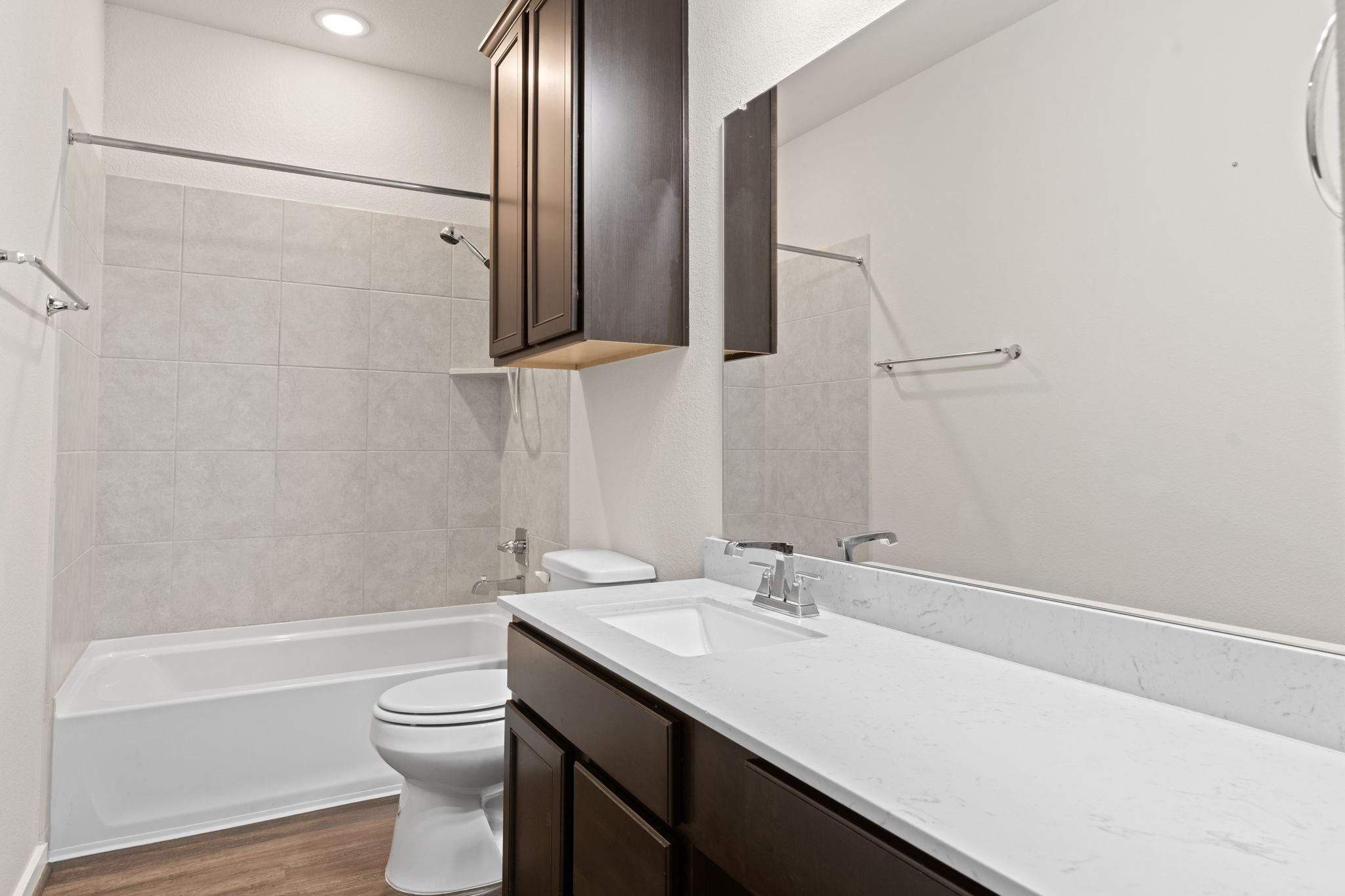 /monthSECTION 8 is accepted on a case-by-case basis. 2-story home with beautiful stone and brick elevation! Features include a 2.5-car garage, sprinkler system, covered patio, Energy Star certification, and a Tankless/On-Demand H2O Heater. Grand two-story entry, sweeping iron stairway, wood-like vinyl plank flooring, and tall custom doors on the first floor & more! Massive family room with high ceilings and a wall of windows flows into the casual dining and gourmet kitchen with quartz countertops, tall custom cabinets with undermount lighting, subway backsplash, deep undermount sink, stainless-steel built-in appliances, and walk-in pantry & more! Primary suite offers high coffered ceilings and a spa bath with quartz counters, dual sinks, soaker tub, and huge shower & more! Upstairs includes 2 guest bedrooms, a full bath, a guest suite with private bath, plus game and media rooms. Wonderful amenities, outstanding schools, and minutes from shopping. Vacant and no flooding!