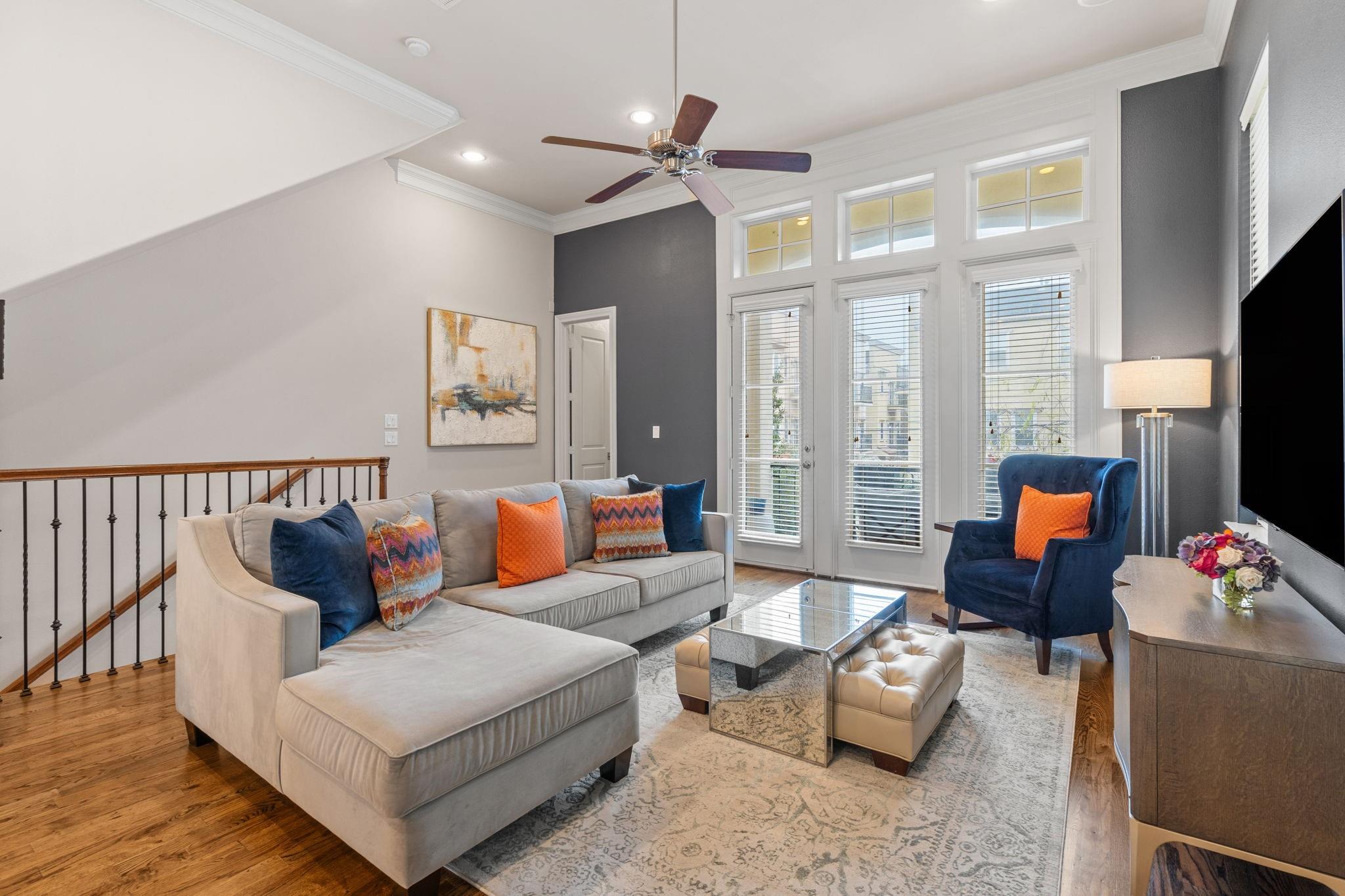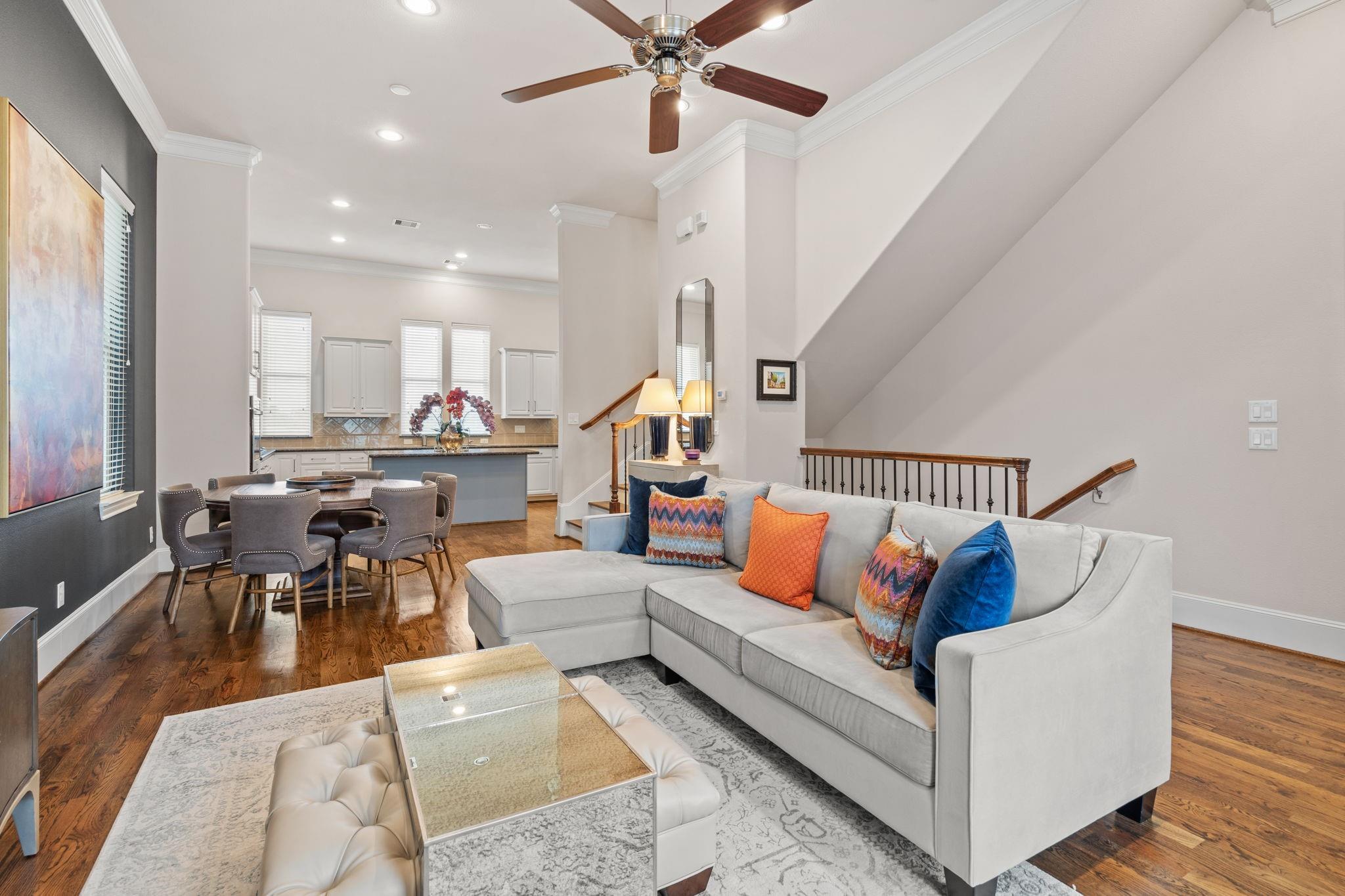 Stunning free-standing home in the heart of Cottage Grove. Located on the Heights Hike & Bike Trail with easy access to MKT and TC Jester. Features a turf-covered backyard with no rear neighbors and rare open grassland views, plus an oversized private driveway and a garage that fits a full-size truck. This three-story residence offers a thoughtfully designed layout with a ground-floor bedroom and en-suite bath, ideal for guests or a home office. The second floor boasts an open-concept living space with a modern kitchen featuring white cabinetry, stainless steel appliances, a large island with breakfast bar, and a walk-in pantry, along with a dining area and living room with oversized windows and balcony access. The third floor includes the primary suite with double sinks, soaking tub, separate shower, walk-in closet, and a secondary bedroom with its own full bath. Conveniently located minutes from I-10 with easy access to all Houston has to offer.