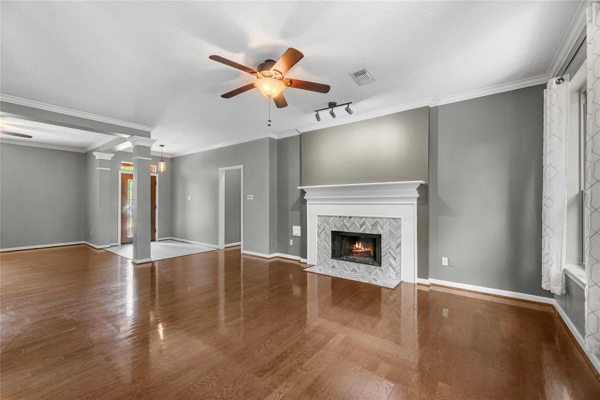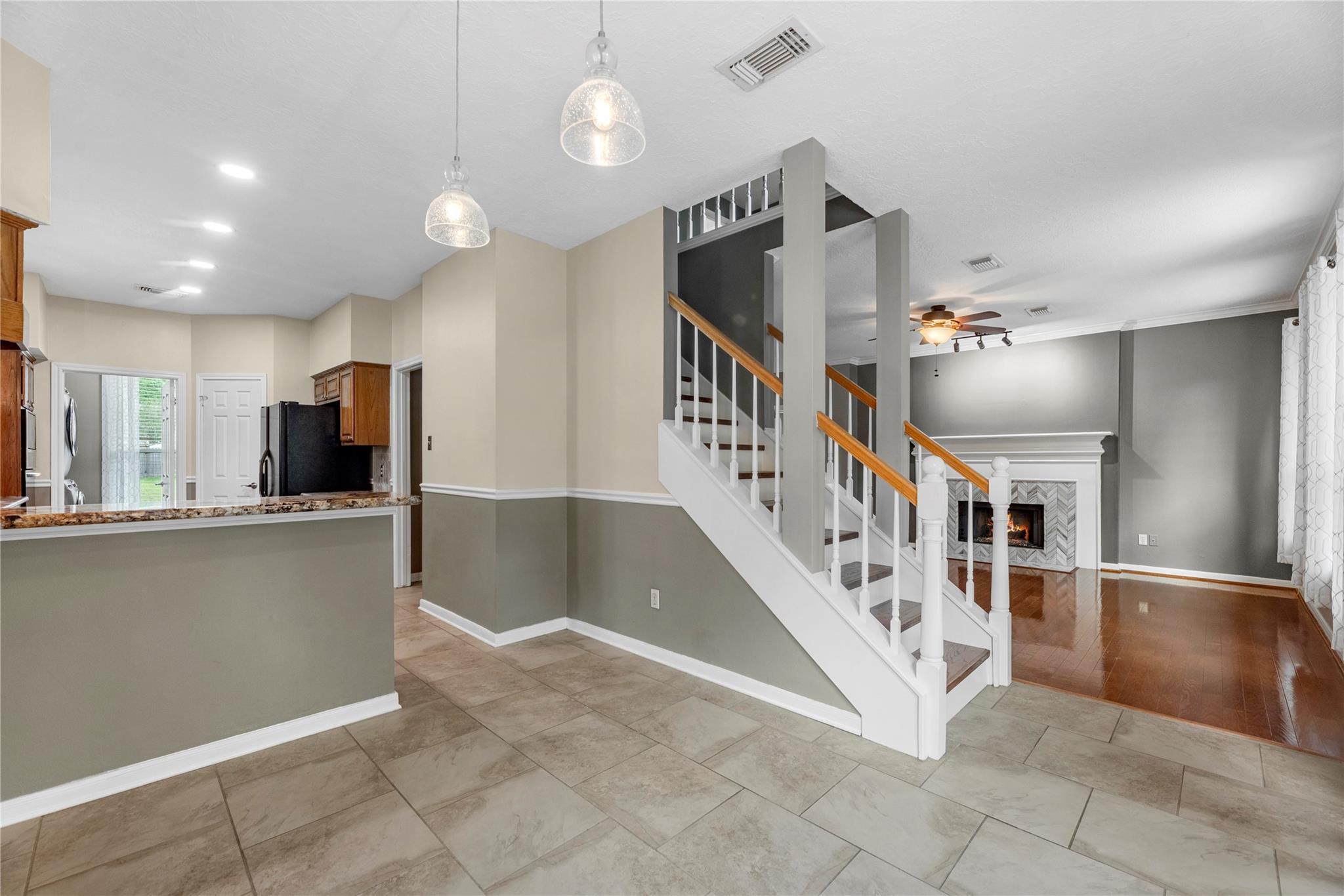 InteriorFireplace:1/Gas Connections,Gaslog FireplaceFloors:Carpet,Engineered Wood,TileCountertop:GraniteBathroom Description:Half Bath,Primary Bath: Double Sinks,Primary Bath: Separate Shower,Primary Bath: Soaking Tub,Secondary Bath(s): Double Sinks,Secondary Bath(s): Tub/Shower ComboBedroom Desc:2 Bedrooms Up,En-Suite Bath,Primary Bed - 1st Floor,Walk-In ClosetKitchen Desc:Breakfast Bar,Walk-in PantryRoom Description:Breakfast Room,Entry,Family Room,Formal Dining,Gameroom Up,Utility Room in HouseHeating:Central GasCooling:Central ElectricConnections:Electric Dryer Connections,Gas Dryer Connections,Washer ConnectionsDishwasher:YesDisposal:YesMicrowave:YesRange:Gas CooktopOven:Convection Oven,Electric OvenEnergy Feature:Attic Vents,Ceiling Fans,Digital Program Thermostat,Insulated/Low-E windowsInterior:Crown Molding,Formal Entry/Foyer,Window Coverings