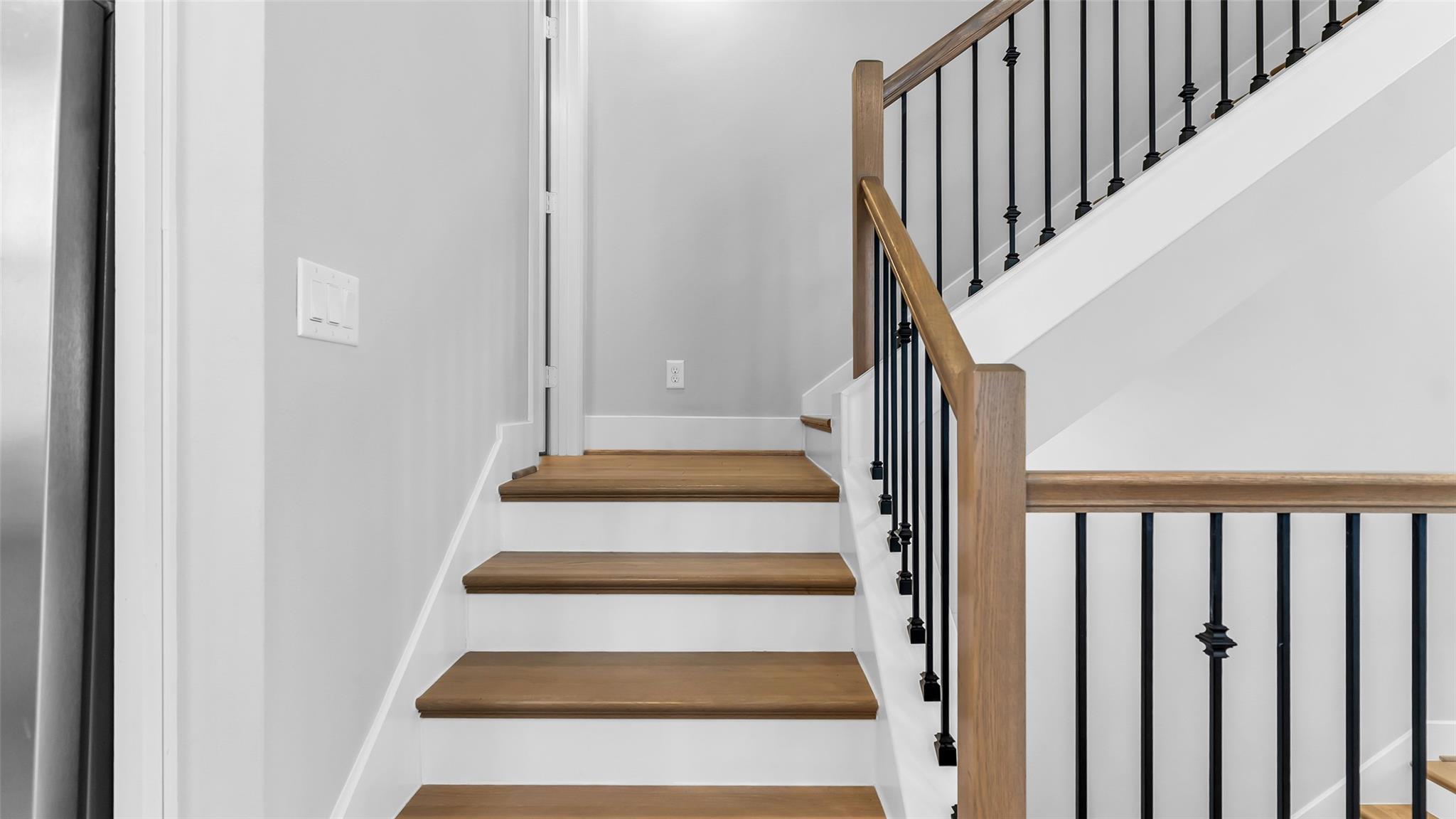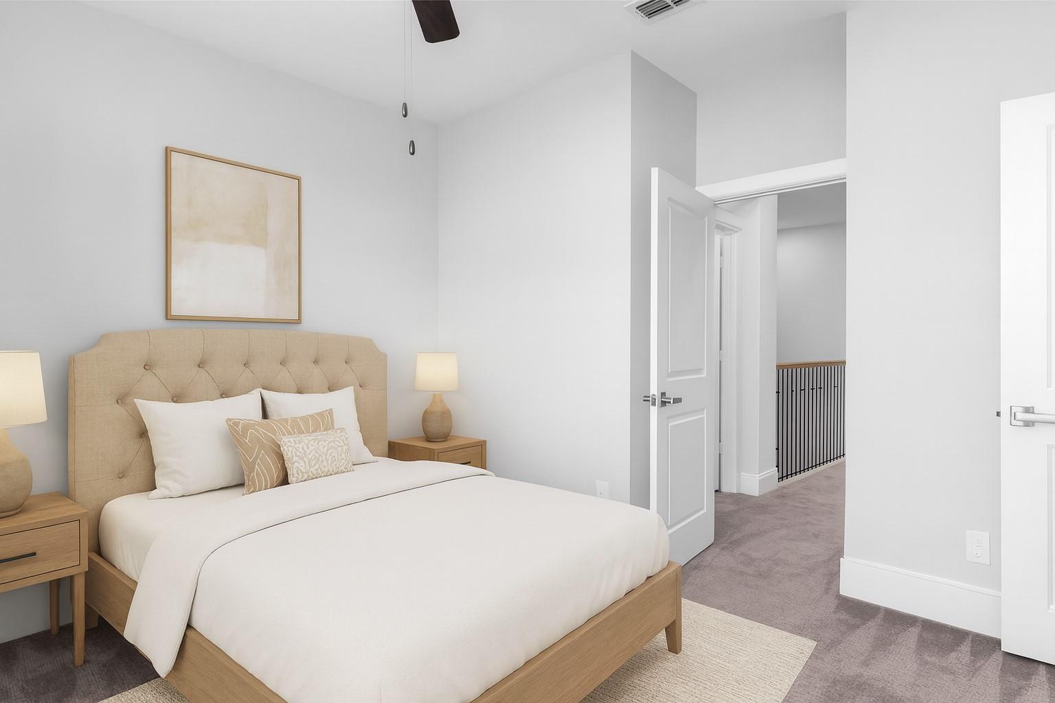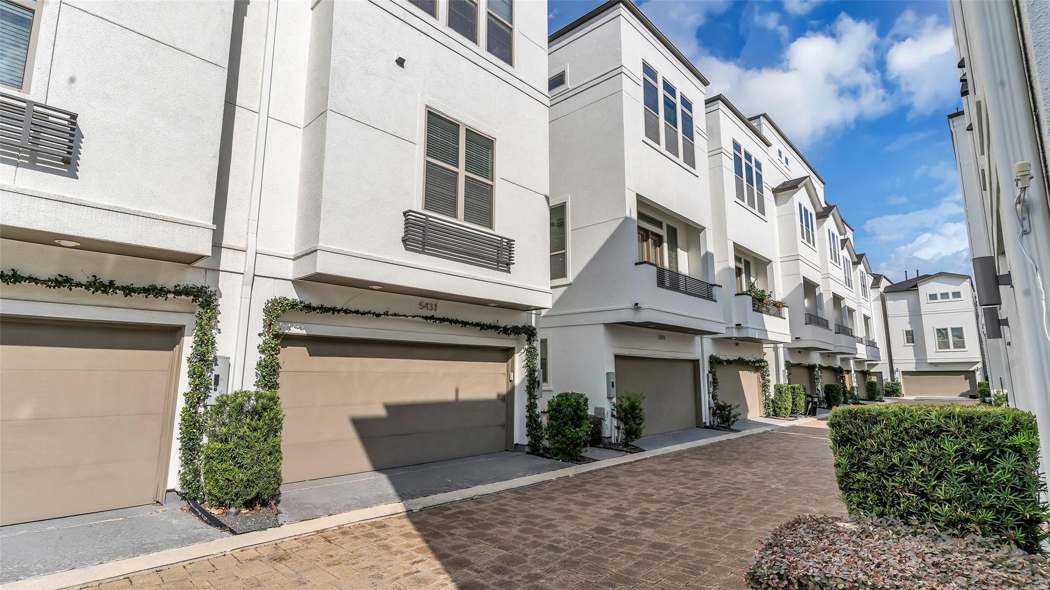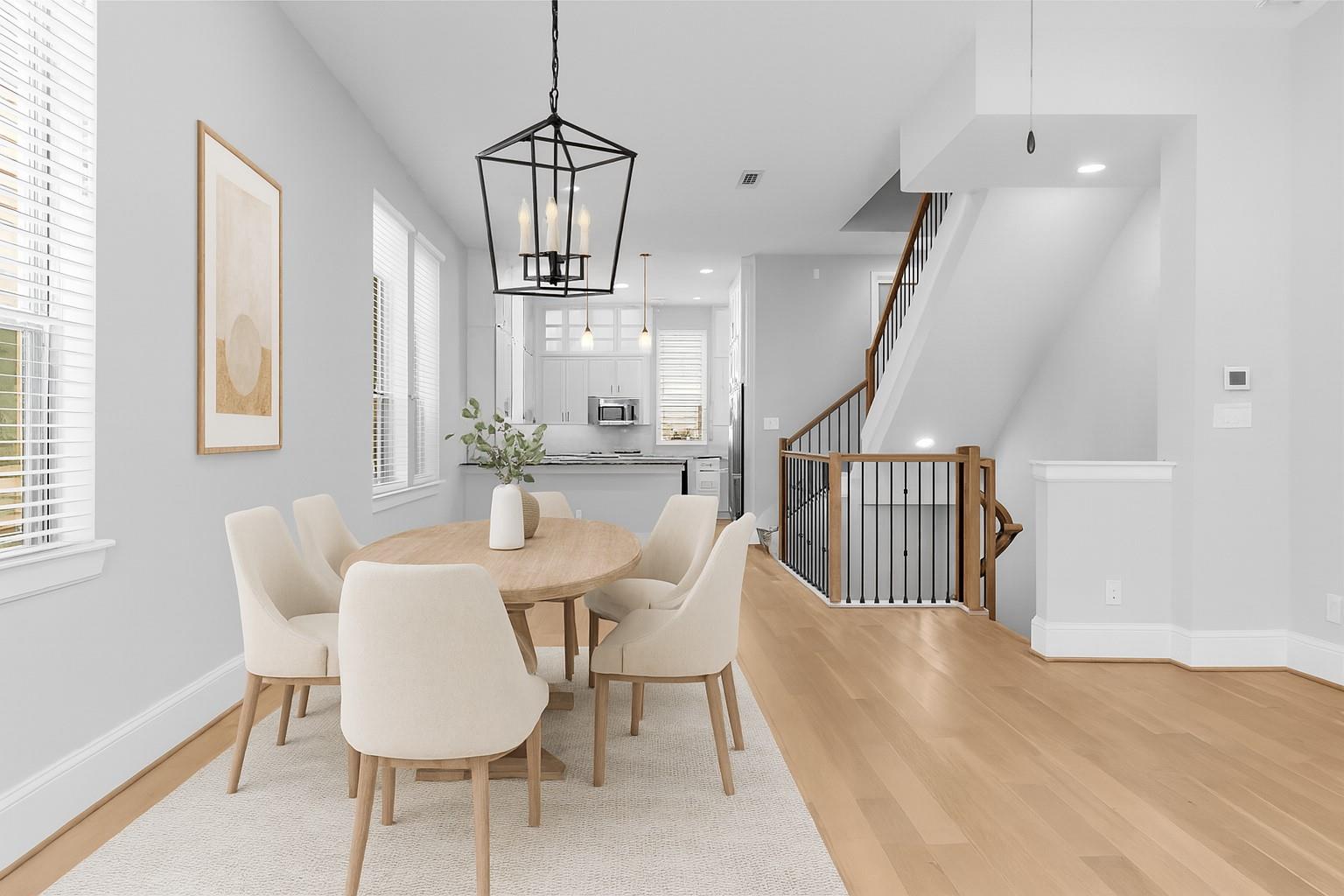 Larkin Place in Cottage Grove offers a modern, contemporary townhome within a boutique gated community steps from TC Jester Blvd., I-10, 610, 45, 69, Downtown, the Galleria, and the Medical Center. Built in 2017, the home has been meticulously maintained with engineered wood floors, recessed lighting, bright neutral tones, ceiling fans throughout, and granite counters in the kitchen and all baths. The first floor features a guest suite with an en-suite bath and access to a private outdoor area, plus a two-car garage with bonus storage. The second floor presents an open-concept living, dining, and kitchen with modern cabinetry, under-cabinet and display lighting, ample counter space, generous outlets, and a small balcony. The third floor includes the spacious primary suite with a cove ceiling, soaking tub, separate shower, double sinks, and a large walk-in closet, along with a secondary en-suite bedroom and centrally located laundry. The fenced outdoor space adds convenience and privacy