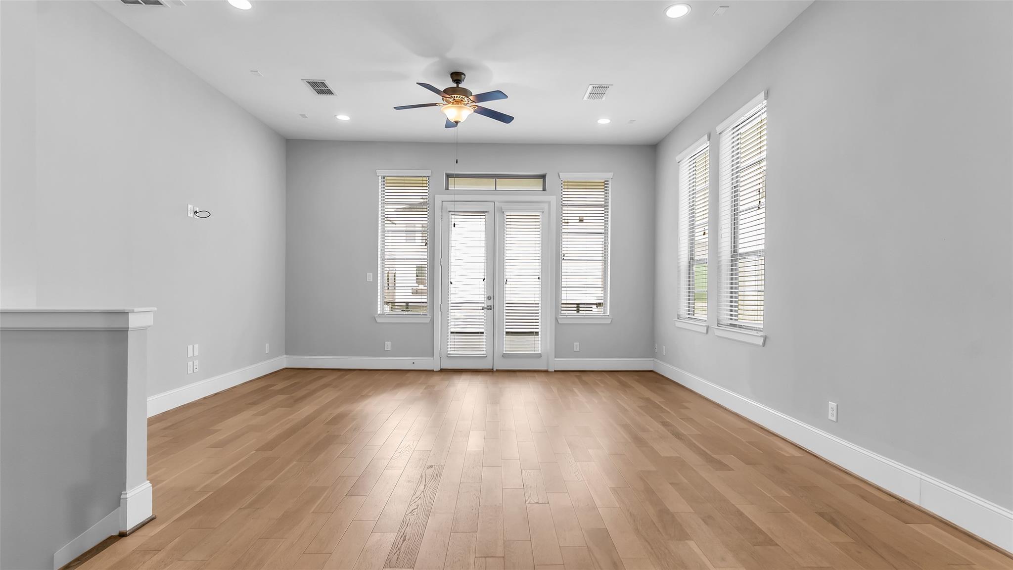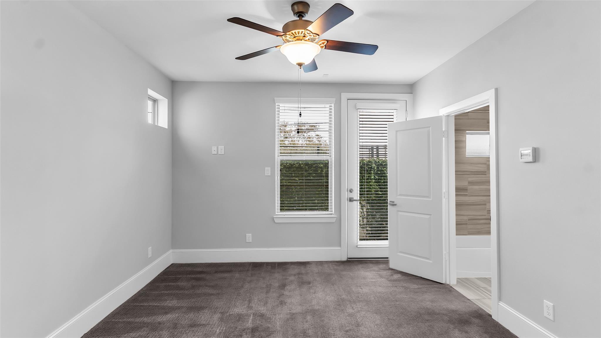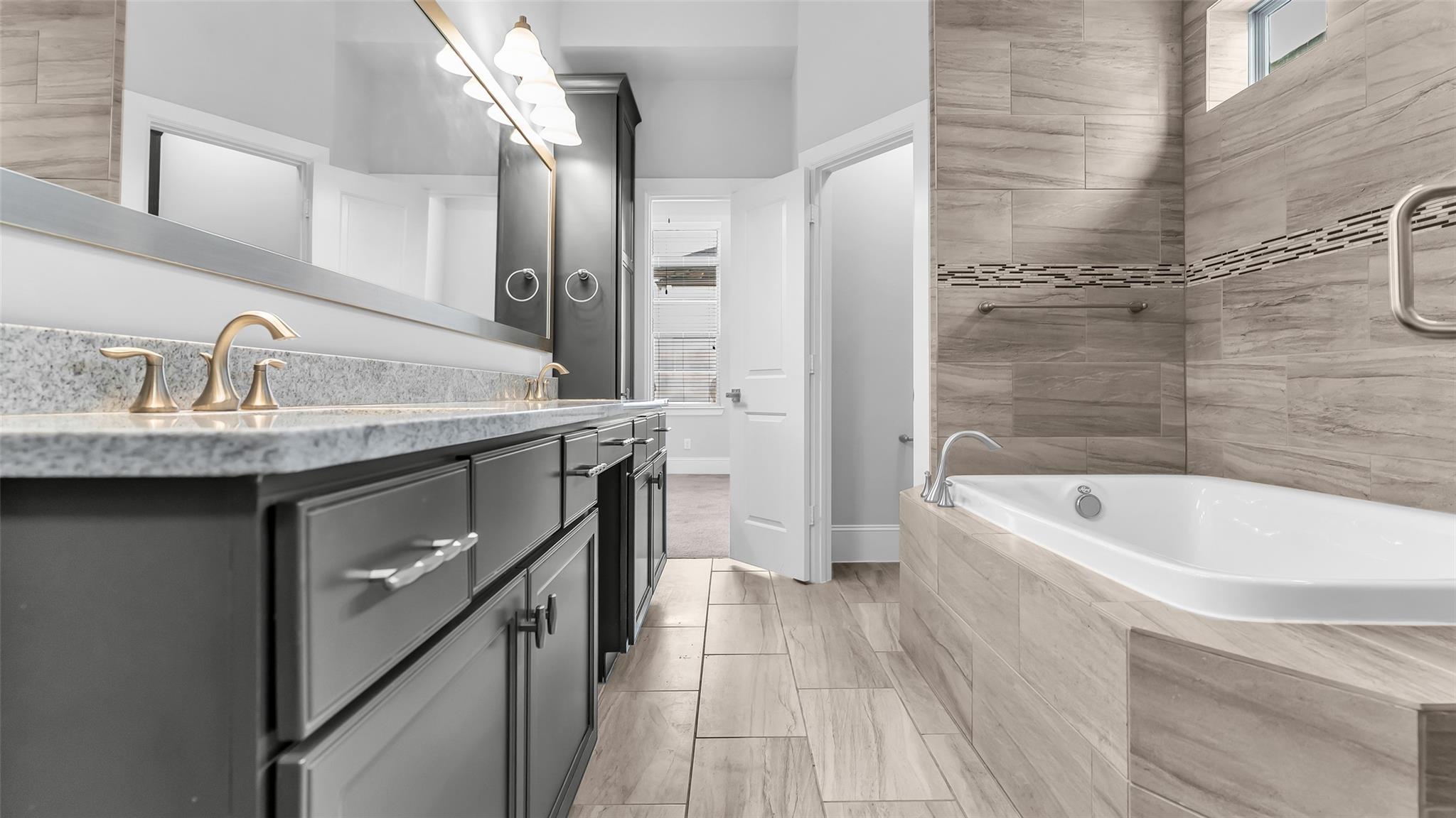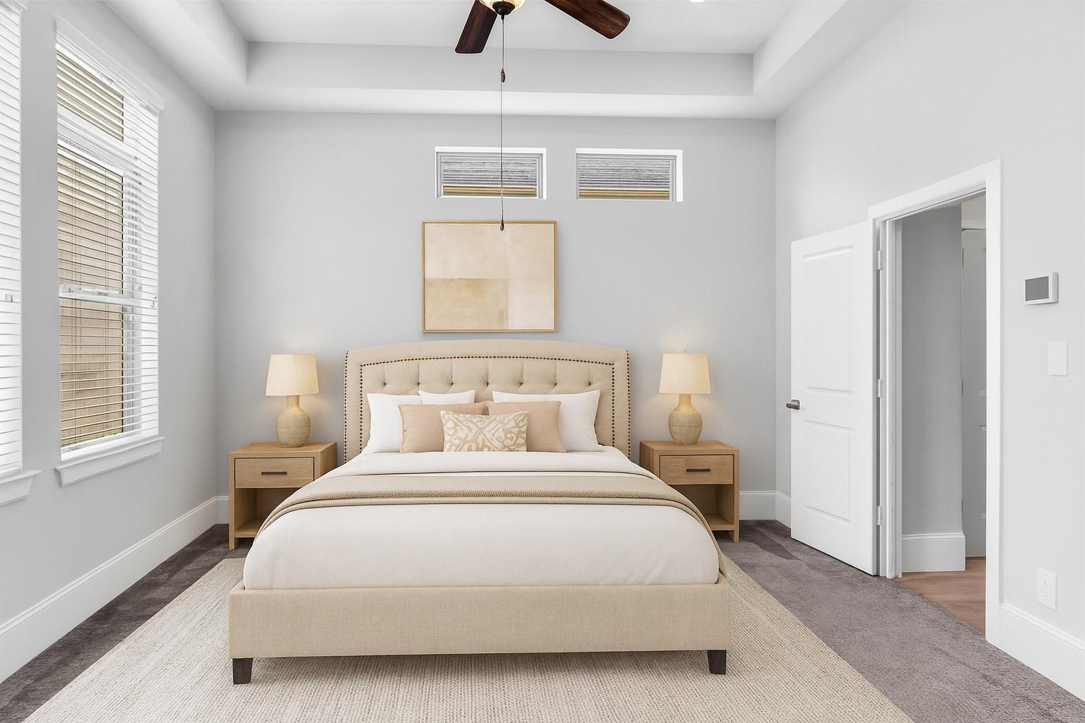 Larkin Place in Cottage Grove offers a modern, contemporary townhome within a boutique gated community steps from TC Jester Blvd., I-10, 610, 45, 69, Downtown, the Galleria, and the Medical Center. Built in 2017, the home has been meticulously maintained with engineered wood floors, recessed lighting, bright neutral tones, ceiling fans throughout, and granite counters in the kitchen and all baths. The first floor features a guest suite with an en-suite bath and access to a private outdoor area, plus a two-car garage with bonus storage. The second floor presents an open-concept living, dining, and kitchen with modern cabinetry, under-cabinet and display lighting, ample counter space, generous outlets, and a small balcony. The third floor includes the spacious primary suite with a cove ceiling, soaking tub, separate shower, double sinks, and a large walk-in closet, along with a secondary en-suite bedroom and centrally located laundry. The fenced outdoor space adds convenience and privacy