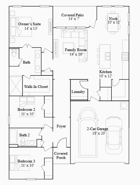 First FloorFamily Room:14x16Dining:10x11Kitchen:10x13Primary Bedroom:14x13Bedroom:11x10Bedroom 2:11x10