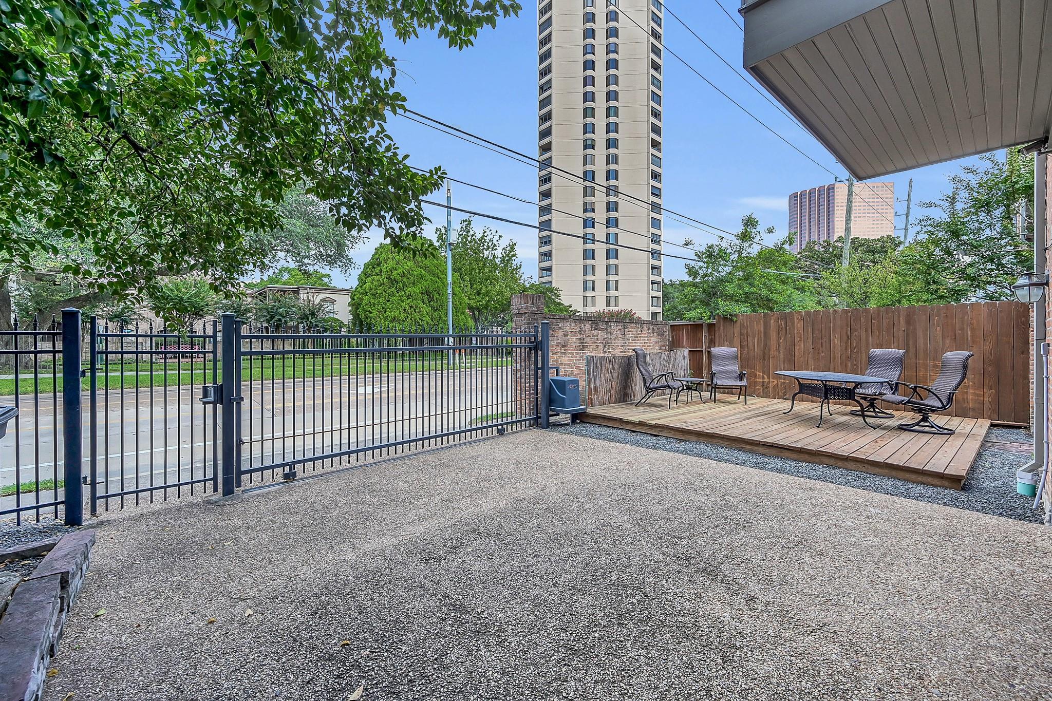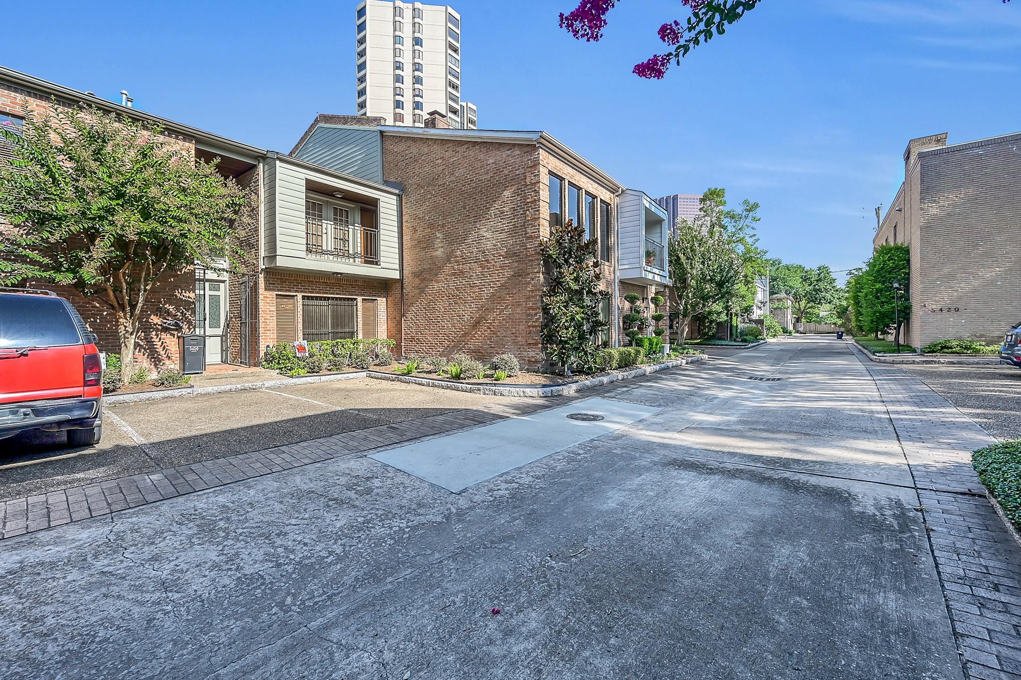 Located in the heart of the Galleria, 5450 John Dreaper offers over 2,750 sq ft of stylish, low-maintenance living—perfect as a primary residence or lock-and-leave. This 3-bed, 3.5-bath townhome features hardwood floors, soaring ceilings, a spacious living area with custom surround sound and wet bar, and an updated kitchen with granite countertops, wine fridge, glass-front cabinets, and a separate coffee bar. Each bedroom has its own full bath and balcony. The primary suite includes a fireplace, seating area, and spa-like bath with soaking tub and stone shower. A private side yard a deck is perfect for entertaining. A custom security gate provides peace of mind, and the two-car garage and guest parking make city living easy. Located on a charming brick-lined street just a short drive to Memorial Park, the Galleria, and Houston’s top dining and shopping destinations. Be sure to check out our 360 degree tour.