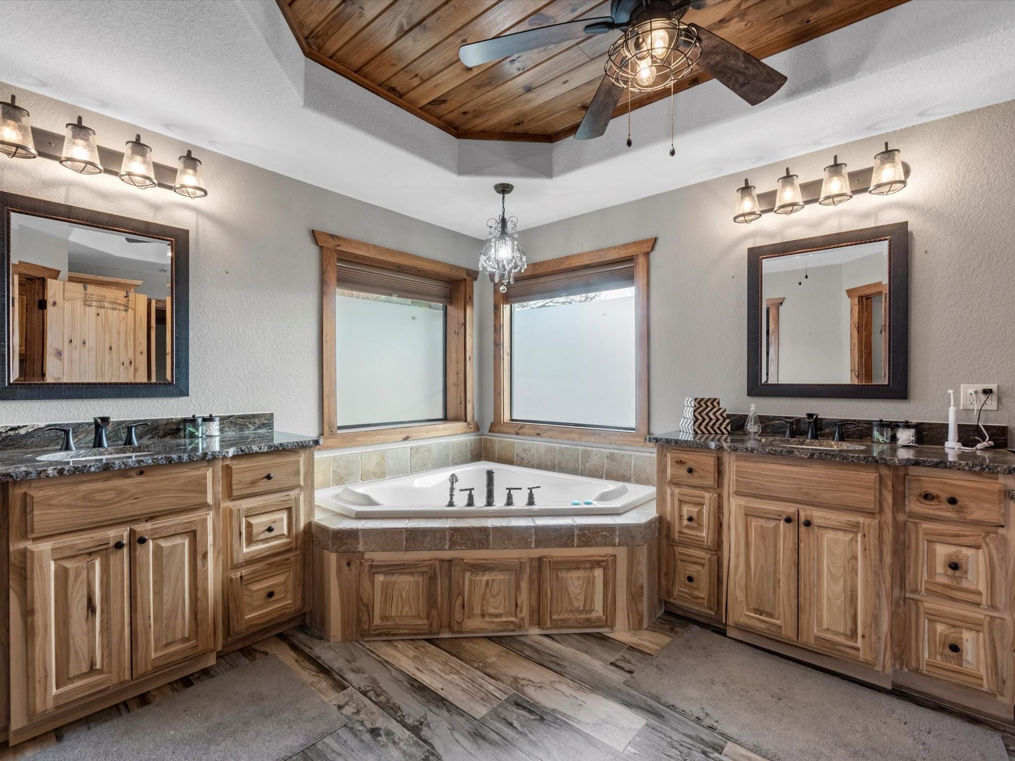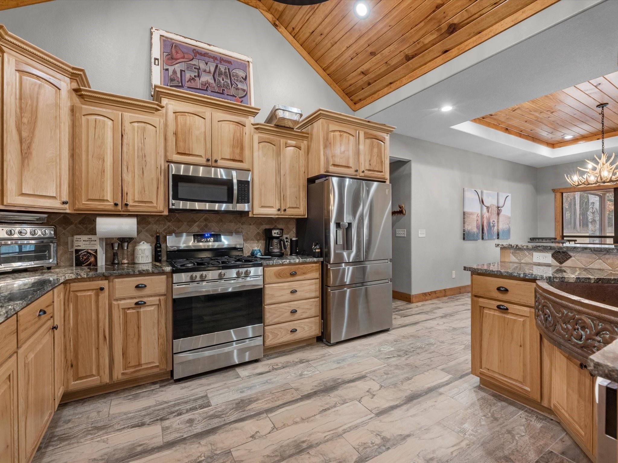 InteriorFireplace:1/Freestanding,Gaslog Fireplace,Wood Burning FireplaceFloors:Carpet,Tile,WoodCountertop:GraniteBathroom Description:Primary Bath: Double Sinks,Primary Bath: Separate Shower,Primary Bath: Soaking Tub,Secondary Bath(s): Tub/Shower ComboBedroom Desc:En-Suite Bath,Primary Bed - 1st Floor,Sitting Area,Split Plan,Walk-In ClosetKitchen Desc:Breakfast Bar,Kitchen open to Family Room,PantryRoom Description:1 Living Area,Den,Family Room,Formal Dining,Kitchen/Dining Combo,Living Area - 1st Floor,Quarters/Guest House,Utility Room in HouseHeating:Central GasCooling:Central ElectricConnections:Electric Dryer Connections,Gas Dryer Connections,Washer ConnectionsDishwasher:YesDisposal:YesCompactor:NoMicrowave:YesRange:Gas CooktopOven:Gas OvenIce Maker:NoEnergy Feature:Ceiling Fans,Digital Program Thermostat,North/South ExposureInterior:Dryer Included,Fire/Smoke Alarm,High Ceiling,Refrigerator Included,Vaulted Ceiling,Washer Included