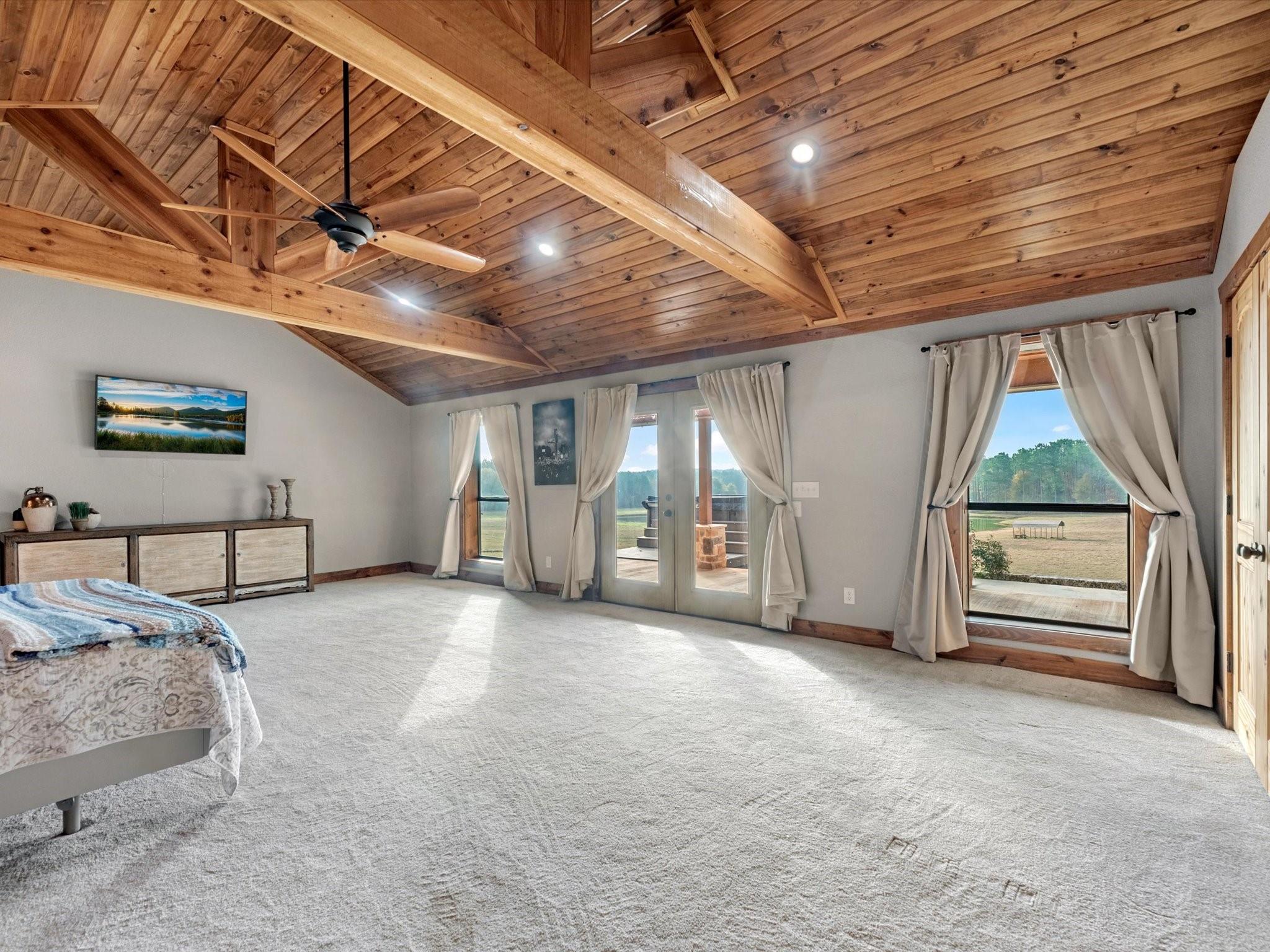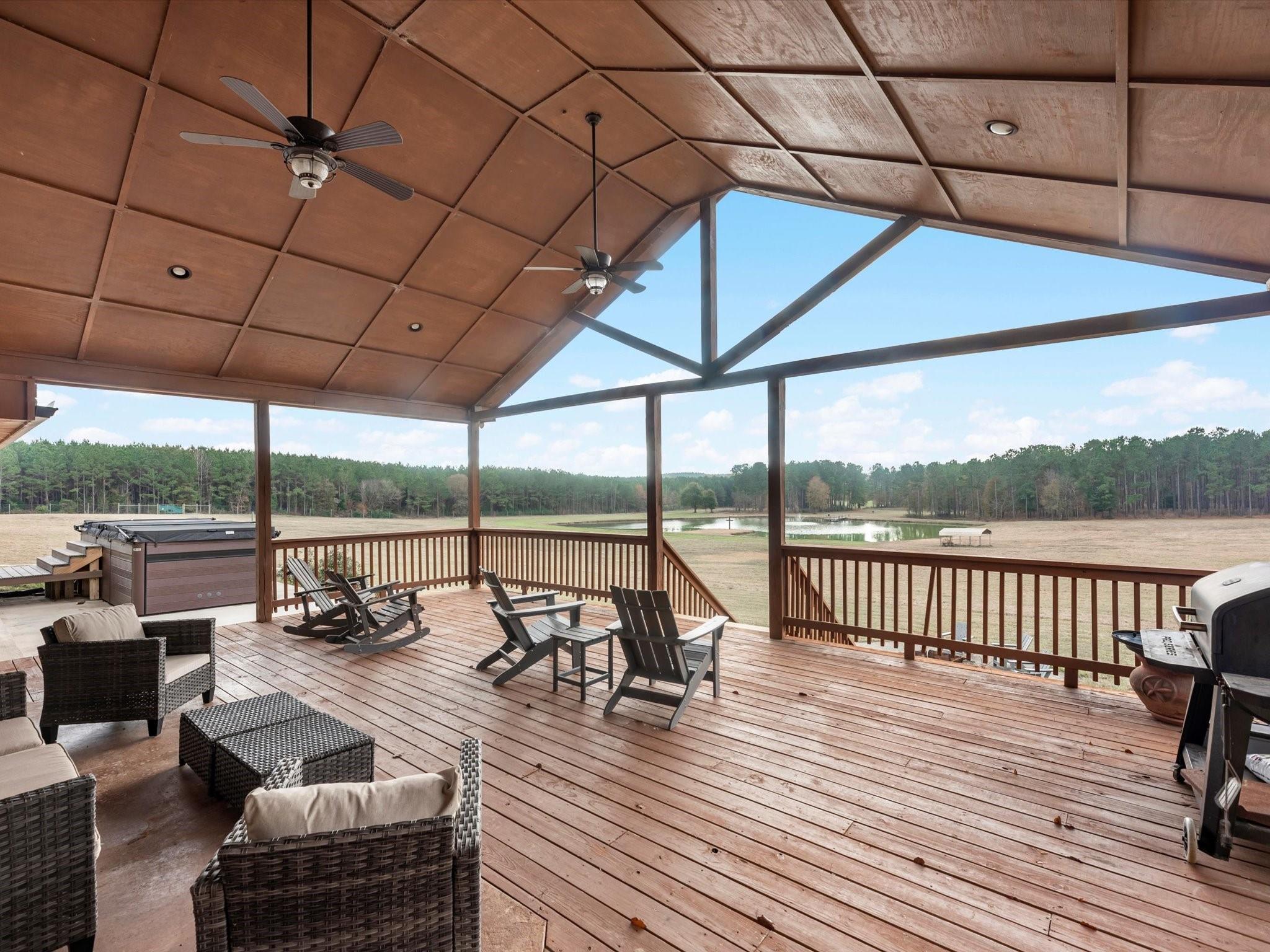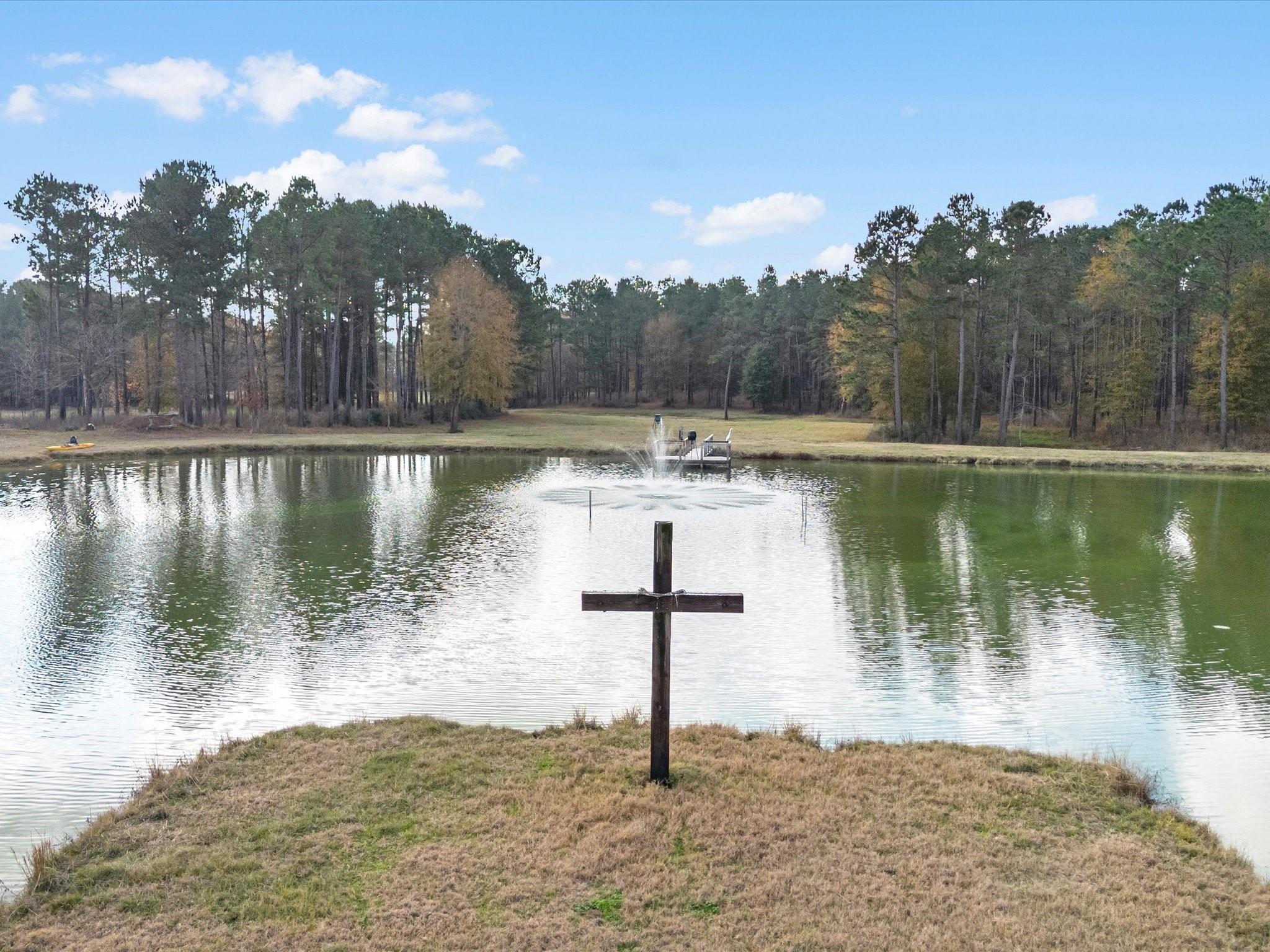 ExteriorFoundation:SlabPrivate Pool:NoLot Description:Other,Water View,WoodedWater Amenity:PondCarport Description:Attached CarportGarage Carport:Additional Parking,Auto Garage Door OpenerAccess:Automatic Gate,Driveway Gate,IntercomWater Sewer:Septic Tank,WellRoad Surface:Dirt,GravelFront Door Face:SouthTree Description:Densely Wooded