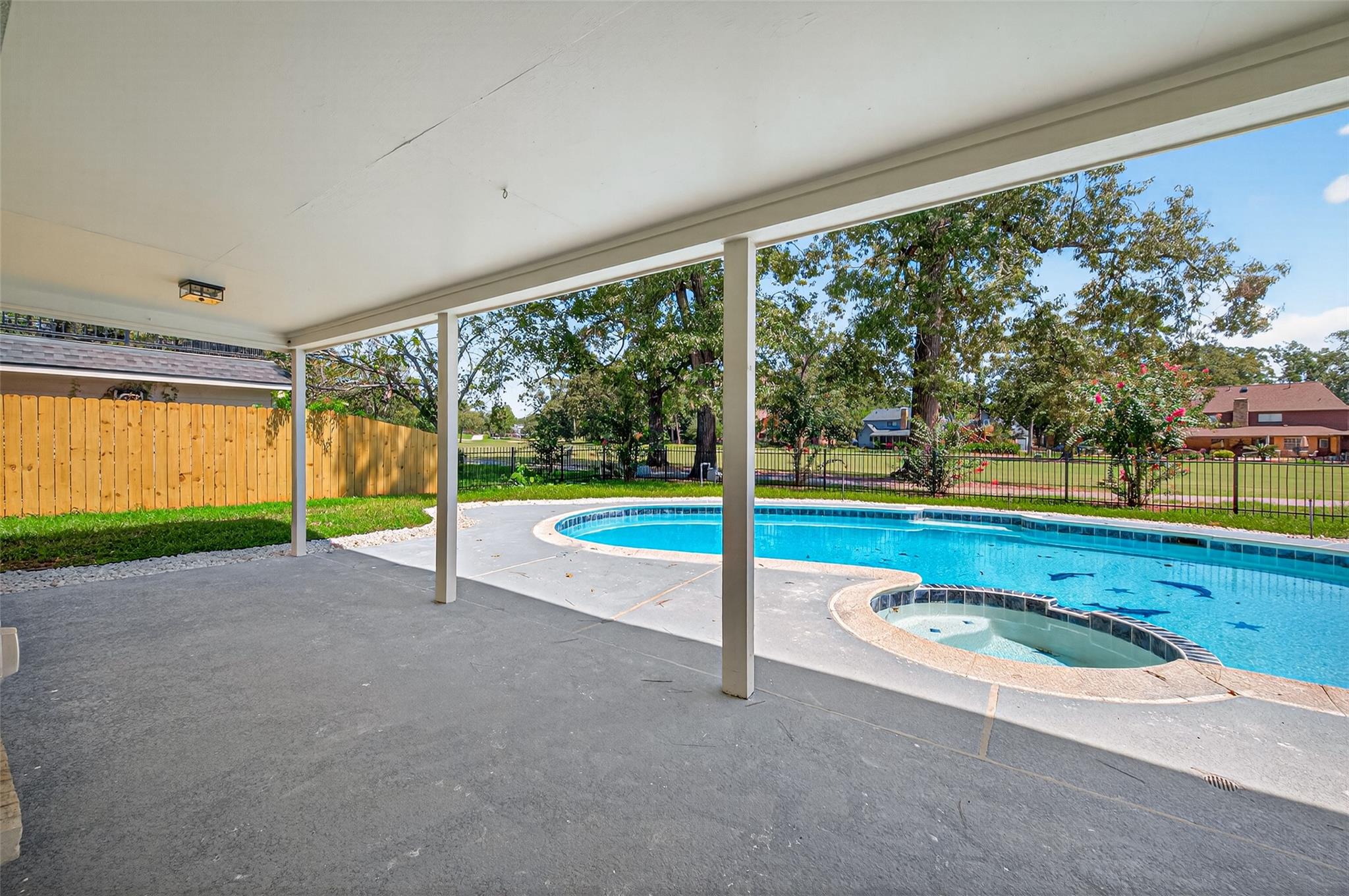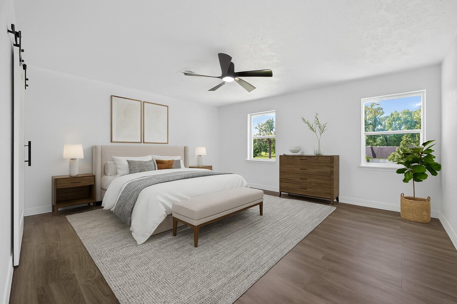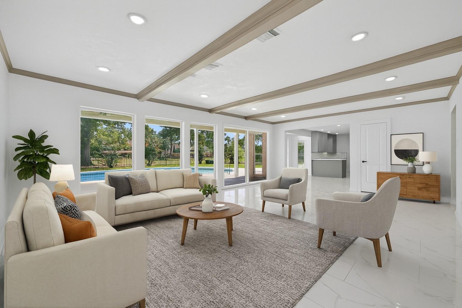 NO FLOODING EVER— HIGH ELEVATION section of River Plantation! Completely remodeled luxury two-story home. Nearly everything has been updated. Stunning custom kitchen with modern cabinets, quartz countertops, and KitchenAid stainless appliance package. All 3.5 bathrooms are fully renovated! Spa-inspired primary bath features a freestanding soaking tub, oversized walk-in shower with rainfall and handheld fixtures, double vanities, and balcony access. New PEX plumbing and updated electrical with new panel. Fresh interior/exterior paint, NEW energy-efficient double-pane windows. Porcelain tile downstairs and luxury vinyl upstairs – NO CARPET. New staircase and balcony rails. Private backyard oasis with resurfaced in-ground pool, new equipment, and refinished decking. Driveway extension, concrete upgrades, new landscaping and sod. Conveniently located, it’s just 15-20 minutes from Lake Conroe, 10-15 minutes from The Woodlands, and close to downtown Conroe’s dining and entertainment.