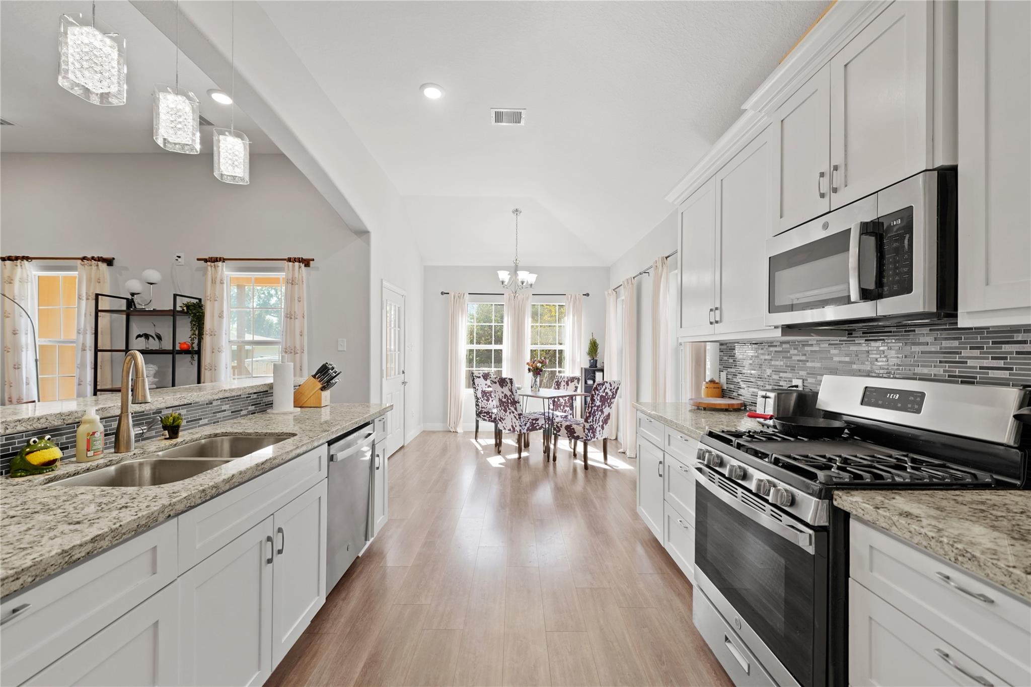 InteriorFloors:Carpet,Tile,WoodCountertop:GraniteBathroom Description:Primary Bath: Double Sinks,Primary Bath: Separate Shower,Primary Bath: Soaking Tub,Secondary Bath(s): Double SinksBedroom Desc:All Bedrooms Down,En-Suite Bath,Primary Bed - 1st Floor,Walk-In ClosetKitchen Desc:Breakfast Bar,Kitchen open to Family Room,Pantry,Soft Closing Cabinets,Soft Closing Drawers,Under Cabinet LightingRoom Description:Family Room,Kitchen/Dining Combo,Utility Room in HouseHeating:Central Electric,Central GasCooling:Central Electric,Central GasConnections:Electric Dryer Connections,Gas Dryer Connections,Washer ConnectionsDishwasher:YesDisposal:YesMicrowave:YesRange:Gas RangeOven:Gas OvenEnergy Feature:Attic Vents,Ceiling FansInterior:Formal Entry/Foyer,High Ceiling