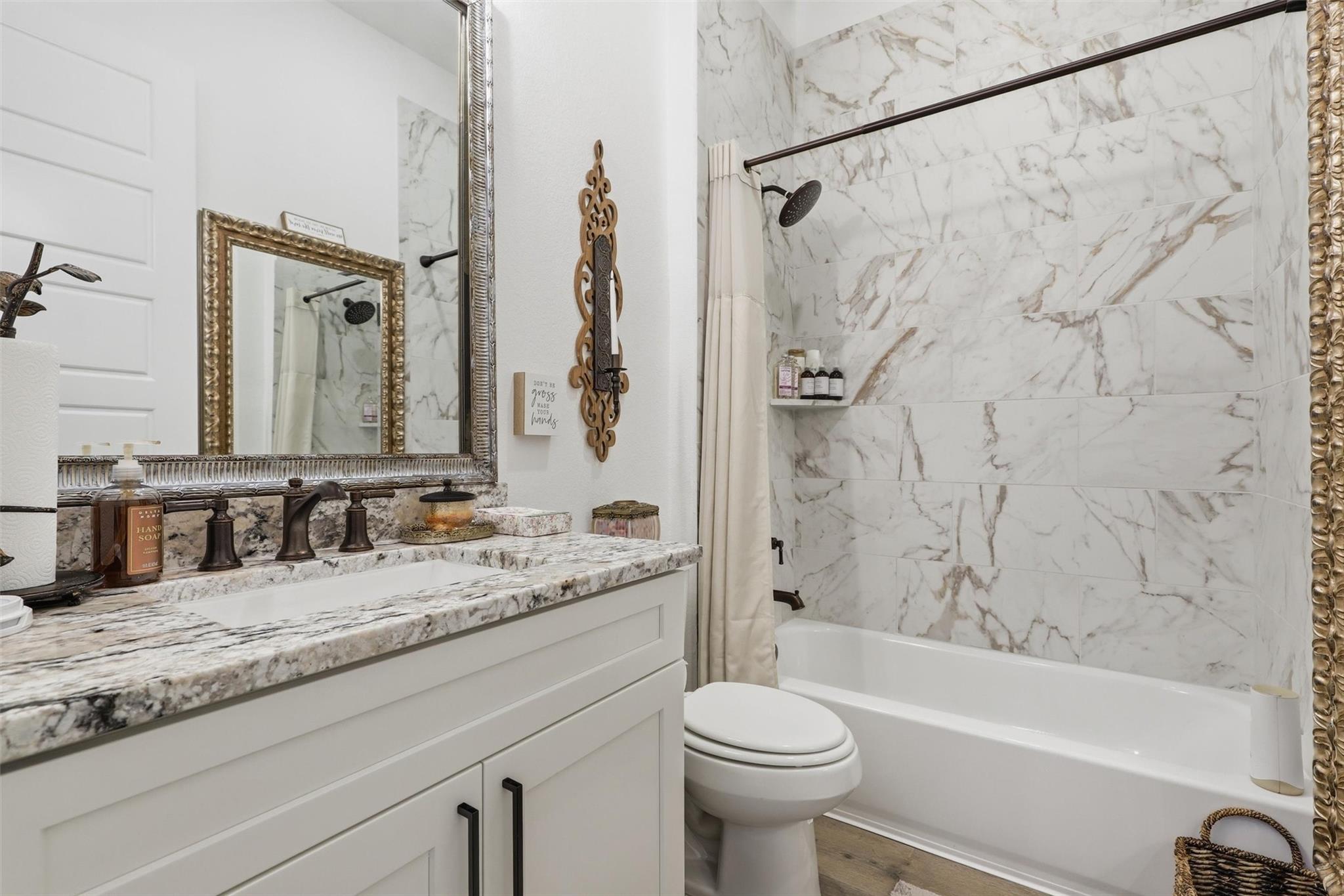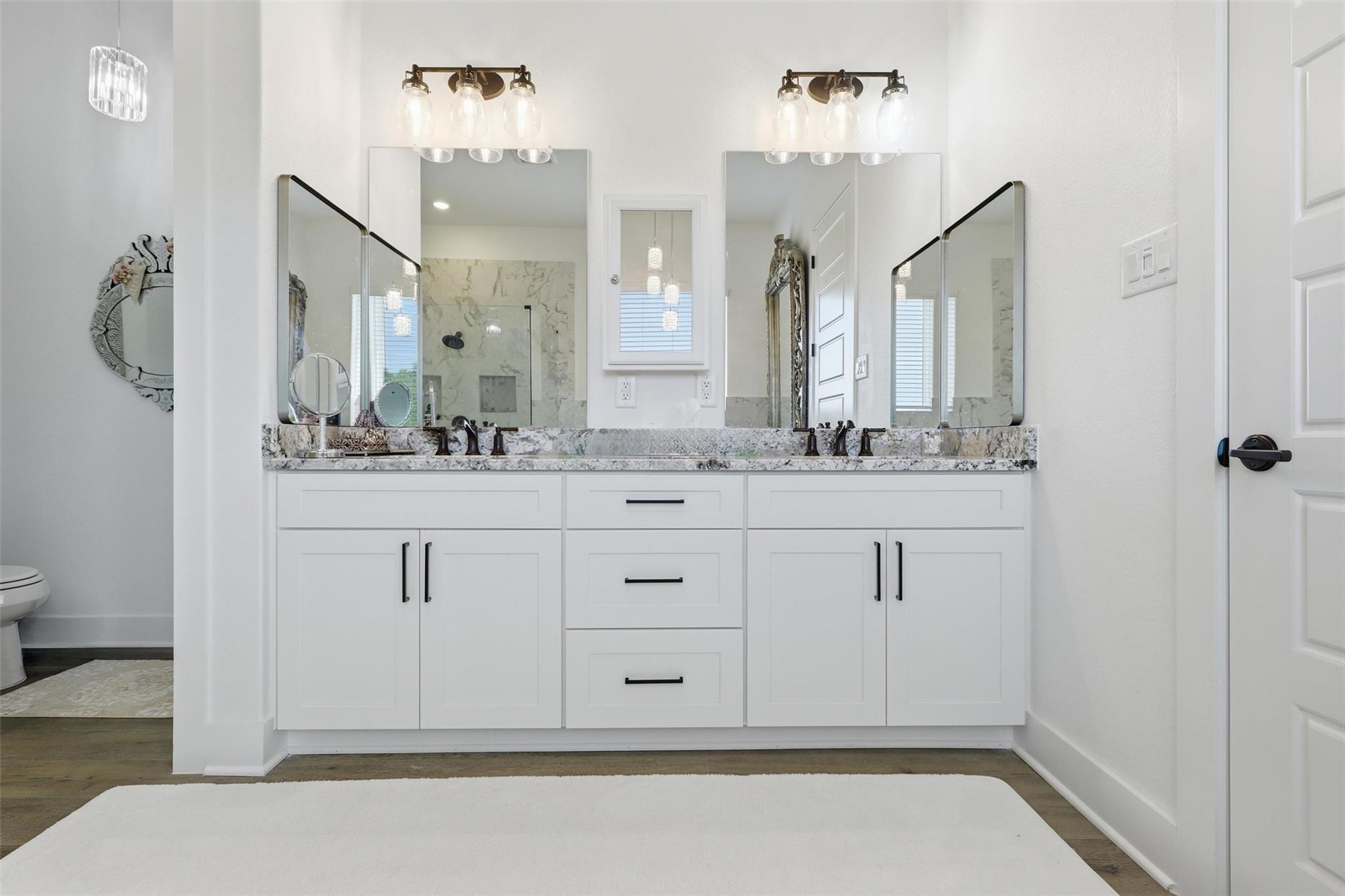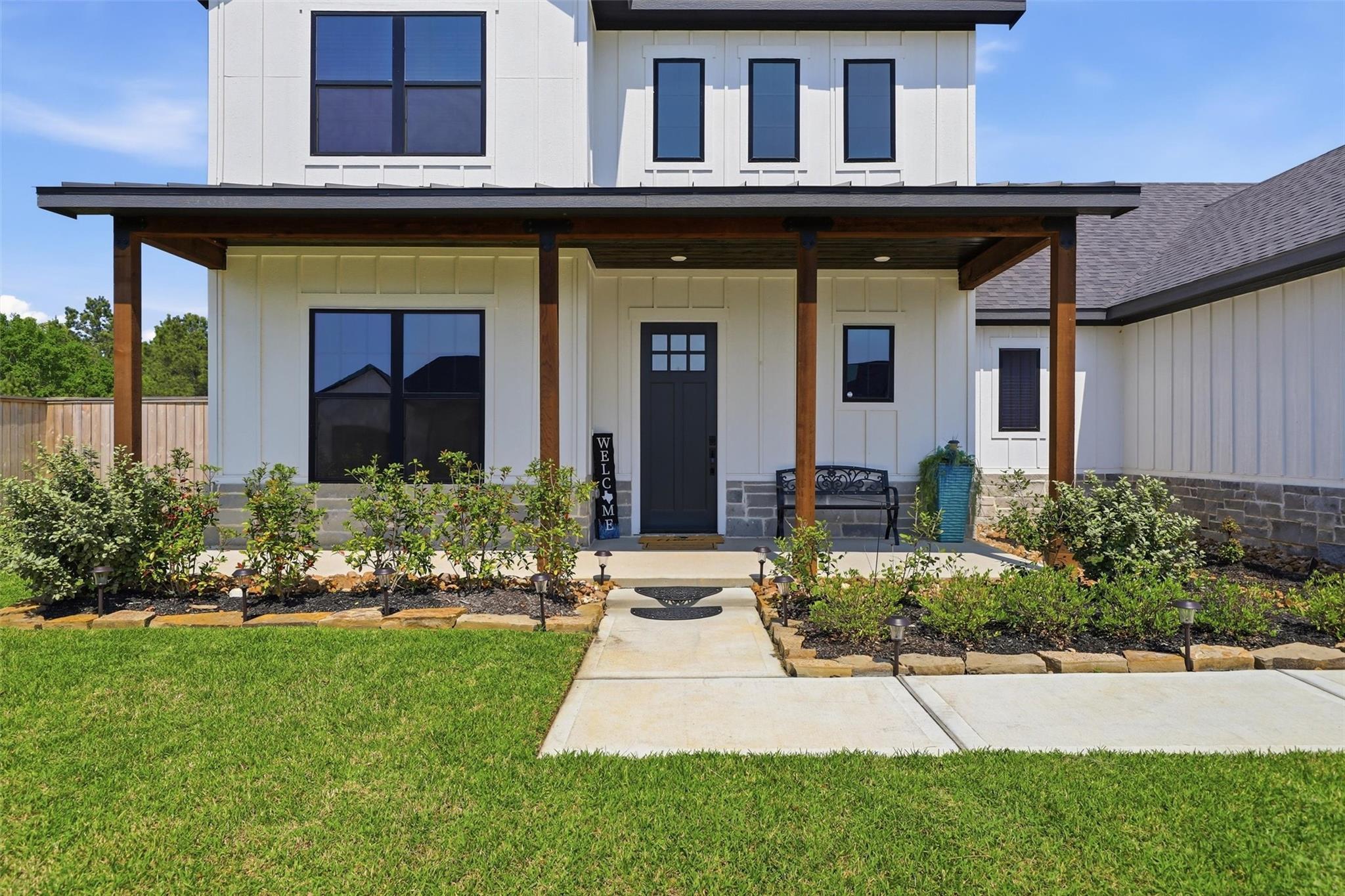 Discover Marigold Mile in Magnolia Woods. The last opportunity to own this floor plan in the community. Situated on a cul-de-sac, this 5-bedroom, 4-bath home offers over 3,100 square feet of thoughtfully designed living space. Craftsman-inspired exterior with board-and-batten siding, stone accents, and a covered front porch that sets the tone. Inside, the layout delivers true functionality with a private downstairs primary suite and an upstairs flex/game space that stays separate from the main living area. The kitchen features an oversized island, granite counters, stainless appliances, and opens seamlessly to the living space. Spacious secondary bedrooms throughout. One of the best lots in Magnolia Woods with no rear neighbors, elevated positioning, and unobstructed lake views. A private backyard with covered patio and room to expand. A rare combination of layout, lot, and final availability.