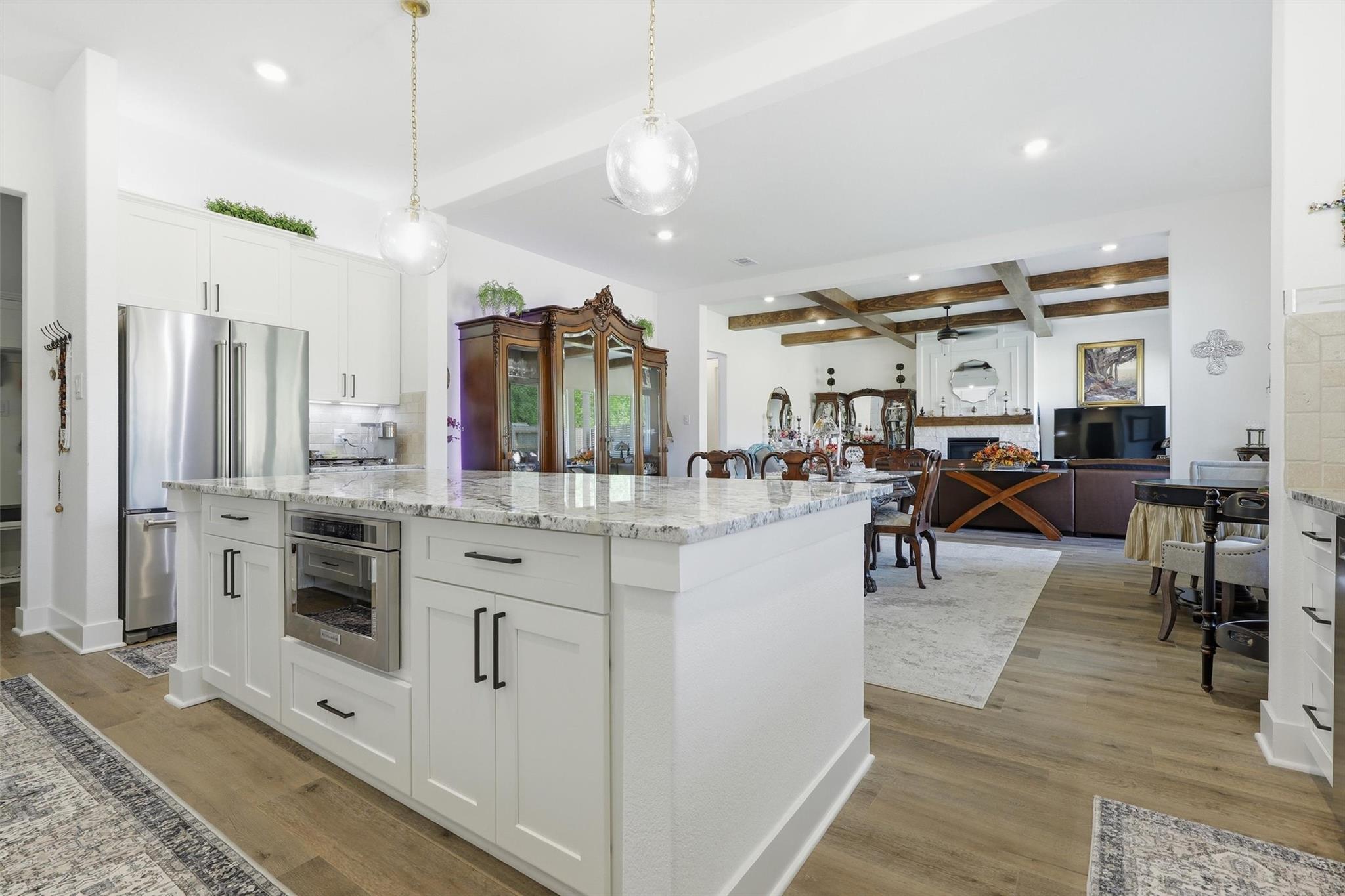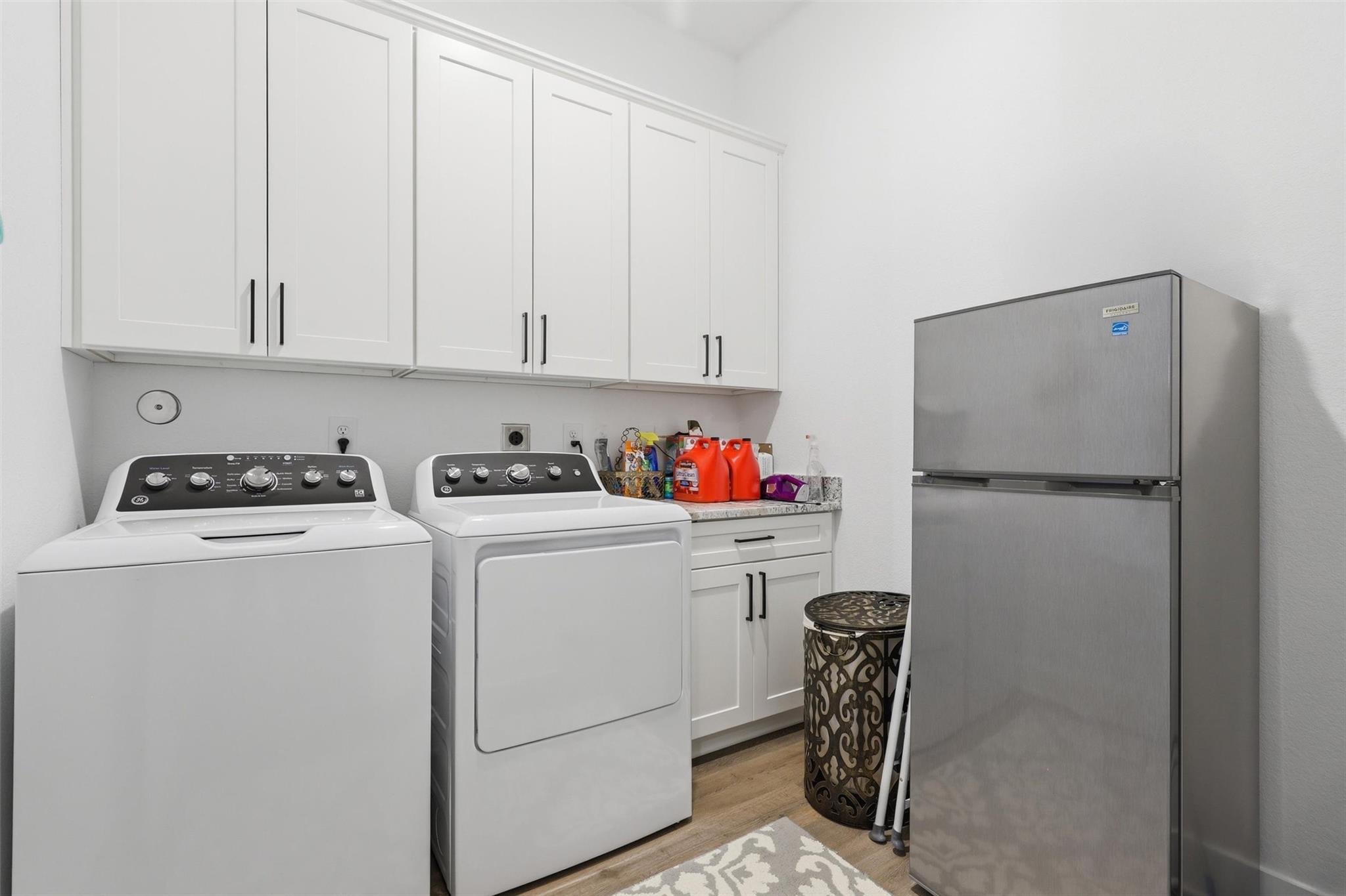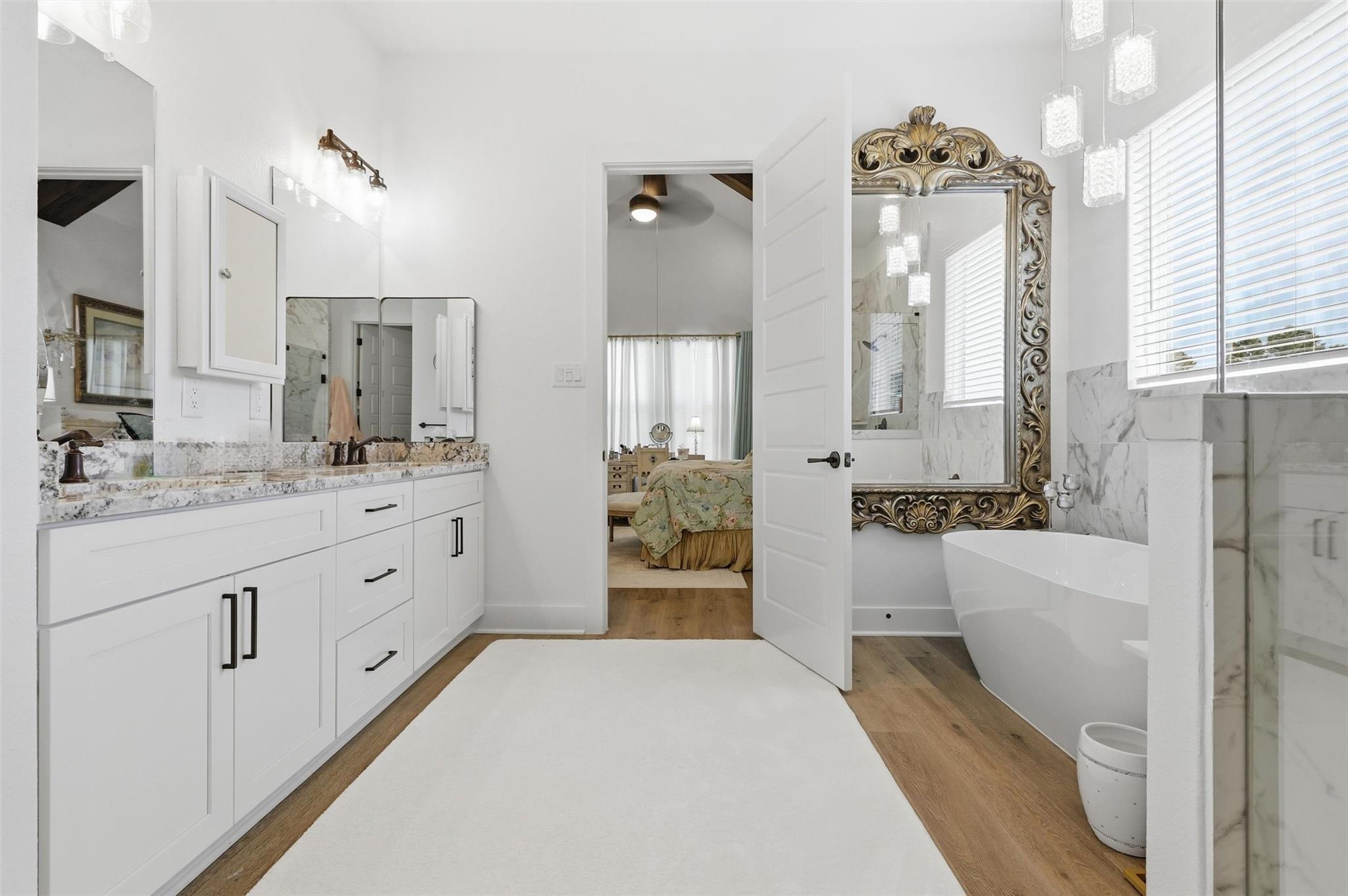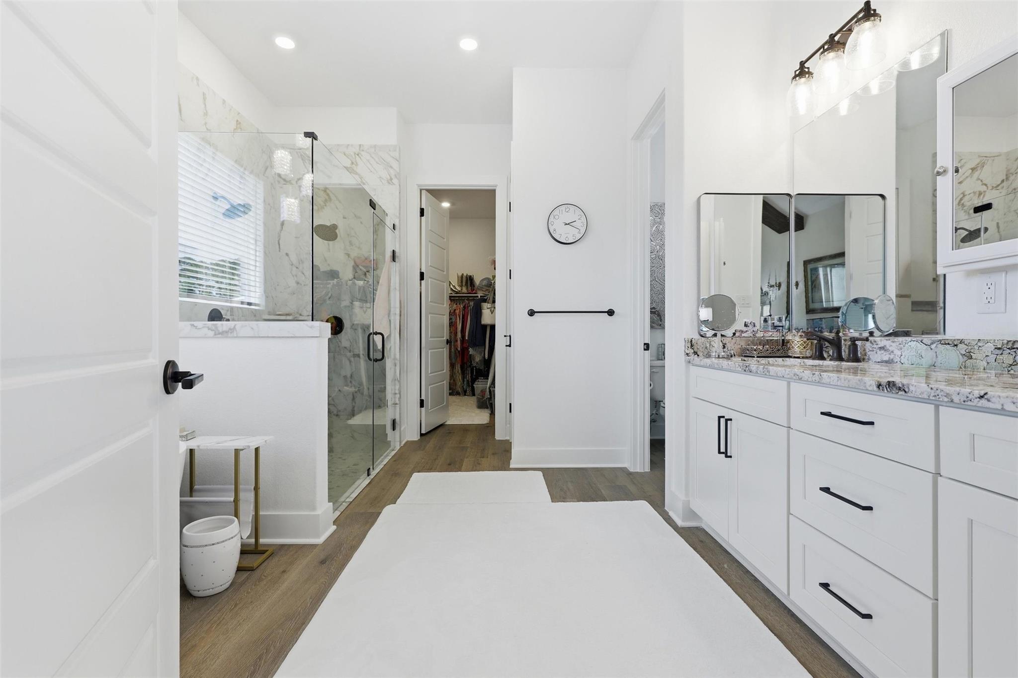 Discover Marigold Mile in Magnolia Woods. The last opportunity to own this floor plan in the community. Situated on a cul-de-sac, this 5-bedroom, 4-bath home offers over 3,100 square feet of thoughtfully designed living space. Craftsman-inspired exterior with board-and-batten siding, stone accents, and a covered front porch that sets the tone. Inside, the layout delivers true functionality with a private downstairs primary suite and an upstairs flex/game space that stays separate from the main living area. The kitchen features an oversized island, granite counters, stainless appliances, and opens seamlessly to the living space. Spacious secondary bedrooms throughout. One of the best lots in Magnolia Woods with no rear neighbors, elevated positioning, and unobstructed lake views. A private backyard with covered patio and room to expand. A rare combination of layout, lot, and final availability.