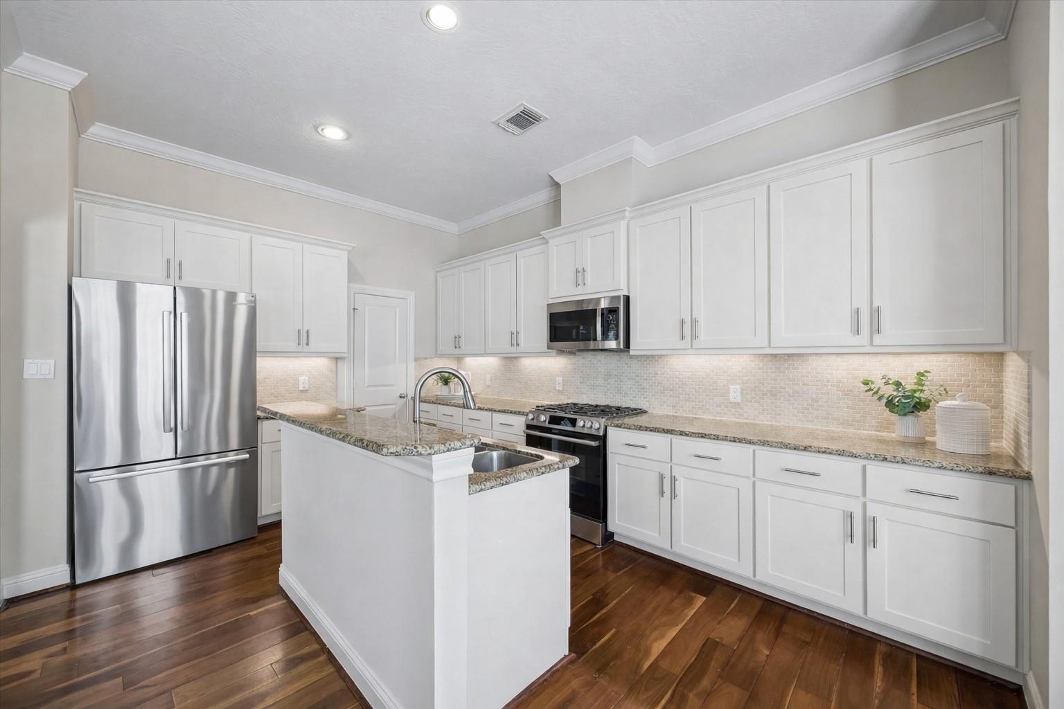 Located just a mile from Memorial Park, White Oak trails, and the MTK shopping/dining district, this updated townhome offers prime Houston living with a long list of high-quality upgrades. NO HOA! Freshly painted interior and exterior, whole-house generator, and new water heater. The eat-in kitchen features new Bosch appliances, granite countertops, and a convenient workstation with USB outlets. The open-concept second-floor living area is filled with natural light and showcases wood floors and a gas-log fireplace. Three ensuite bedrooms, including a first-floor suite ideal for an in-home office or gym. The third level includes a spacious primary retreat with two walk-in closets, new light fixtures, and mirrors. Additional upgrades include a fully automated steel garage door installed in 2025 with remote open/close functionality. Washer/dryer new in 2025. Outside, a small private turfed area offers a low-maintenance spot to grill, relax, and unwind!